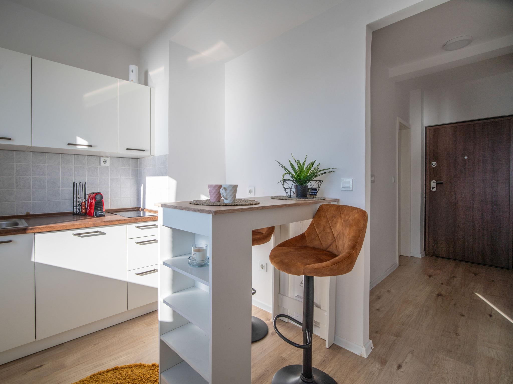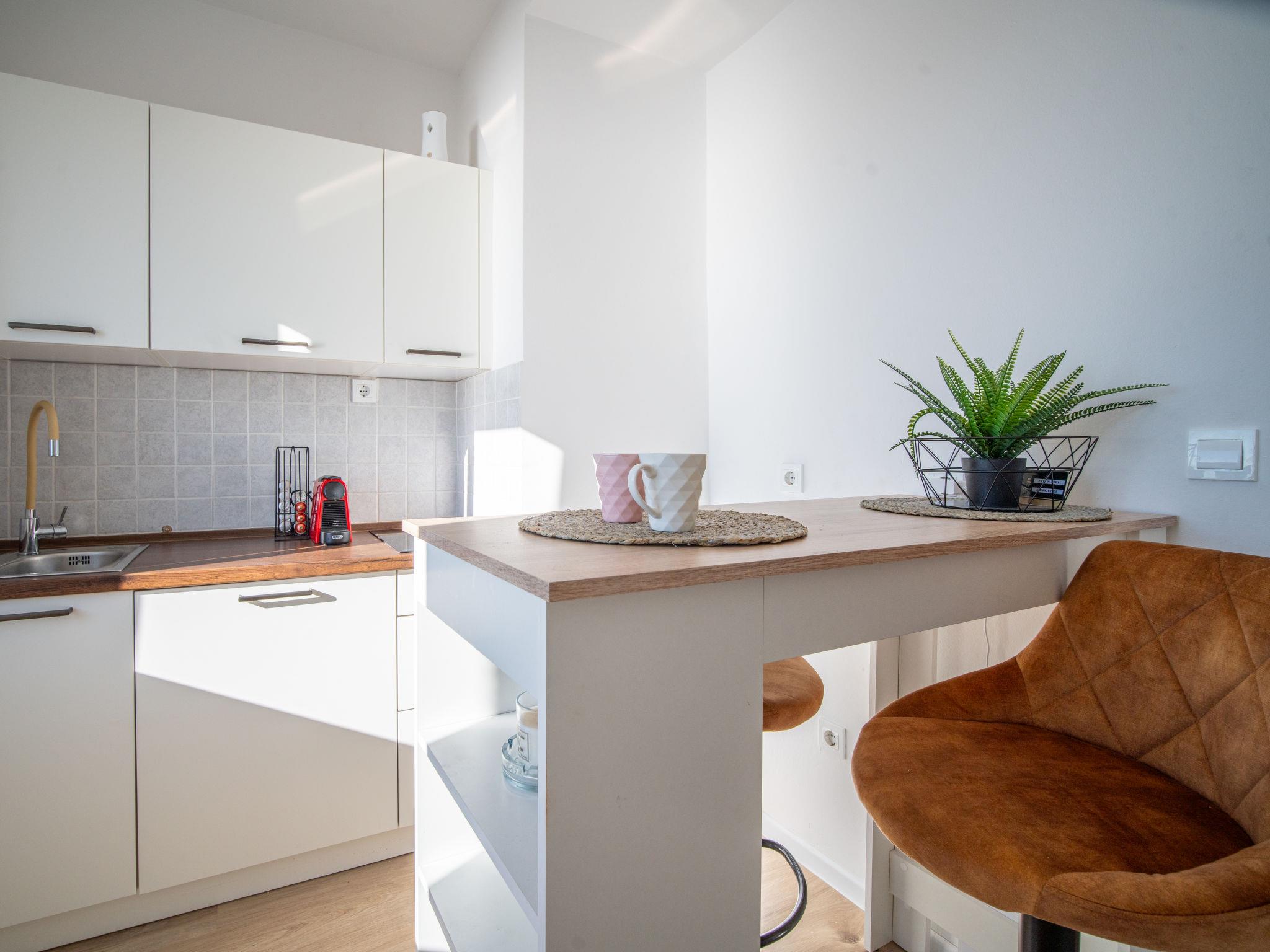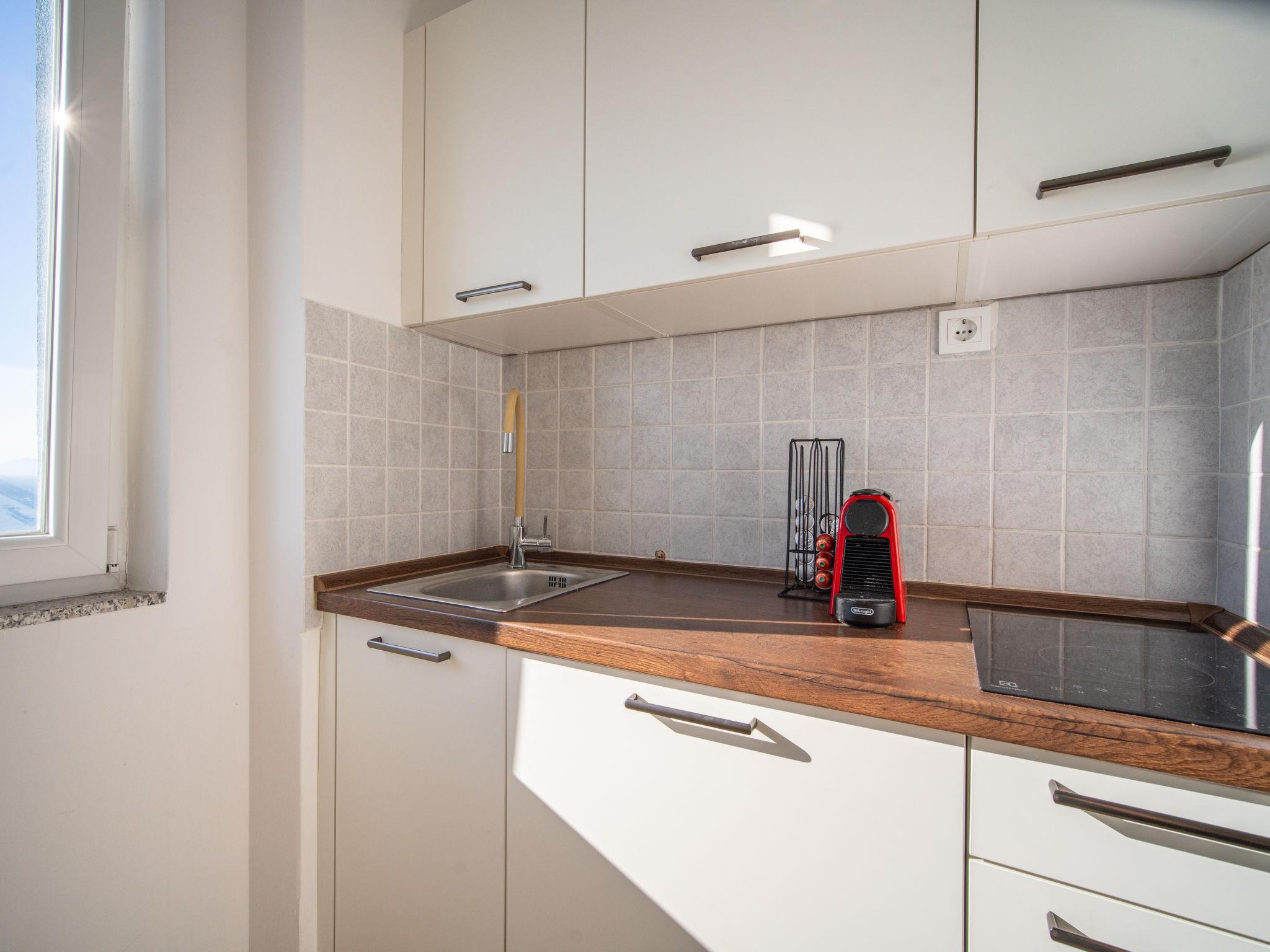 "Bella Vista", 1-room apartment 25 m2 on 9th floor. 1 room with 1 french bed (180 cm, length 200 cm), cable TV and air conditioning. Kitchen (2 ceramic glass hob hotplates, toaster, kettle, freezer, electric coffee machine) with small dining table. Shower/WC. Air-conditioning. Beautiful view of the sea. Facilities: washing machine. Internet (WiFi, free). 1 small pet/ dog allowed.