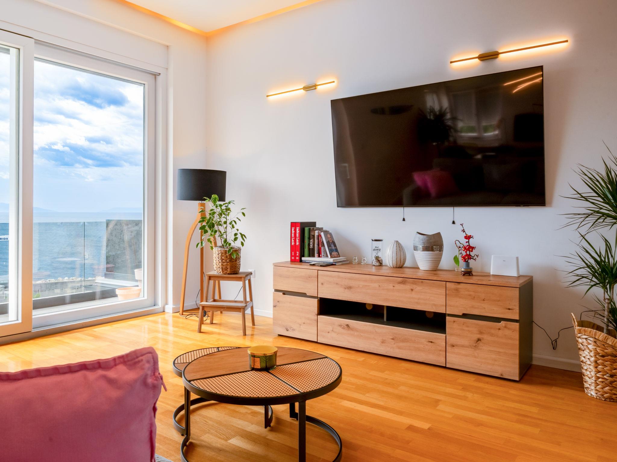 2-family house "Elisabeth Seaview". In the district of Kantrida 6 km from the centre of Rijeka, 7 km from the centre of Opatija, 150 m from the sea, 150 m from the beach. For shared use: barbecue. Private: property 180 m2. Terrace (40 m2), garden furniture. In the house: internet access. Parking at the house on the premises. Shop 450 m, supermarket 500 m, shopping centre 2.5 km, restaurant 150 m, bar 50 m, café 150 m, bus stop 100 m, pebble beach, rocky beach 150 m, outdoor swimming pool, indoor swimming pool 800 m. Tennis 2 km.
