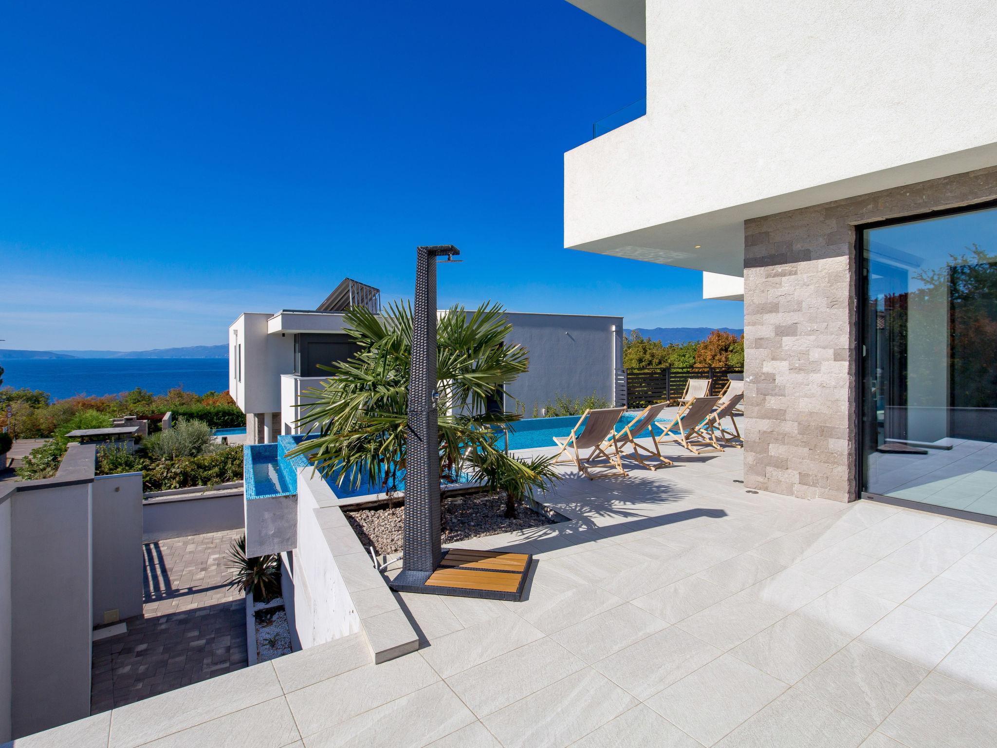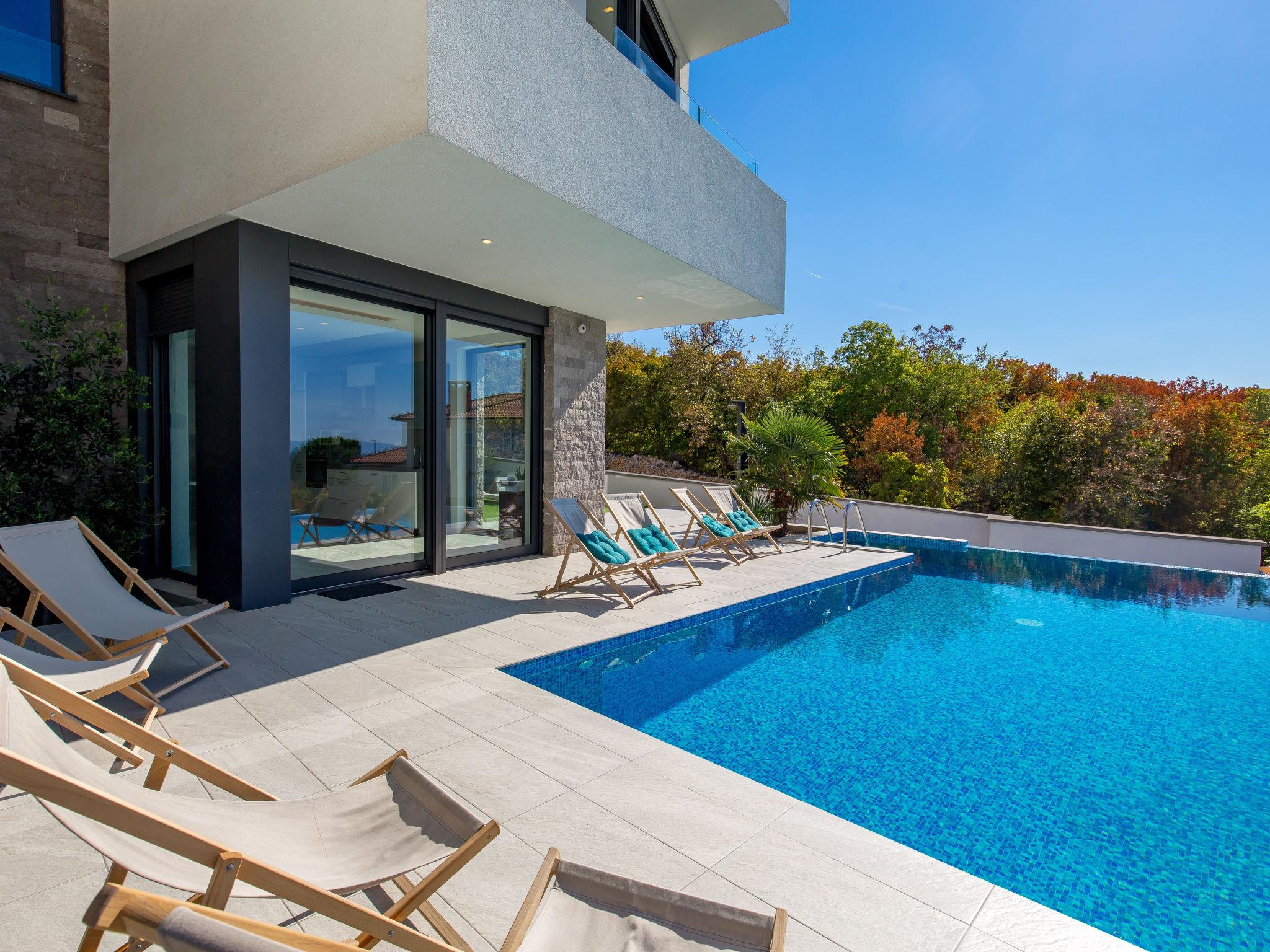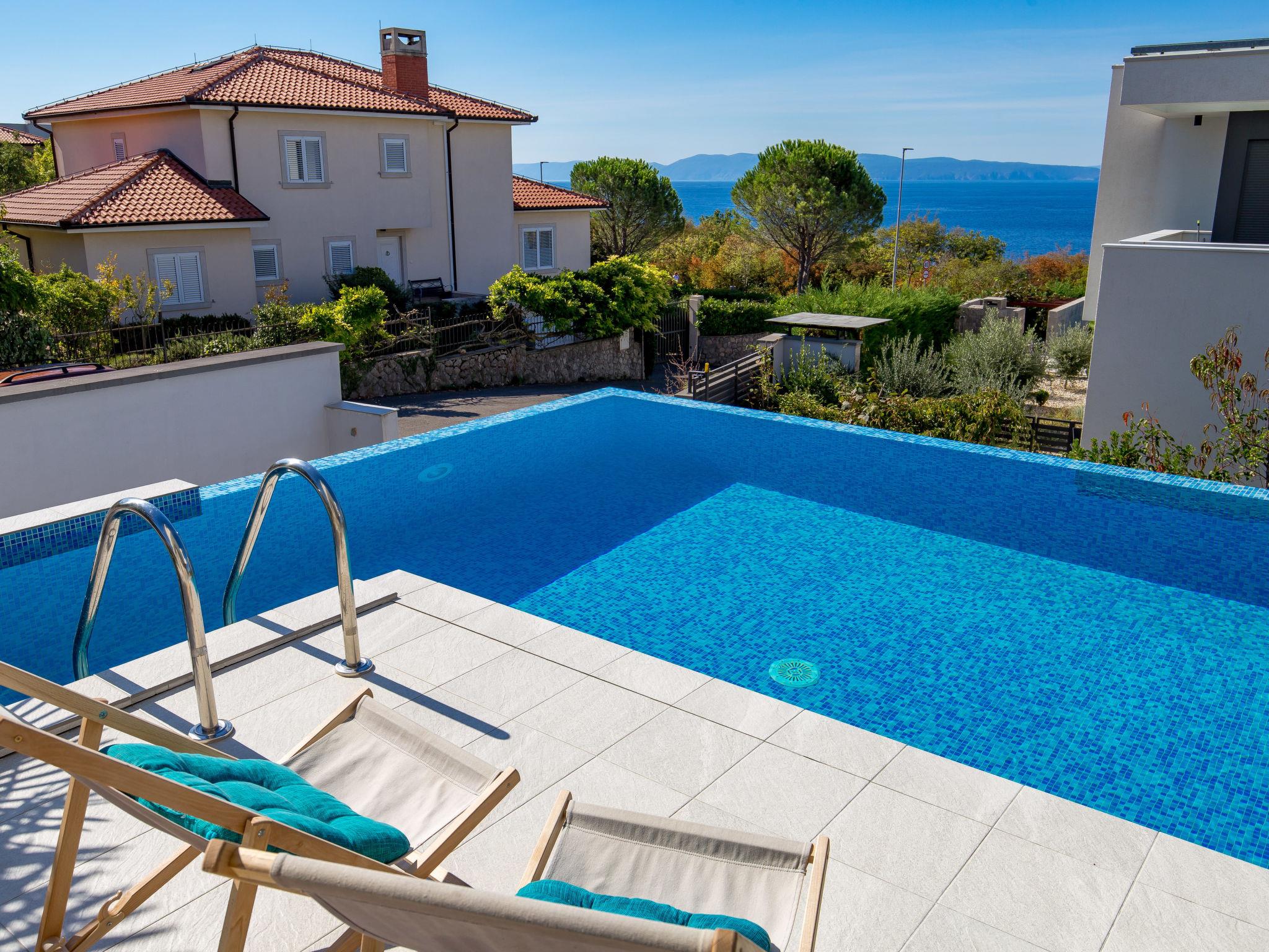 3-family house "Albi". In the district of Kostrena 5 km from the centre of Rijeka, in a quiet, sunny, elevated position, 250 m from the sea, 300 m from the beach, in the countryside. Private: swimming pool (25 m2, depth 150 cm, seasonal availability: 01.Jan. - 31.Dec.) with salt-electrolysis pool-cleaning system. Unconventional pool shape. Outdoor shower, barbecue. In the house: internet access, table tennis, table football. Parking at the house on the premises. Shop 1 km, supermarket 1.5 km, restaurant 250 m, bus stop 15 m, pebble beach, rocky beach 300 m. Groups of teenagers on request only. Please note: airfield 24 km from the property. By groups of young people double deposit is requested on arrival. Organizing a party is not allowed. Dog beach 800 m.