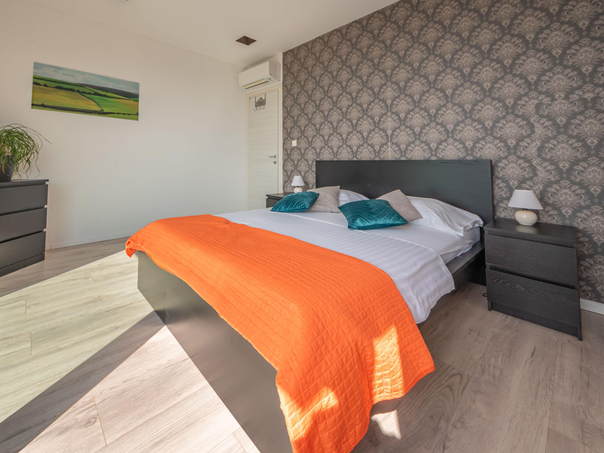 6-room apartment 230 m2 on 2 levels, on the ground floor. Living/dining room with international TV channels, flat screen and air conditioning. Exit to the terrace, to the swimming pool. Open kitchen (oven, dishwasher, 4 ceramic glass hob hotplates, microwave, freezer, electric coffee machine). Sep. WC. On the lower ground floor: playroom with shower/WC. Upper floor: 1 room with 1 french bed (160 cm, length 200 cm), air conditioning. 1 room with 1 french bed (160 cm, length 200 cm), air conditioning. Exit to the balcony. 1 room with 1 french bed (180 cm, length 200 cm), bath/bidet/WC and air conditioning. Exit to the balcony. 1 room with 1 bed (90 cm, length 200 cm), 1 pull-out bed (length 200 cm), air conditioning. Shower/bidet/WC, double hand-basin. Heating. Heating available only from 01.10. to 01.05. Barbecue (portable), deck chairs. View of the sea. Facilities: washing machine, dryer, sauna, baby cot, hair dryer. Internet (WiFi, free). Parking (3 cars), garage on the property (1 car). Please note: maximum 2 pets/ dogs allowed. Private entrance. Playstation available. Internet over fiber optic. Additional kitchen appliances: wine cooler, pressure cooker, bread maker, ice maker, air fryer.