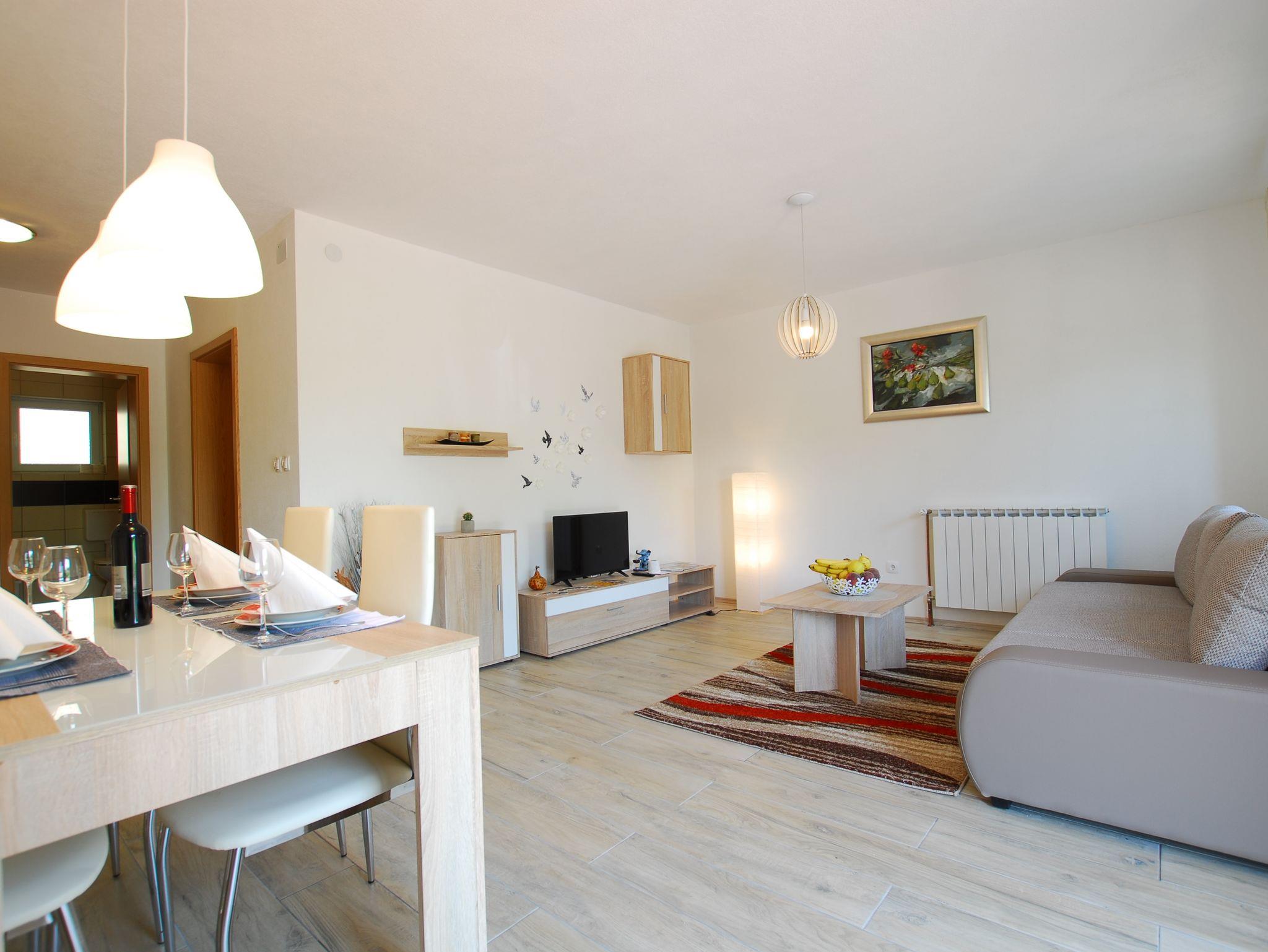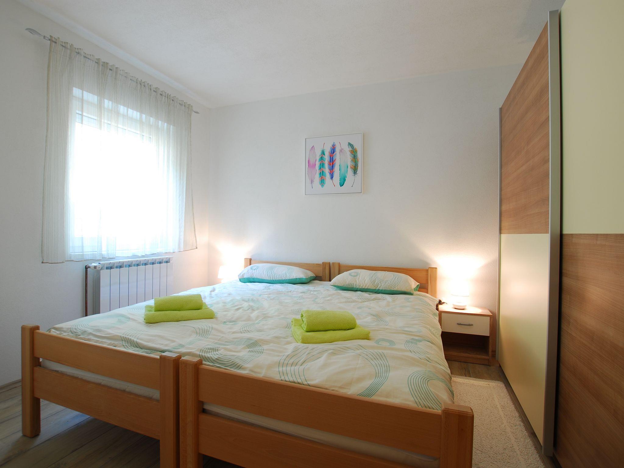 Ferienwohnung bietet Platz für 4 Gäste. Die Betten sind in Schlafzimmern, die es 1 gibt, und in Wohnzimmer, innerhalb einer Gesamtfläche von 46m2, angeordnet. Die Gäste haben eine eigene Terrasse zur Verfügung, auf der sie in warmen Sommernächten genießen können. Es ist erlaubt, Speisen auf dem Gemeinschafts-Grill vorzubereiten. IM PREIS INBEGRIFFEN: Kurtaxe, Endreinigung, Klimatisierung, Zentralheizung, Parkplatz, Internet, Föhn. Die Verfügbarkeit zusätzlicher Dienstleistungen in Ihrem reservierten Termin und die Preise derselben (falls nicht aufgeführt) müssen im Voraus überprüft werden. Zusätzliche Dienstleistungen die in der Zahlungsaufforderung nicht aufgeführt sind werden direkt beim Vermieter bezahlt, angenommen der Gast nutzt auch diese. Ermäßigung auf den Grundpreis: Gratistag 14=13 (bei einem Aufenthalt von 14 Tagen oder mehr erhalten Sie einen Gratistag für den Aufenthalt bis 31.12.26).