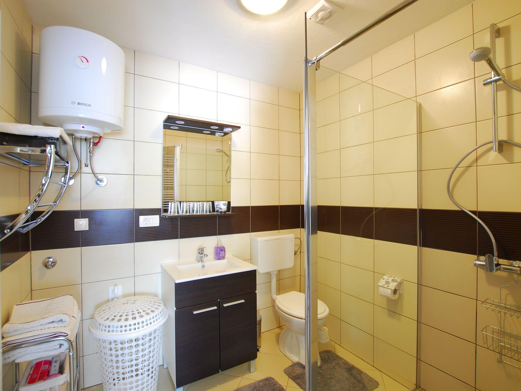 Studio bietet Platz für 4 Gäste. Die Betten sind in Schlafzimmern, die es 1 gibt, und in Wohnzimmer, innerhalb einer Gesamtfläche von 32m2, angeordnet. Die Gäste haben eine eigene Terrasse zur Verfügung, auf der sie in warmen Sommernächten genießen können. Es ist erlaubt, Speisen auf dem Gemeinschafts-Grill vorzubereiten. IM PREIS INBEGRIFFEN: Kurtaxe, Endreinigung, Klimatisierung, Zentralheizung, Parkplatz, Internet, Föhn. Die Verfügbarkeit zusätzlicher Dienstleistungen in Ihrem reservierten Termin und die Preise derselben (falls nicht aufgeführt) müssen im Voraus überprüft werden. Zusätzliche Dienstleistungen die in der Zahlungsaufforderung nicht aufgeführt sind werden direkt beim Vermieter bezahlt, angenommen der Gast nutzt auch diese. Ermäßigung auf den Grundpreis: Gratistag 14=13 (bei einem Aufenthalt von 14 Tagen oder mehr erhalten Sie einen Gratistag für den Aufenthalt bis 31.12.26).