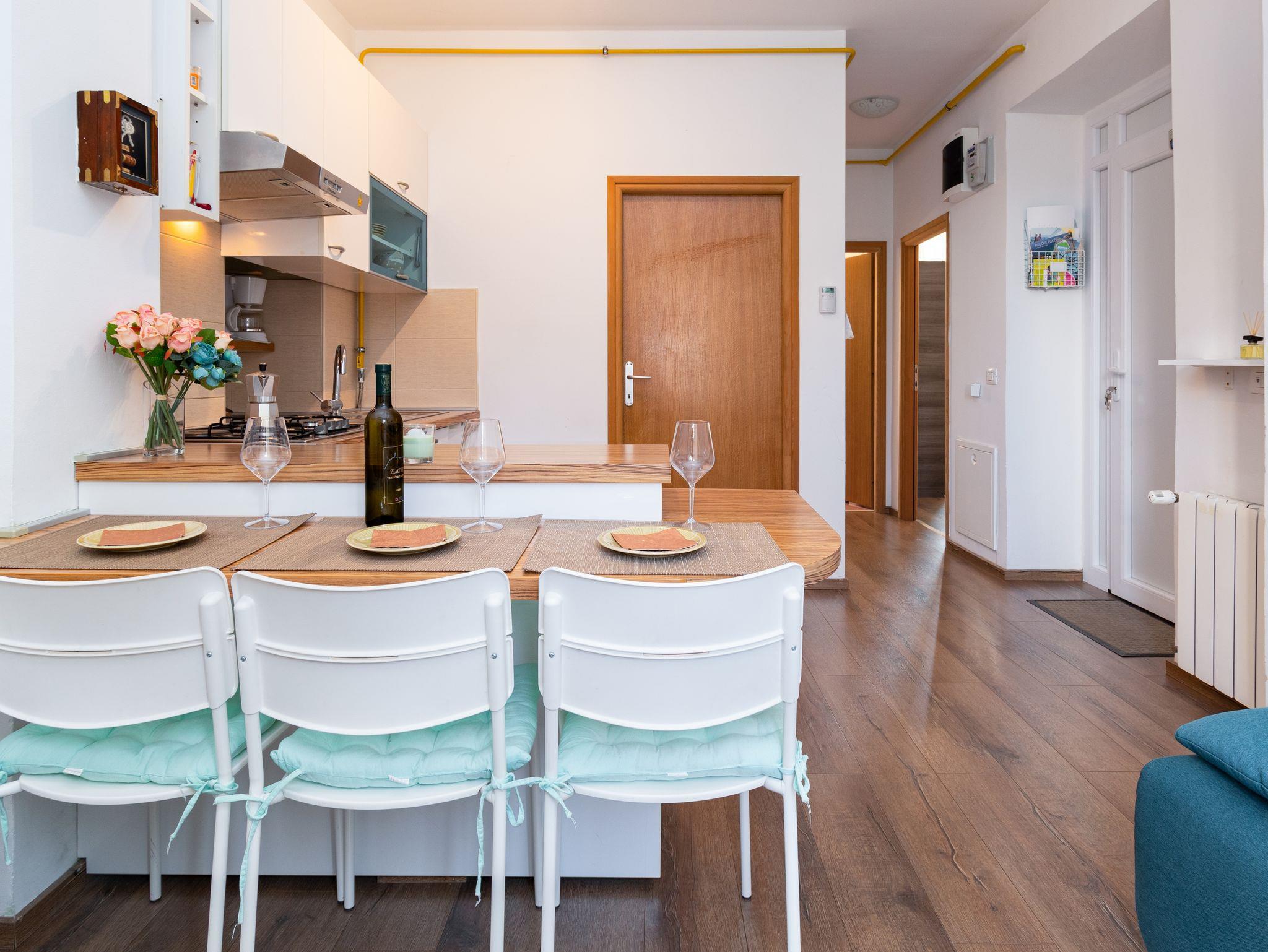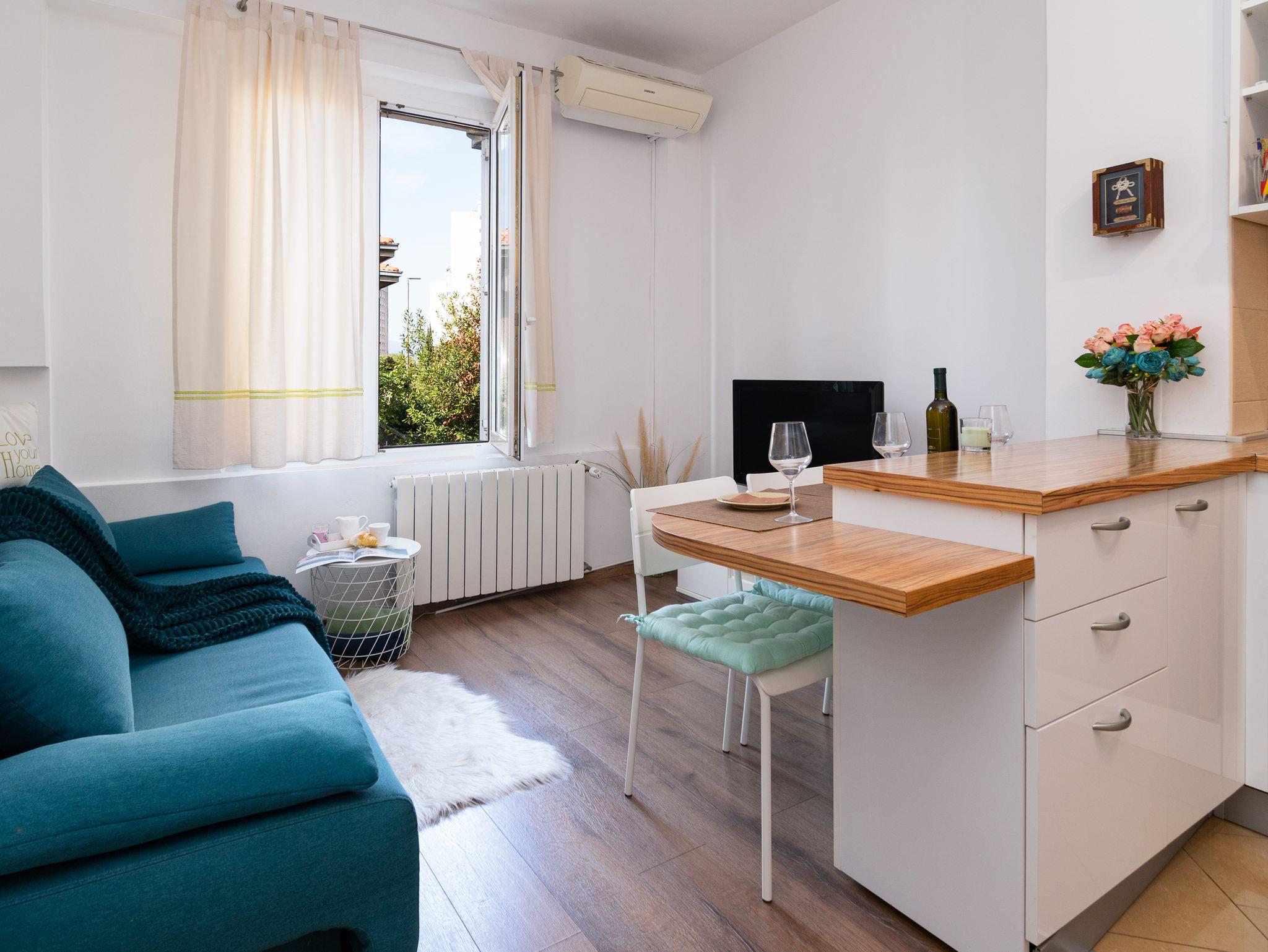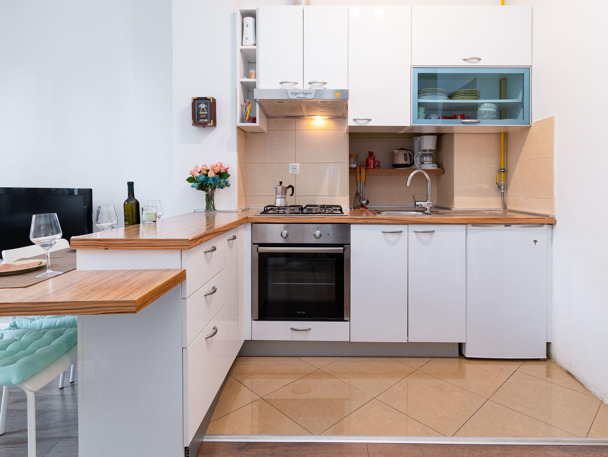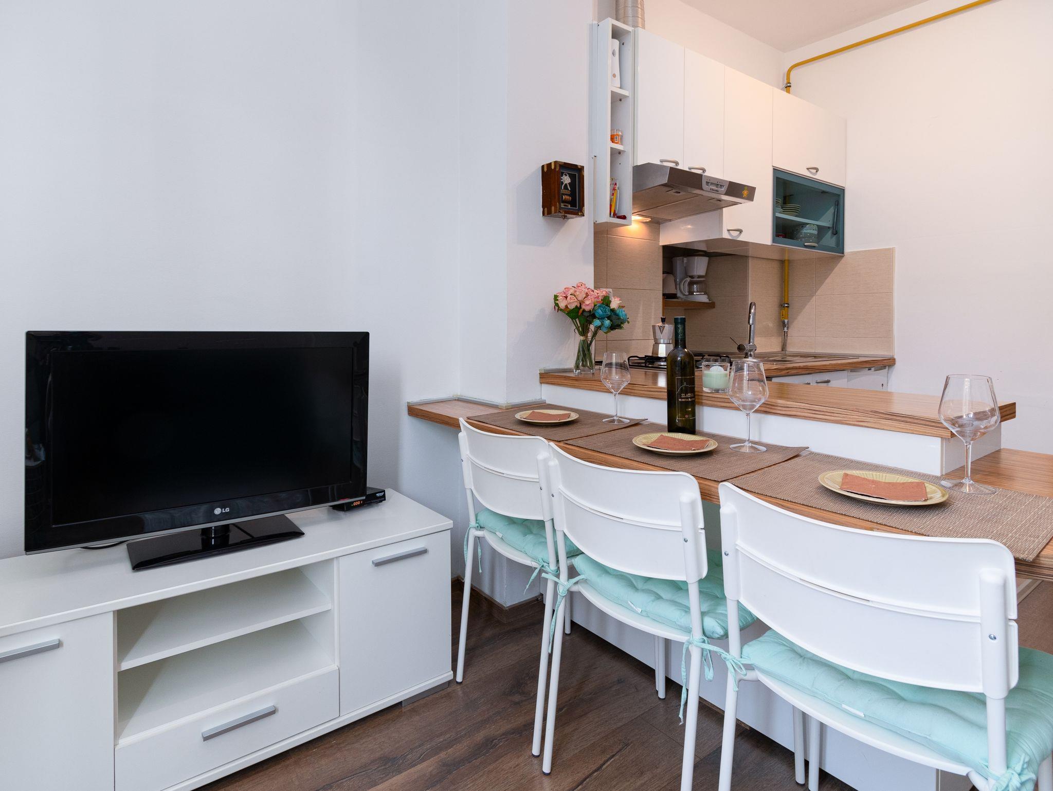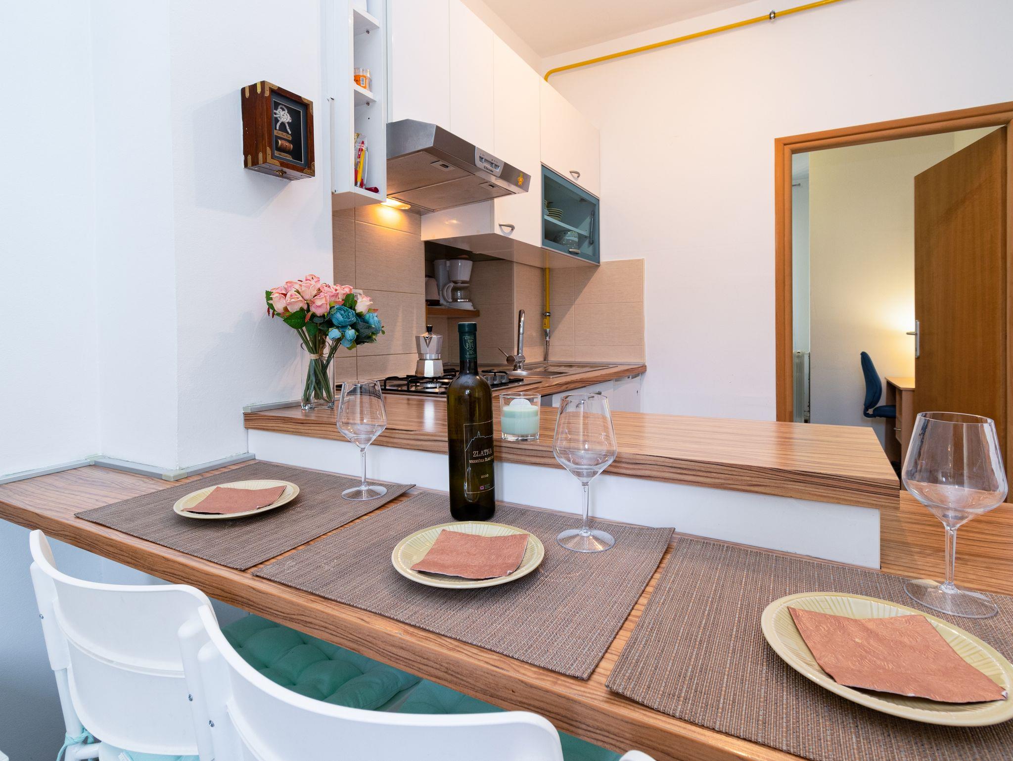 Ferienwohnung bietet Platz für 3 Gäste. Die Betten sind in Schlafzimmern, die es 2 gibt, innerhalb einer Gesamtfläche von 42m2, angeordnet. In der Unterkunftseinheit besteht die Möglichkeit des Mitbringens von Haustieren gegen Aufpreis. Die reservierte Unterkunftseinheit hat keinen Balkon und keine Terrasse. IM PREIS INBEGRIFFEN: Kurtaxe, Endreinigung, Klimatisierung, Zentralheizung, Internet, Bügeleisen, Föhn. VERBINDLICHE ZUSÄTZLICHE KOSTEN: Aufzahlung für Kurzaufenthalte (prozentualer Zuschlag pro Nächtigungsanzahl: 30% - 1, 20% - 2, 10% - 3). UNVERBINDLICHE ZUSÄTZLICHE KOSTEN: Haustiere (7,00 € pro Nacht). Die Verfügbarkeit zusätzlicher Dienstleistungen in Ihrem reservierten Termin und die Preise derselben (falls nicht aufgeführt) müssen im Voraus überprüft werden. Zusätzliche Dienstleistungen die in der Zahlungsaufforderung nicht aufgeführt sind werden direkt beim Vermieter bezahlt, angenommen der Gast nutzt auch diese. Ermäßigung auf den Grundpreis: Gratistag 14=13 (bei einem Aufenthalt von 14 Tagen oder mehr erhalten Sie einen Gratistag für den Aufenthalt bis 31.12.26).
