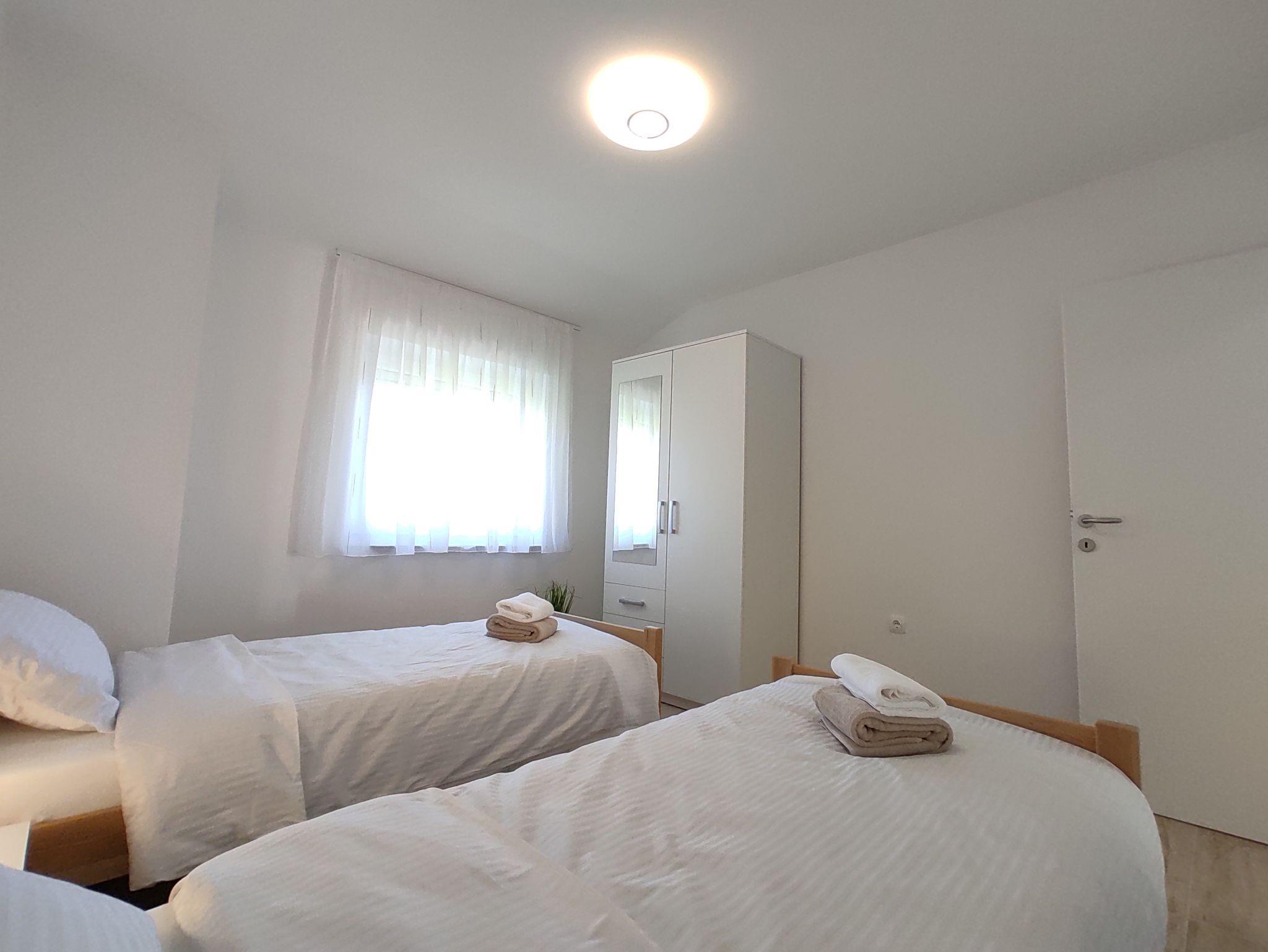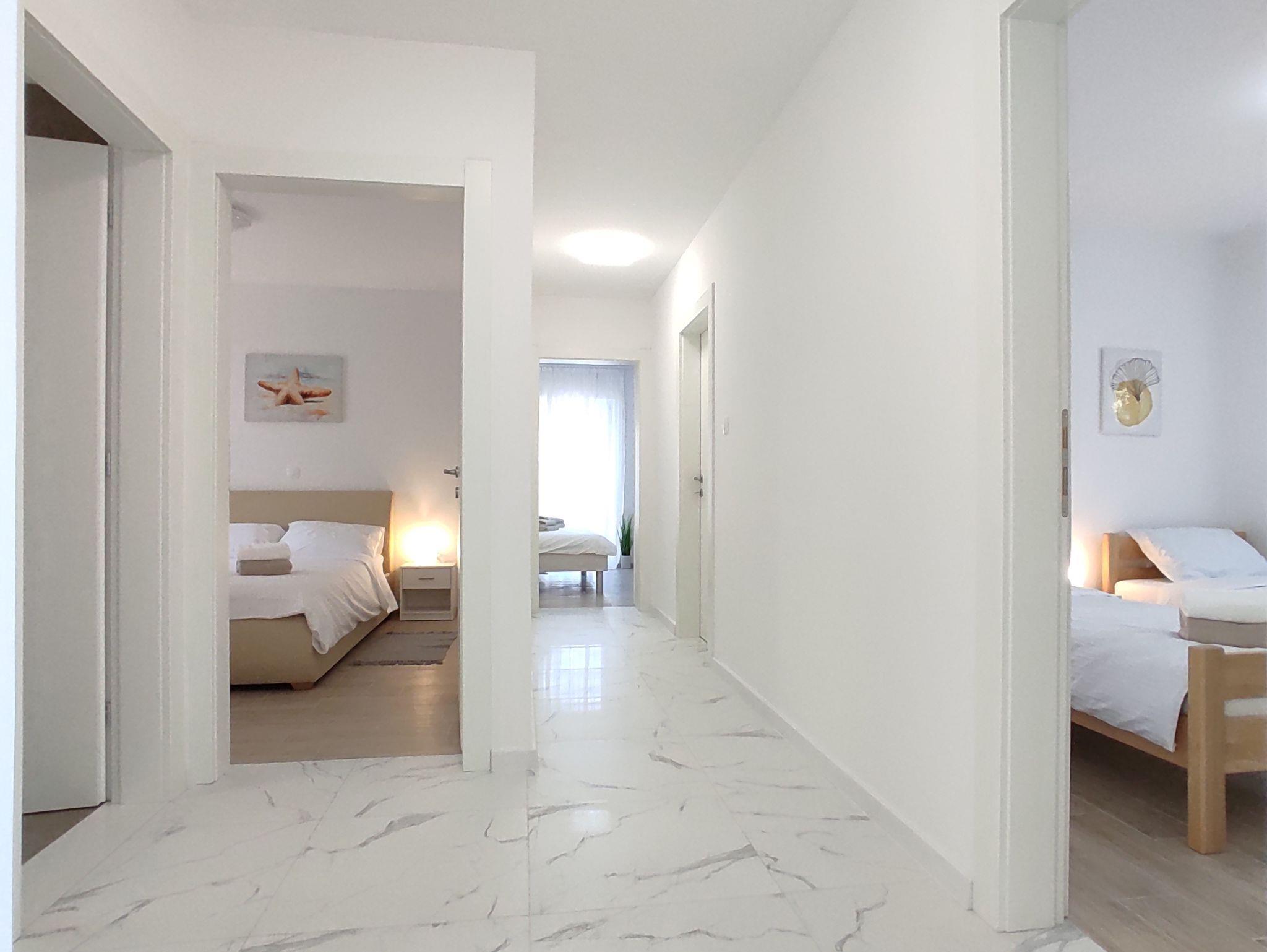 Ferienwohnung bietet Platz für 8 Gäste. Die Betten sind in Schlafzimmern, die es 3 gibt, und in Wohnzimmer, innerhalb einer Gesamtfläche von 99m2, angeordnet. Die Gäste haben eine eigene Terrasse zur Verfügung, auf der sie in warmen Sommernächten genießen können. Es ist erlaubt, Speisen auf dem Gemeinschafts-Grill vorzubereiten. IM PREIS INBEGRIFFEN: Kurtaxe, Endreinigung, Klimatisierung, Parkplatz, Internet, Föhn. Die Verfügbarkeit zusätzlicher Dienstleistungen in Ihrem reservierten Termin und die Preise derselben (falls nicht aufgeführt) müssen im Voraus überprüft werden. Zusätzliche Dienstleistungen die in der Zahlungsaufforderung nicht aufgeführt sind werden direkt beim Vermieter bezahlt, angenommen der Gast nutzt auch diese. Ermäßigung auf den Grundpreis: Gratistag 14=13 (bei einem Aufenthalt von 14 Tagen oder mehr erhalten Sie einen Gratistag für den Aufenthalt bis 31.12.26).