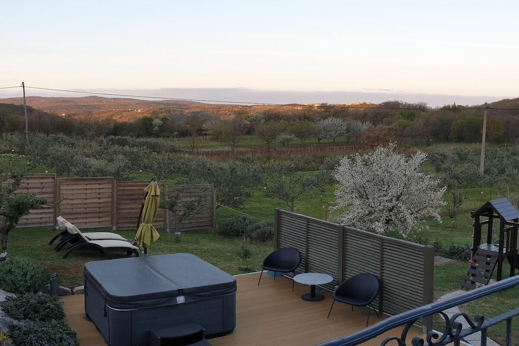 Forestil dig: Et smukt feriehus med 3 soveværelser til op til 6 personer, beliggende midt i naturen, omgivet af oliven- og frugttræer på en vidtstrakt, børnevenlig grund på 2.500 kvm. En drøm for familier! Højdepunktet? En rummelig pool på 24 kvm, der bare venter på, at du hopper i! Og hvis du leder efter endnu mere afslapning, så forkæl dig selv med et bad i jacuzzi'en – perfekt til at slappe af i slutningen af dagen. På de tre store terrasser og ved poolen med udendørs bruser kan du nyde solen hele dagen – uanset om du nyder morgenmad med udsigt over det grønne eller en solnedgang med en øl eller cocktail. Huset tilbyder masser af plads og privatliv til alle. Lyder det ikke som dit næste yndlingssted?