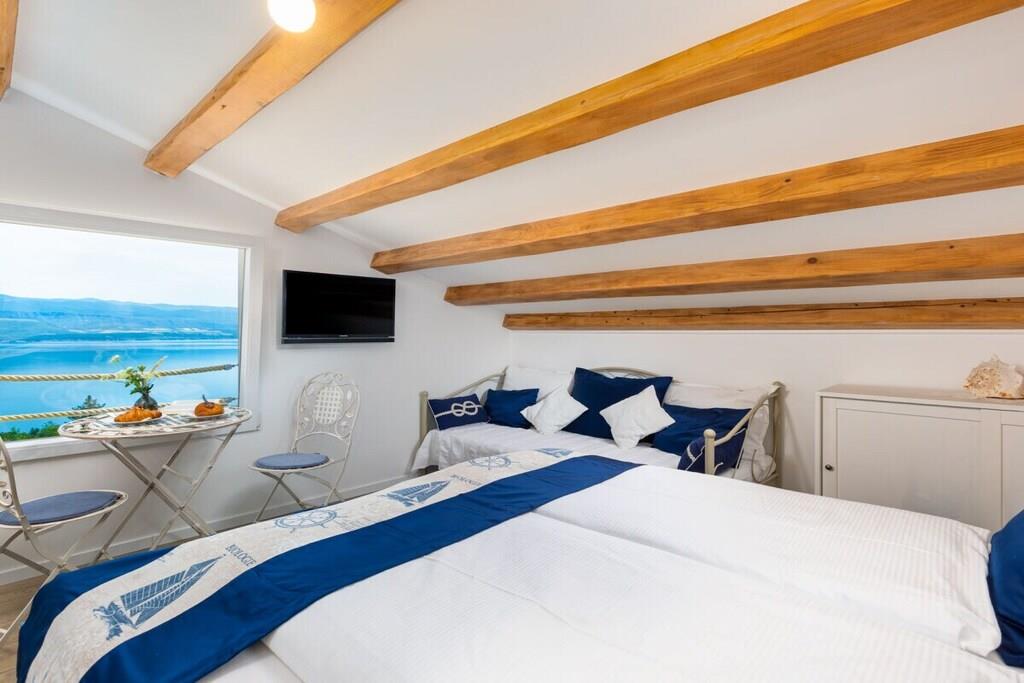 Villa Mare strækker sig over to etager og kombinerer funktionalitet med komfort. Stueetagen har en stue med køkken og spiseplads. Ovenpå er der et soveværelse til tre personer med en dobbeltseng og en enkeltseng. Soveværelset har eget badeværelse med bruser. Gæsterne har også adgang til et separat toilet i haven. Det rummelige udendørsområde på 5.000 m² tilbyder en betagende havudsigt. Gæsterne har adgang til en swimmingpool, bordtennis, fodboldmål og en volleyballbane.