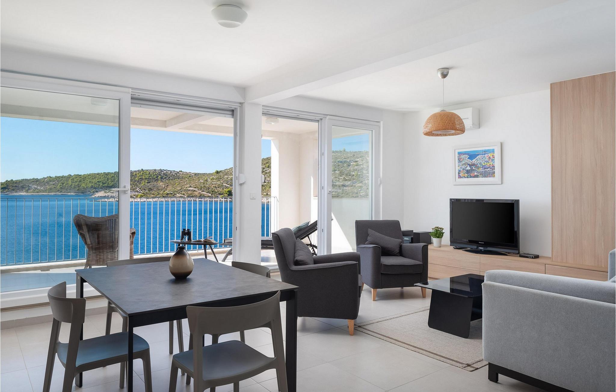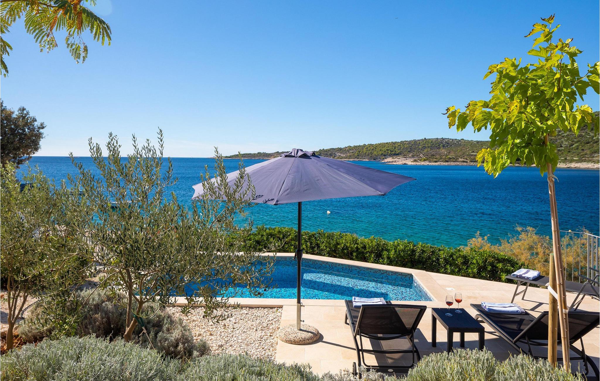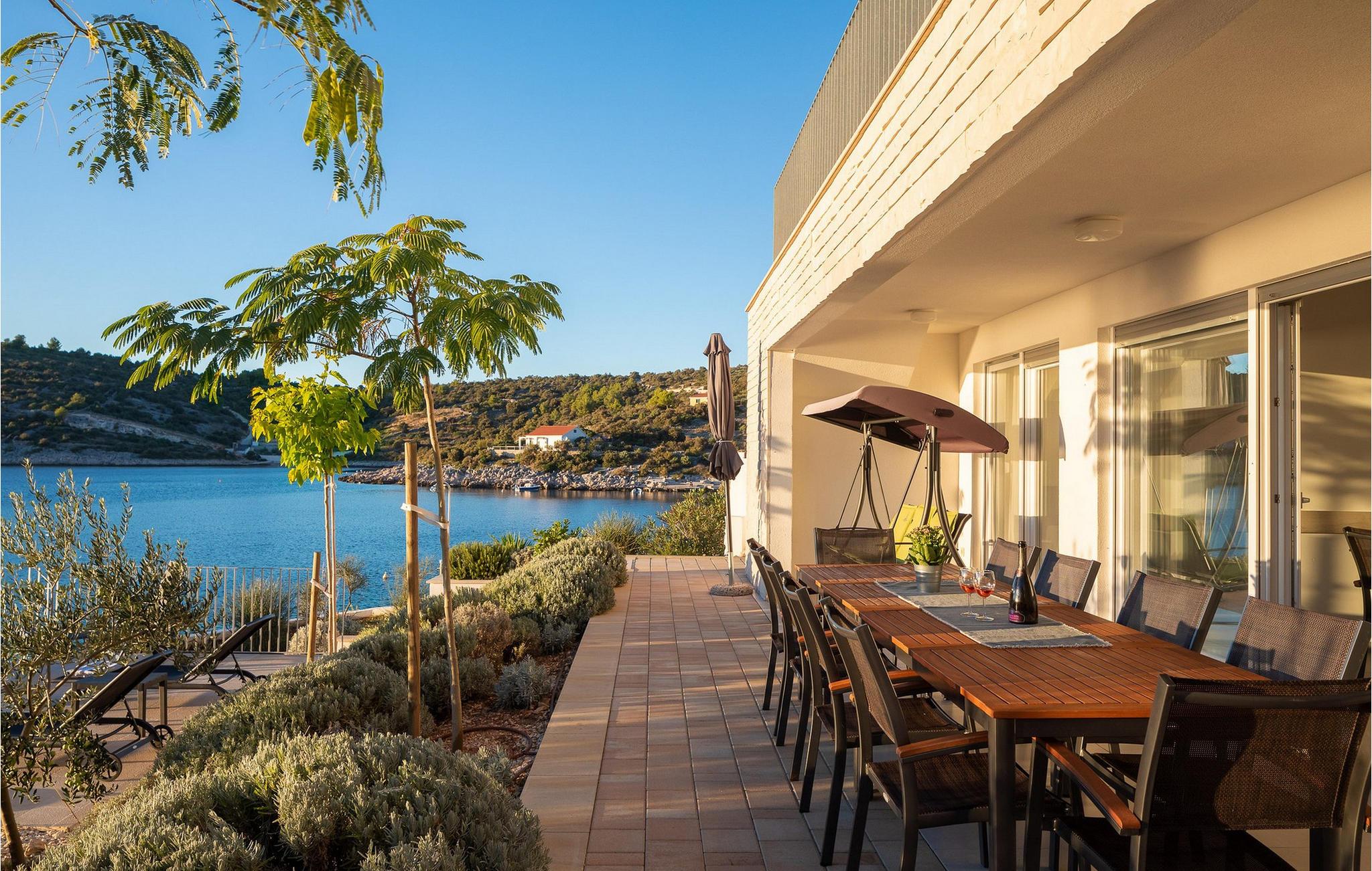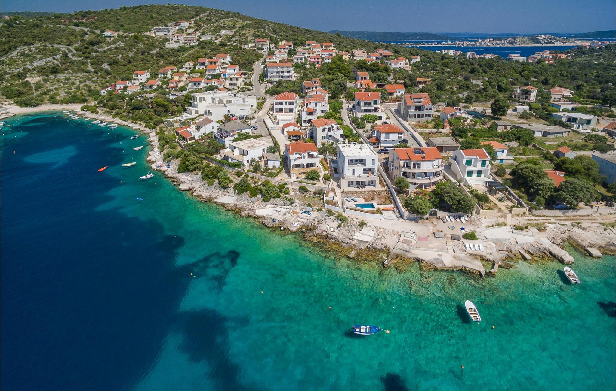 Nyd afslapning i denne storslåede og moderne villa direkte ved havet. Den moderne Villa Karolina i Kanica, en idyllisk fisker- og turistlandsby, lægger op til et uforglemmeligt ophold med stilfuld elegance og rent design. Lyse værelser, møblerede opholdsområder af høj kvalitet og flere terrasser tilbyder en behagelig og afslappende atmosfære. Uanset om I deler måltider i det fuldt udstyrede køkken eller slapper af på liggestolene ved poolen - her vil I opleve ren afslapning. Oplev den fantastiske panoramaudsigt over det glitrende hav direkte fra jeres rummelige terrasse eller gå ned ad trappen til badeplatformen, hvor I også kan fortøje en lille båd. Området omkring Kanica byder på mange muligheder for udforskning og aktiviteter. Nyd det krystalklare vand på kyststrandene eller tag en dagstur til den nærliggende Rogoznica med dens charmerende gamle bydel og imponerende lystbådehavn. Eventyrere kan nyde rafting på Cetina-floden, mens kulturelskere kan udforske de UNESCO-beskyttede byer Trogir og Split. Naturelskere bør ikke gå glip af en tur til Krka Nationalpark med dens berømte vandfald.