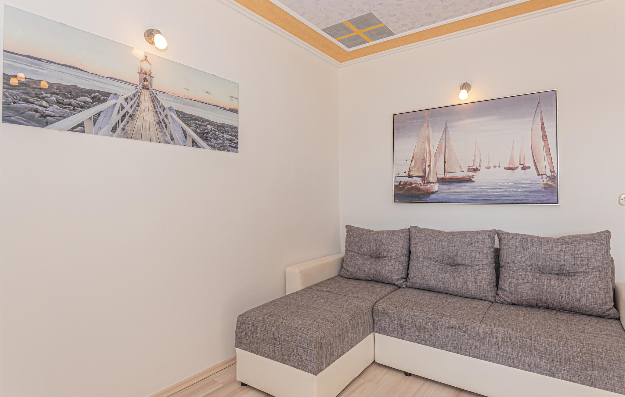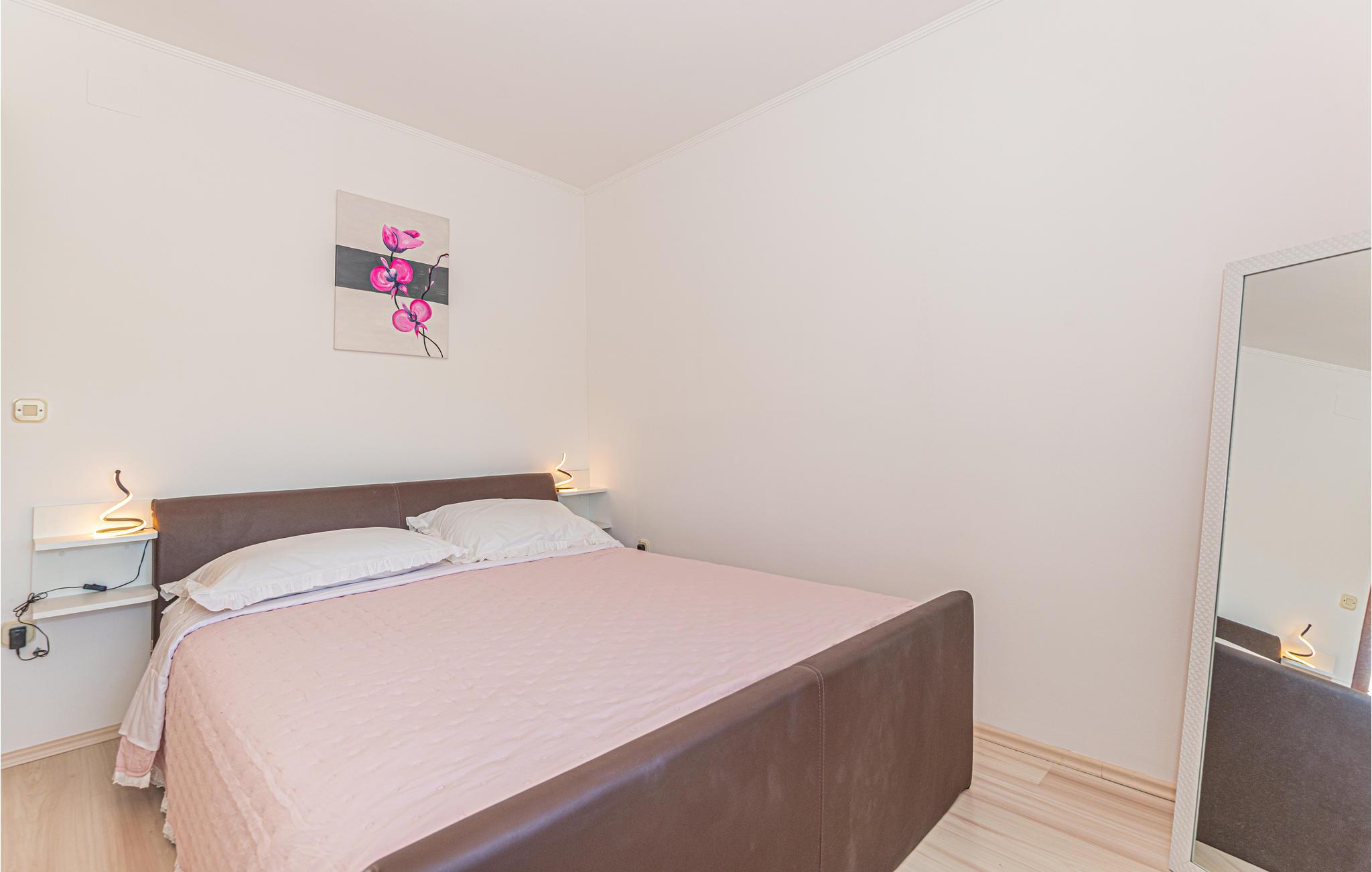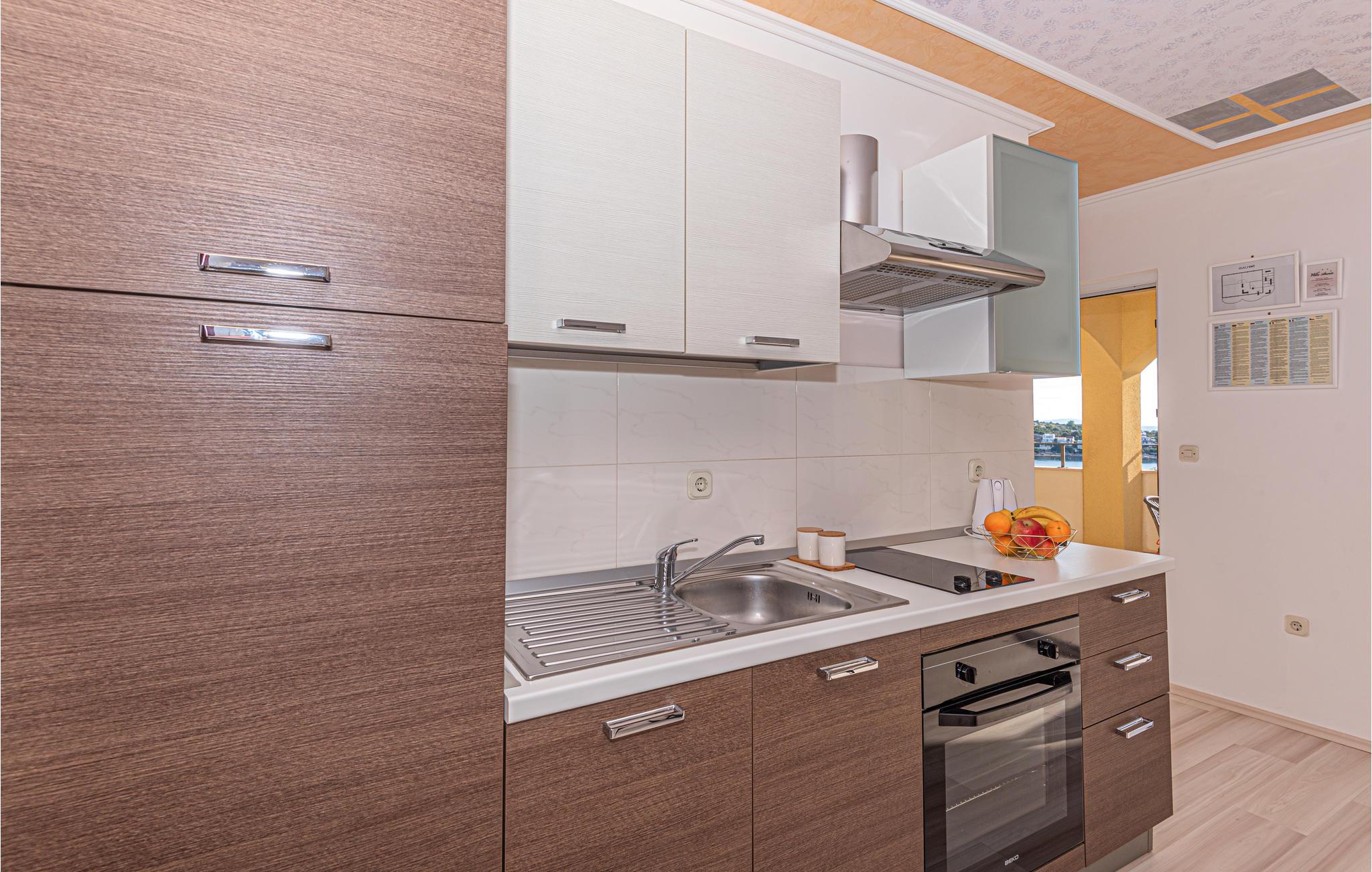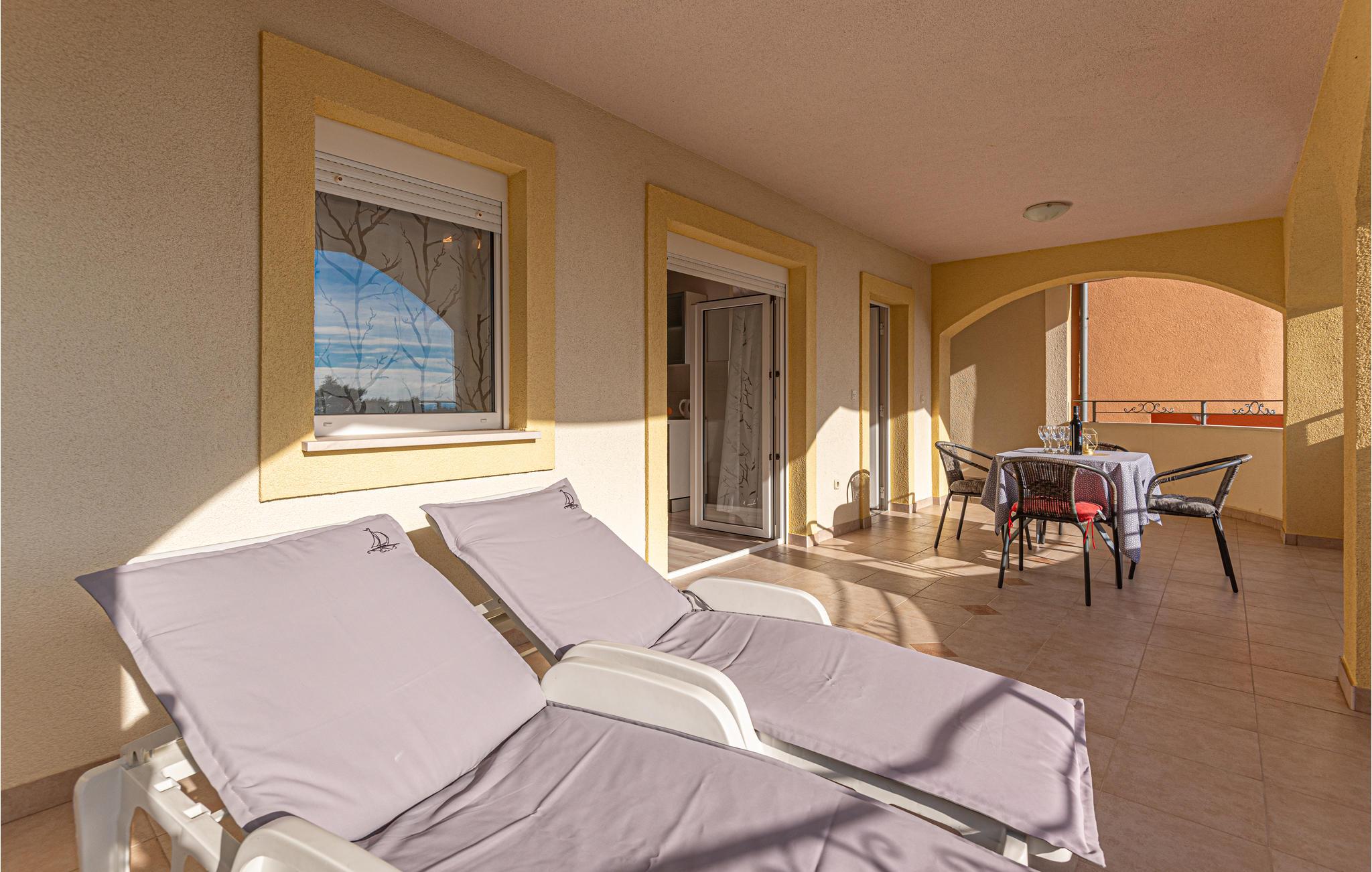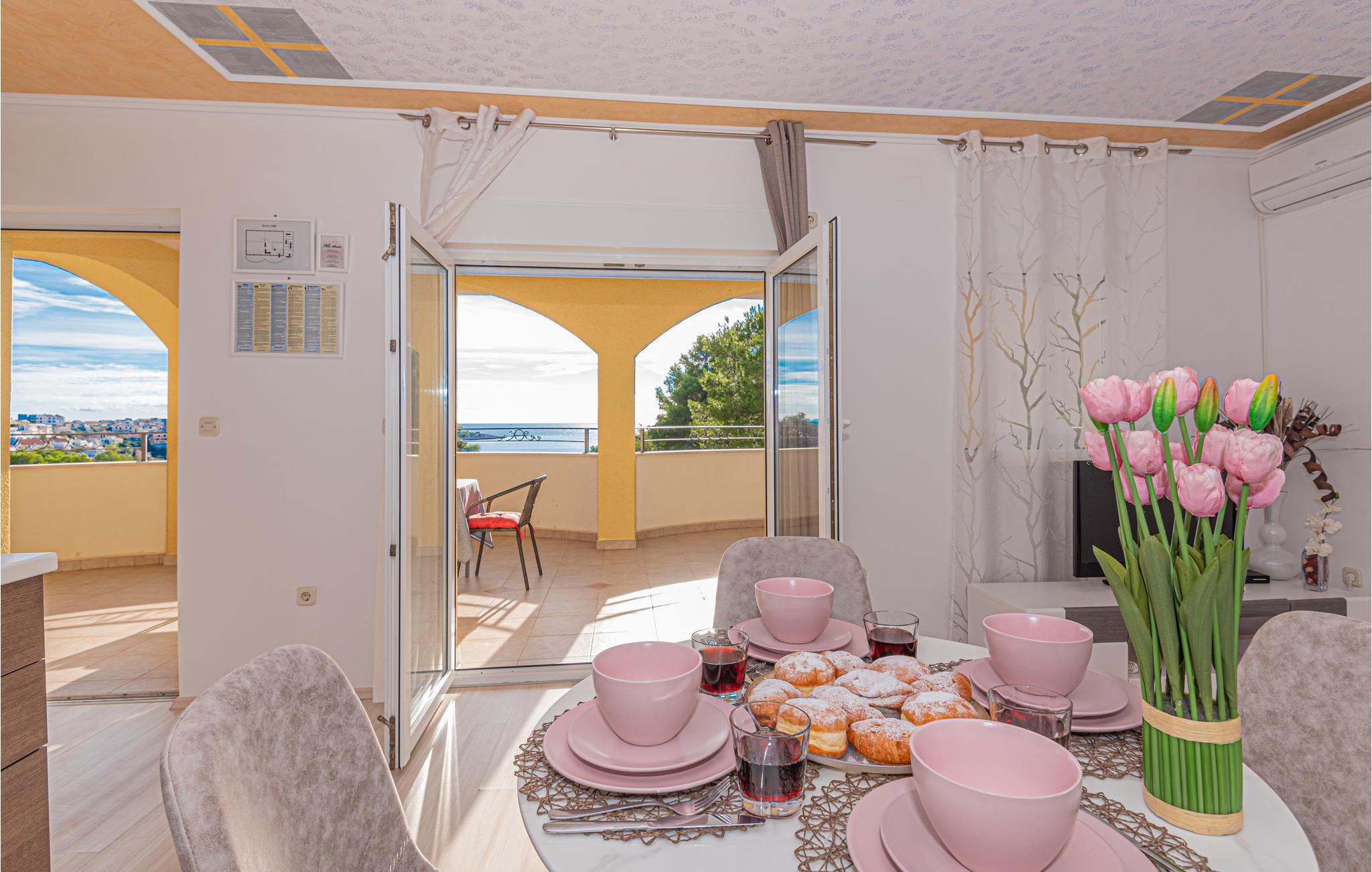 Lejligheden er lys og moderne, så her får I en rar base til jeres solferie i Kroatien. Tilbered en lækker morgenmad i det lille køkken og træd ud på balkonen, hvor I kan nyde dagens første solstråler foran en vidunderlig udsigt, som sikkert giver jer masser af energi til en dag fyldt med oplevelser. Når I kommer tilbage fra stranden eller en spændende udflugt, kan I læne jer tilbage på den lækre terrasse og nyde det fantastiske blik ud på omgivelserne, mens I nyder noget koldt i glassene.