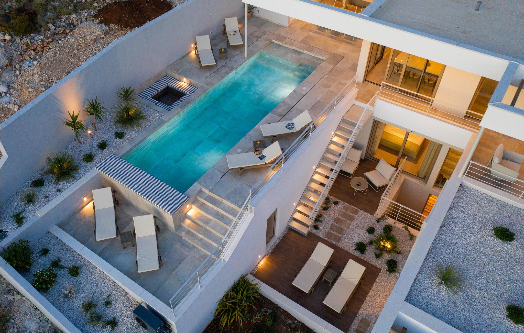 Du vil blive fortryllet af den forfriskende swimmingpool og rummelige terrasser med udsigt over havet. Uanset om du forkæler dig selv i saunaen eller slapper af i boblebadet, er restitution et nøgleord.