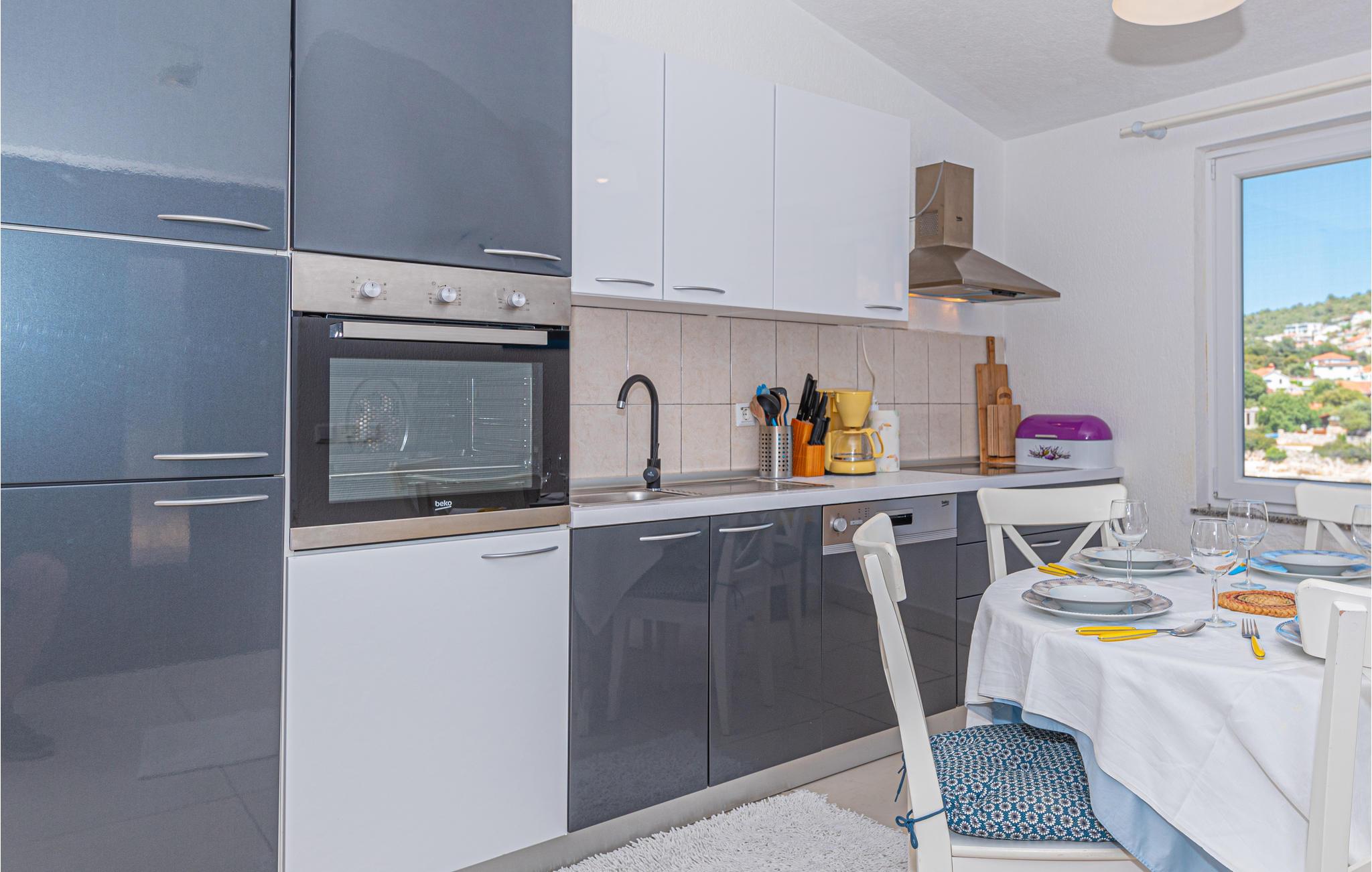 Der er ikke langt til havet når I bor i en af disse to dejlige ferielejligheder på første etage i en velplejet ejendom. Til hver lejlighed hører tre parkeringspladser samt en terrasse med underskøn udsigt over havet og omgivelserne. Der er god plads på Kanicas strande, med hvide kiesstrande der ligger ud til det flade turkisblå hav. Ideelt især til børnefamilier. Der er også en plateaustrand – betonplader – der er fin til solbad og klippestrande der er elsket af de der vil snorkle og dykke.