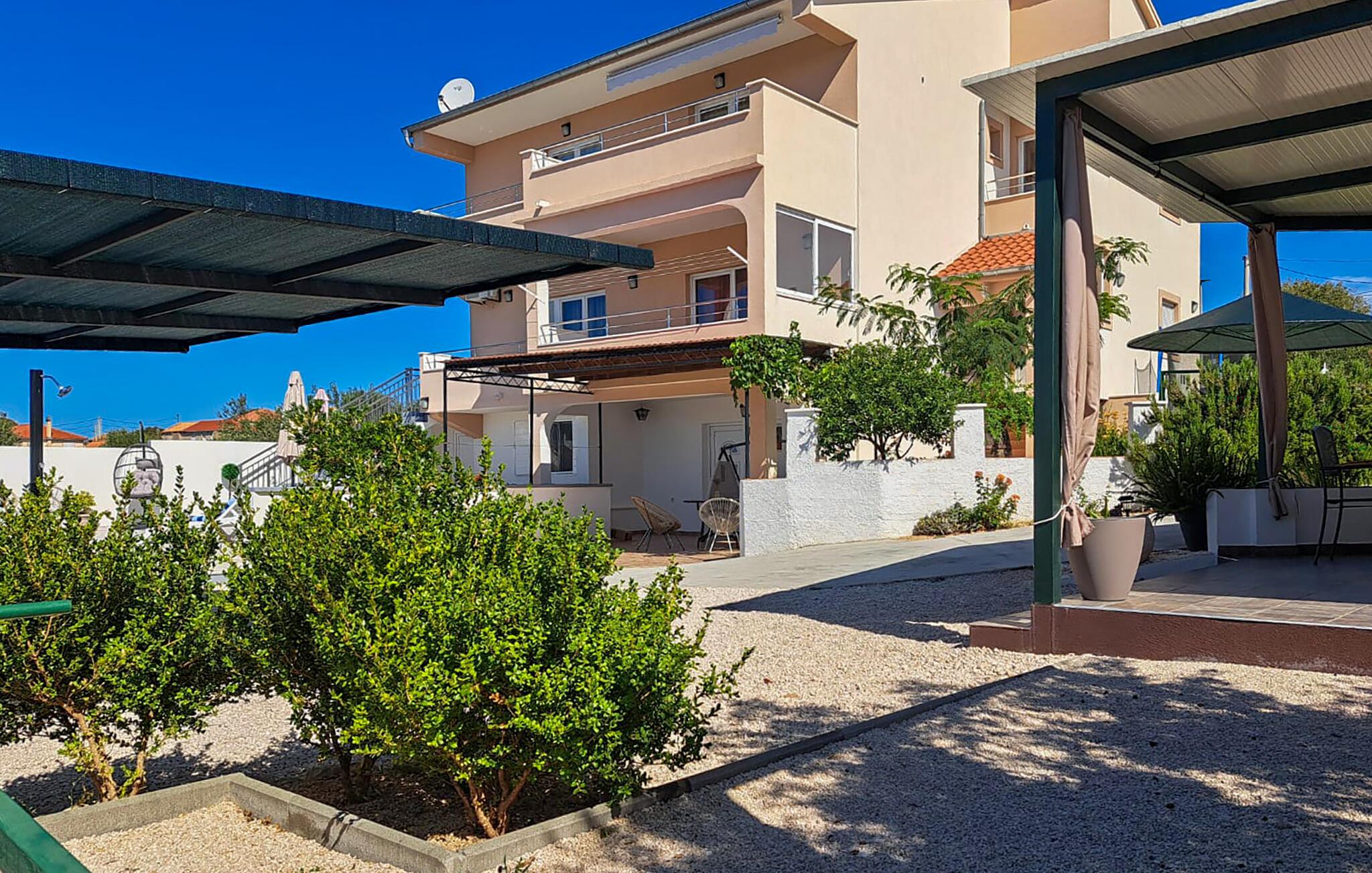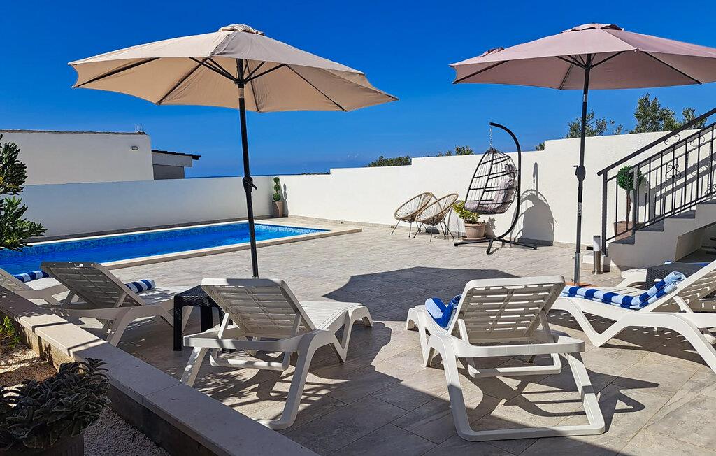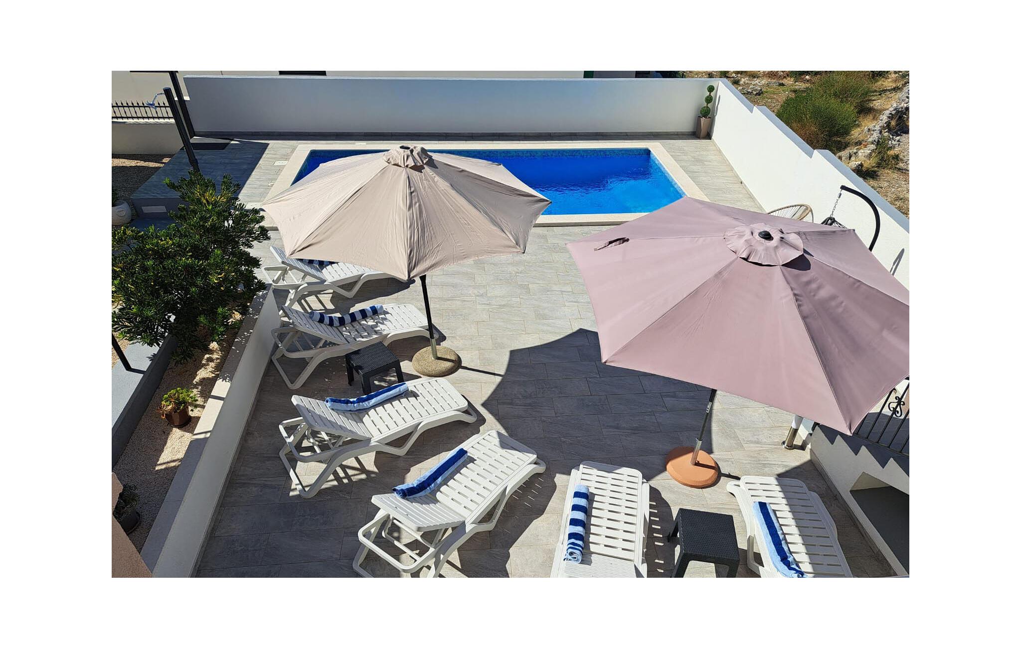 I haven kan I nyde det skønne klima ved den forfriskende pool og tilberede jeres måltider ved grillen. På terrassen kan I drikke morgenkaffe og nyde udsigten over havet, øerne og oliventræerne.
