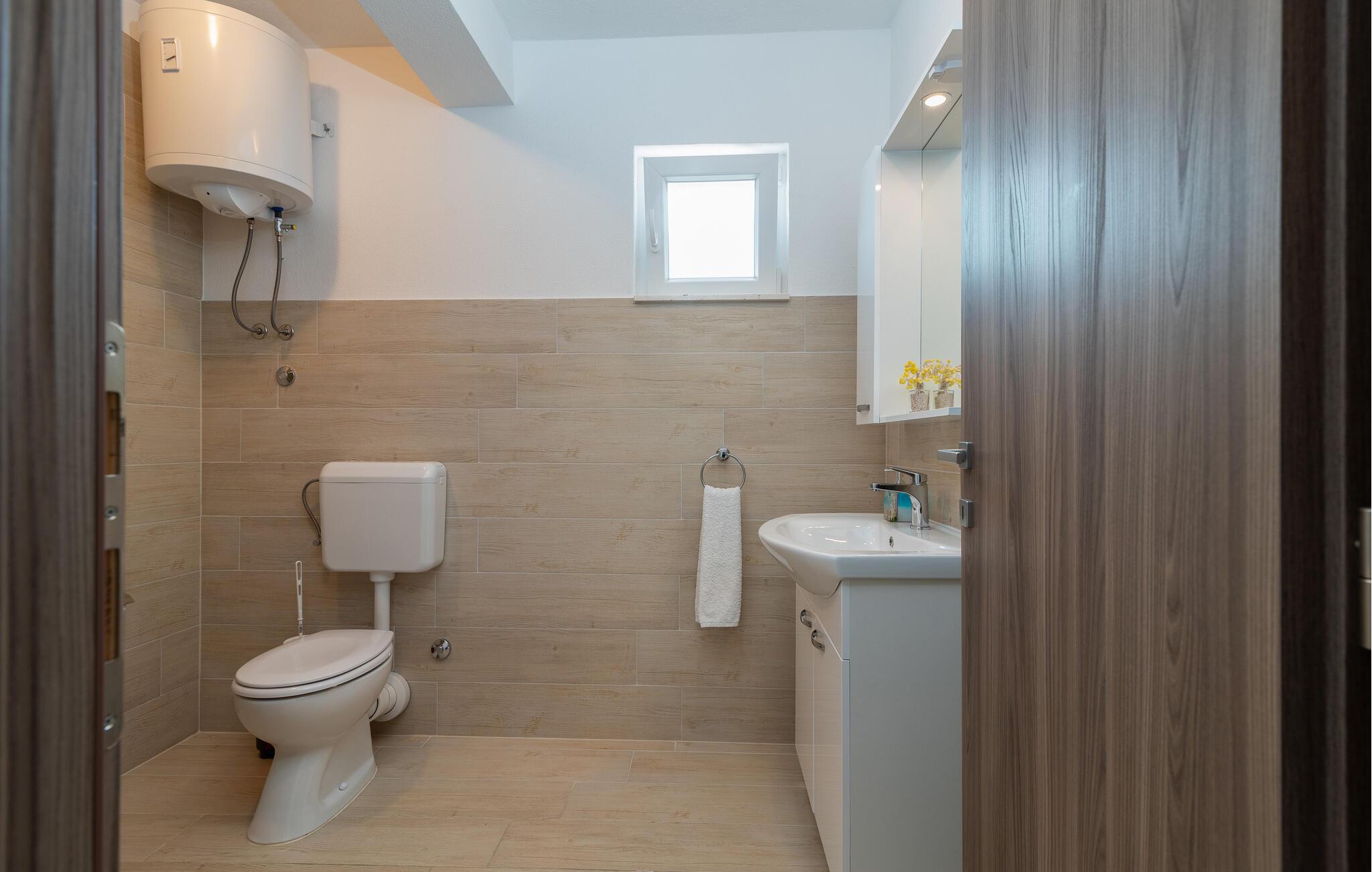 Badeværelse (nr. 1) - WC. Varmt og koldt vand. Bruser