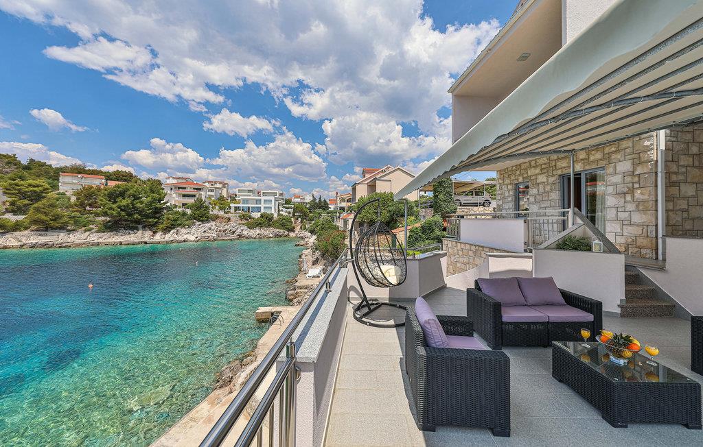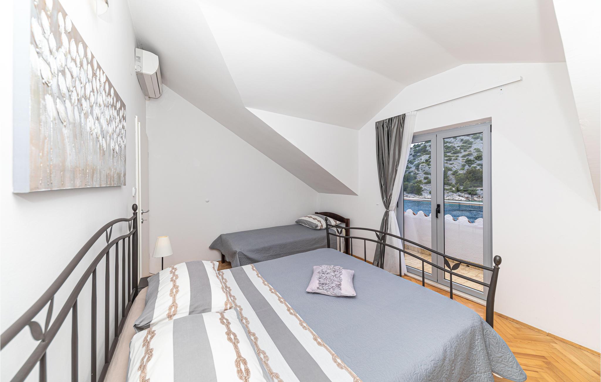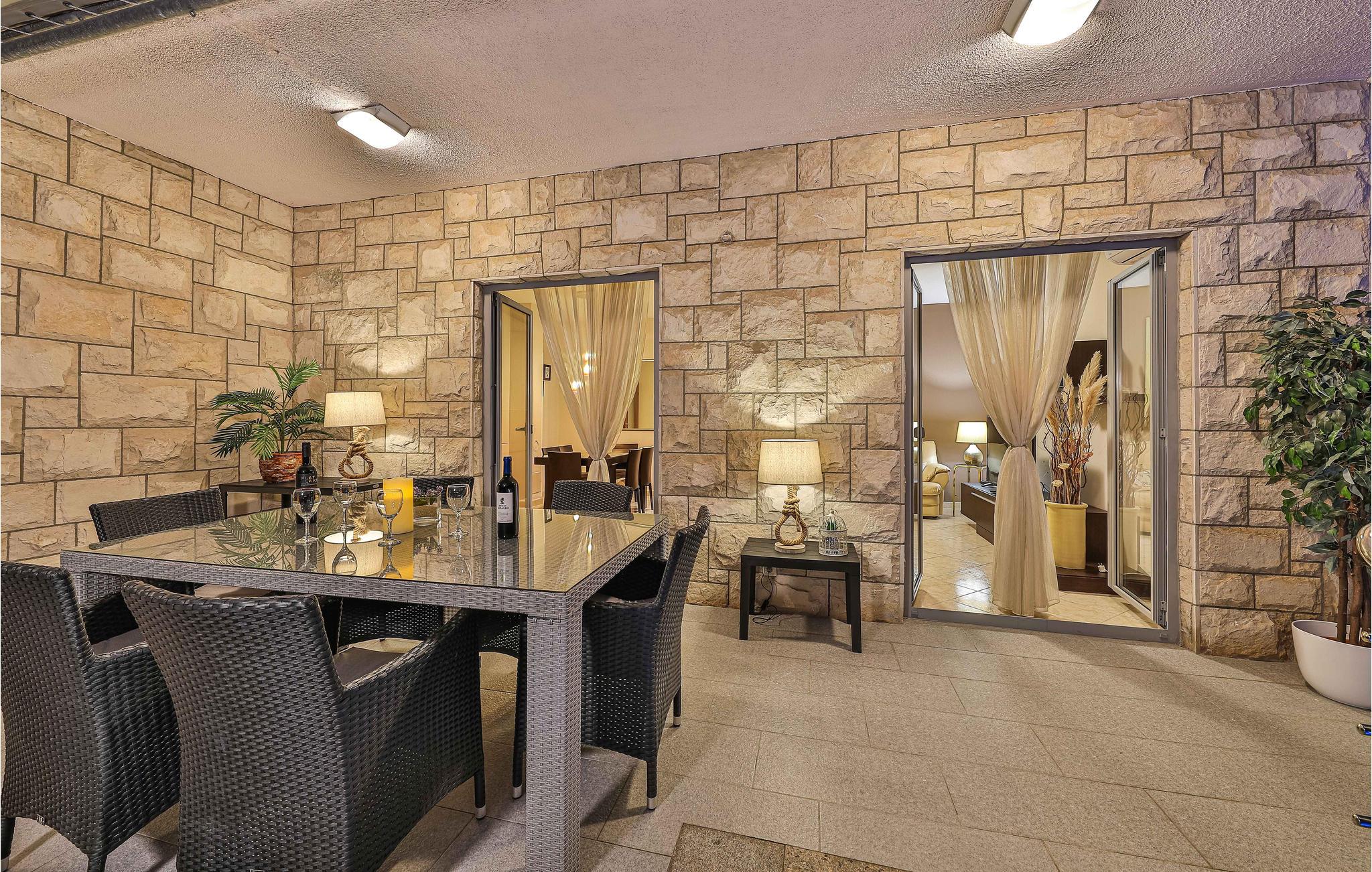 Forbindelsen mellem husene er ekstern. Husene er bygget af lokale sten, 60 cm tykke mure i dalmatisk landstil. I bygningens gårdhave er der en stor pool, hvor I kan køle ned i varmen og nyde liggestolene med en god bog på herlige sommerdage. Der er også sauna til jeres rådighed, og I kan også tilberede lækre grillretter til jeres familie og jer selv. Huset har et værtshus gravet ned i jorden på 40 m2 med en vinkælder, en bar til smagning af forskellige delikatesser og et smagslokale til olivenolie.