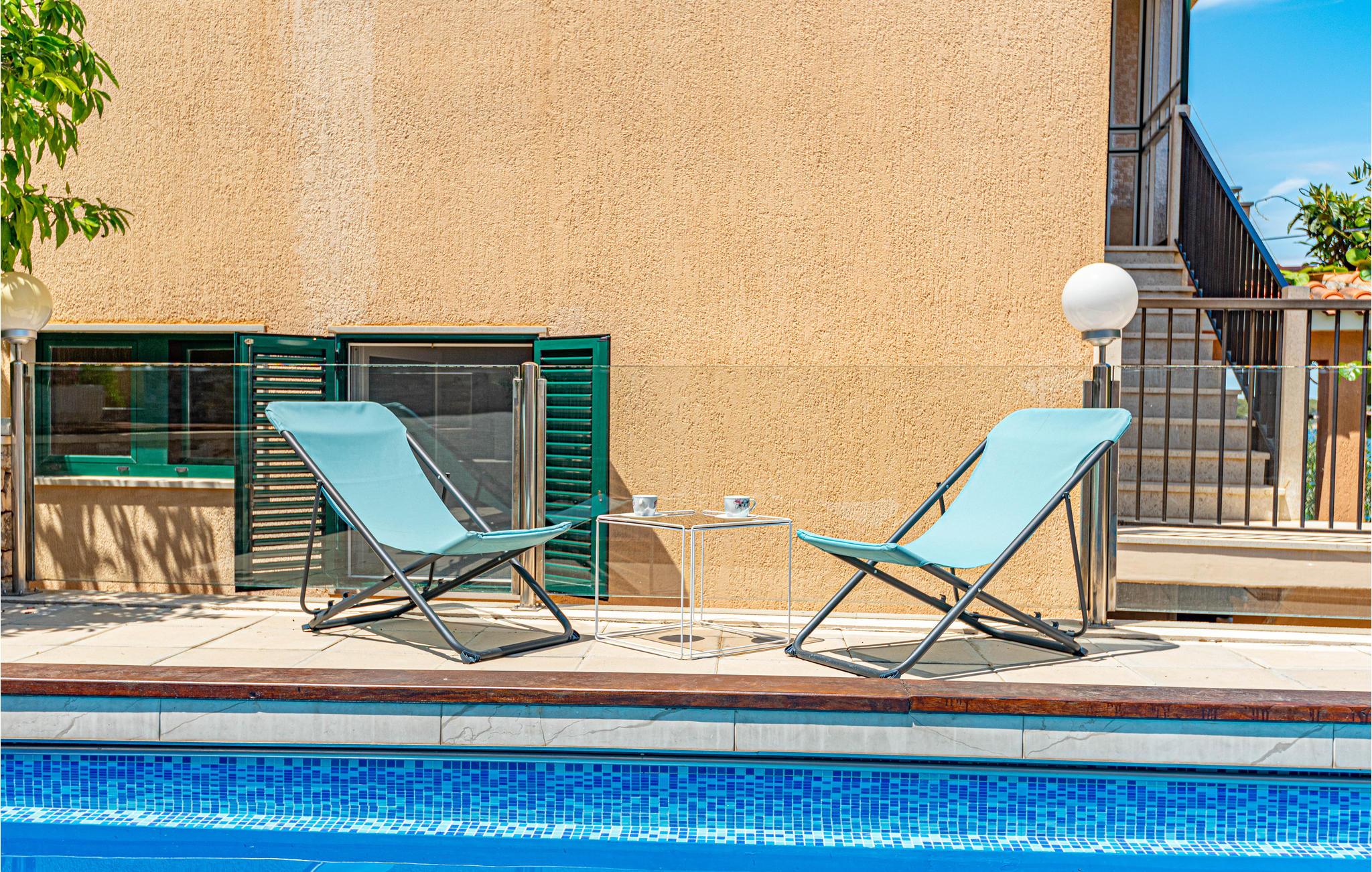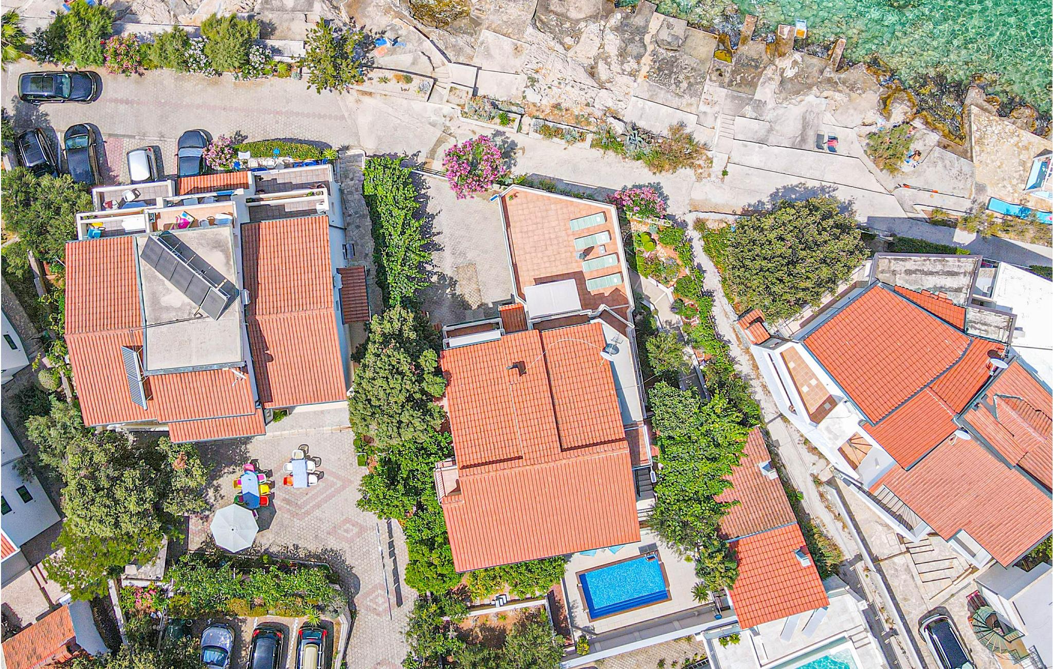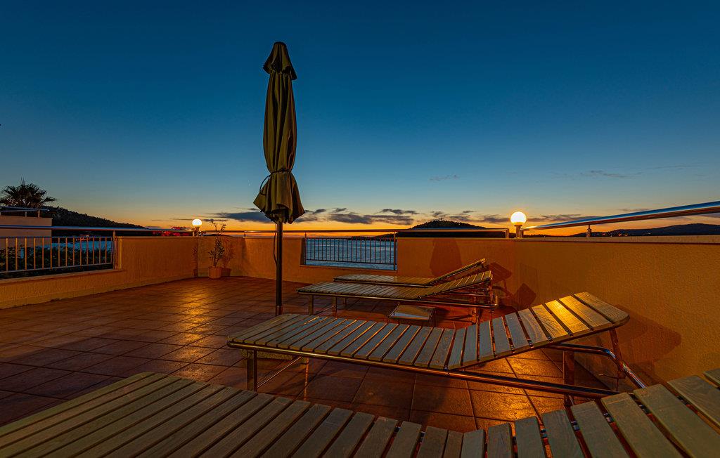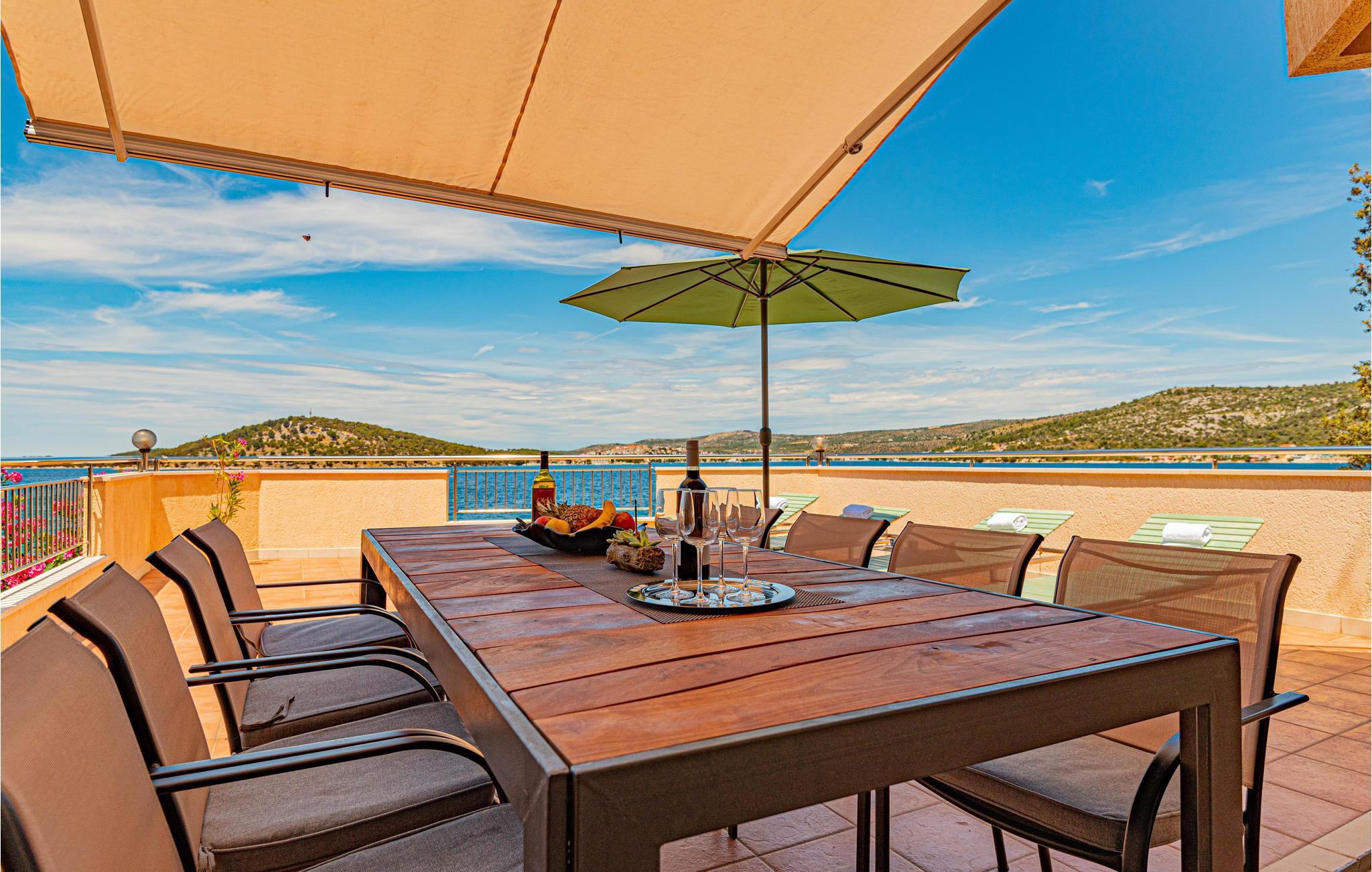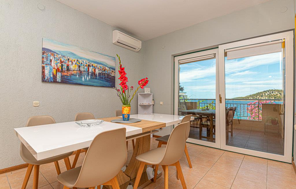 Dette enkle og praktiske feriehus ligger i byen Razanj, ca 10 km fra byen Rogoznica. Huset er i to etager, forbundet med udendørs trapper. På hver etage er der to soveværelser, et badeværelse og en stor stue, med udgang til en skøn terrasse med en endnu flottere udsigt over havet. Huset har en hel del ekstra: udendørs pool, fitnessapparater og bordfodbold. Tag på udflugt og oplev egnens skønne strande og bugter, tag en afslappet badedag og nyd de glasklare Adriaterhav. Besøg også byerne Sibenik og Split, begge med en rig kulturhistorie, mange butikker, restauranter og andre bekvemmeligheder.