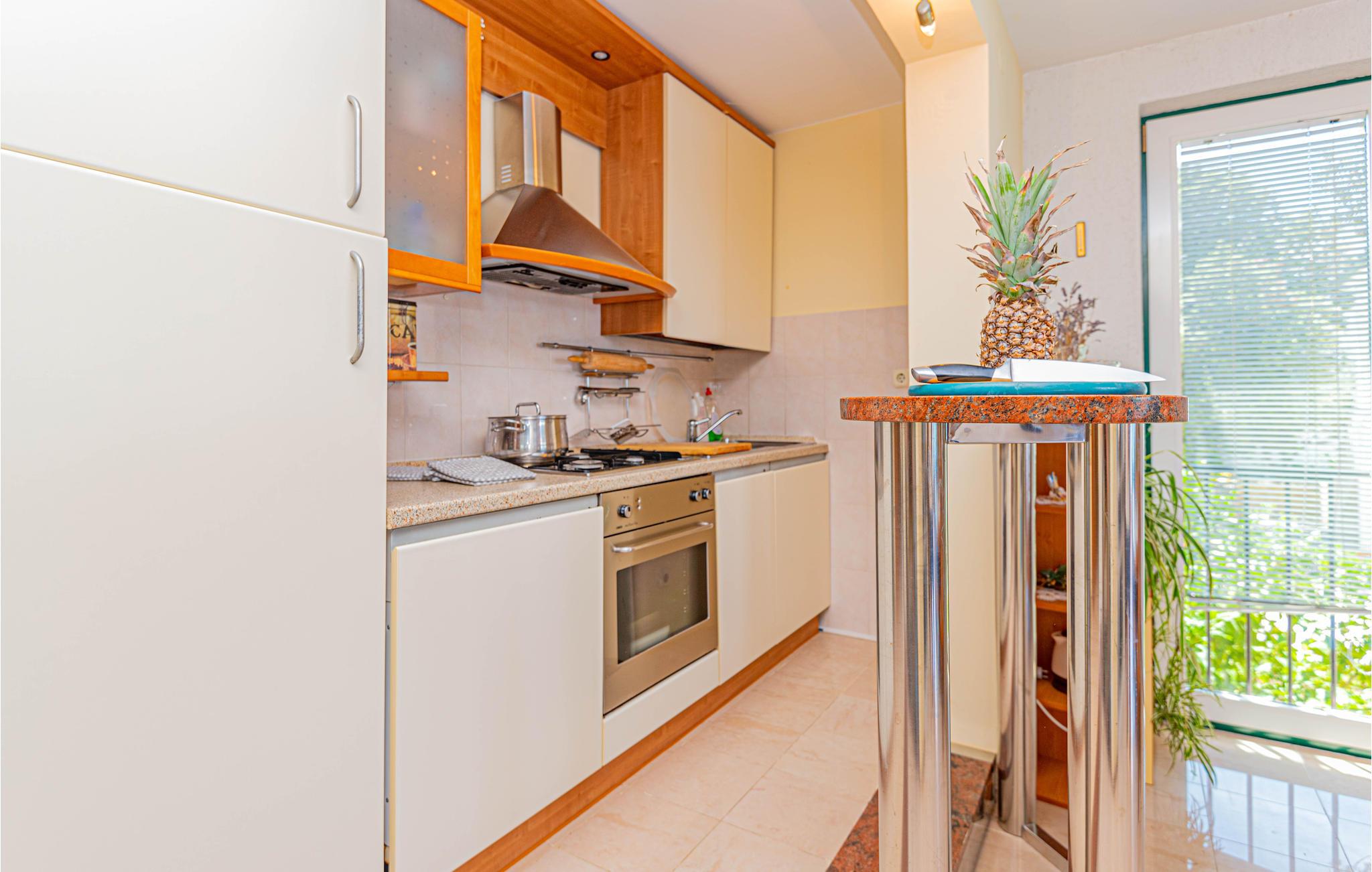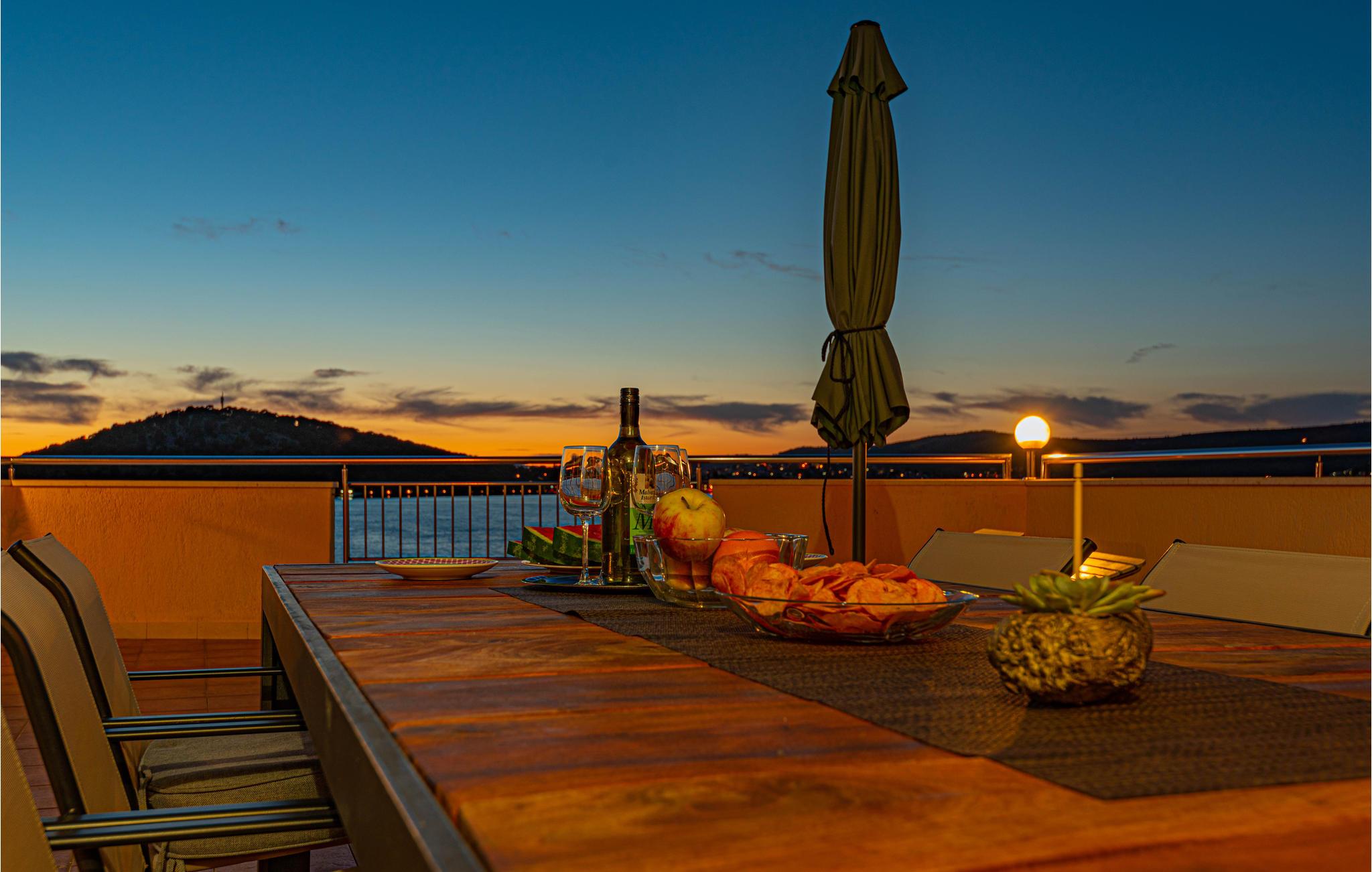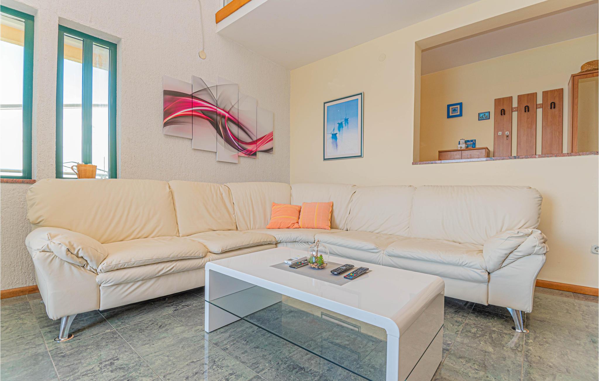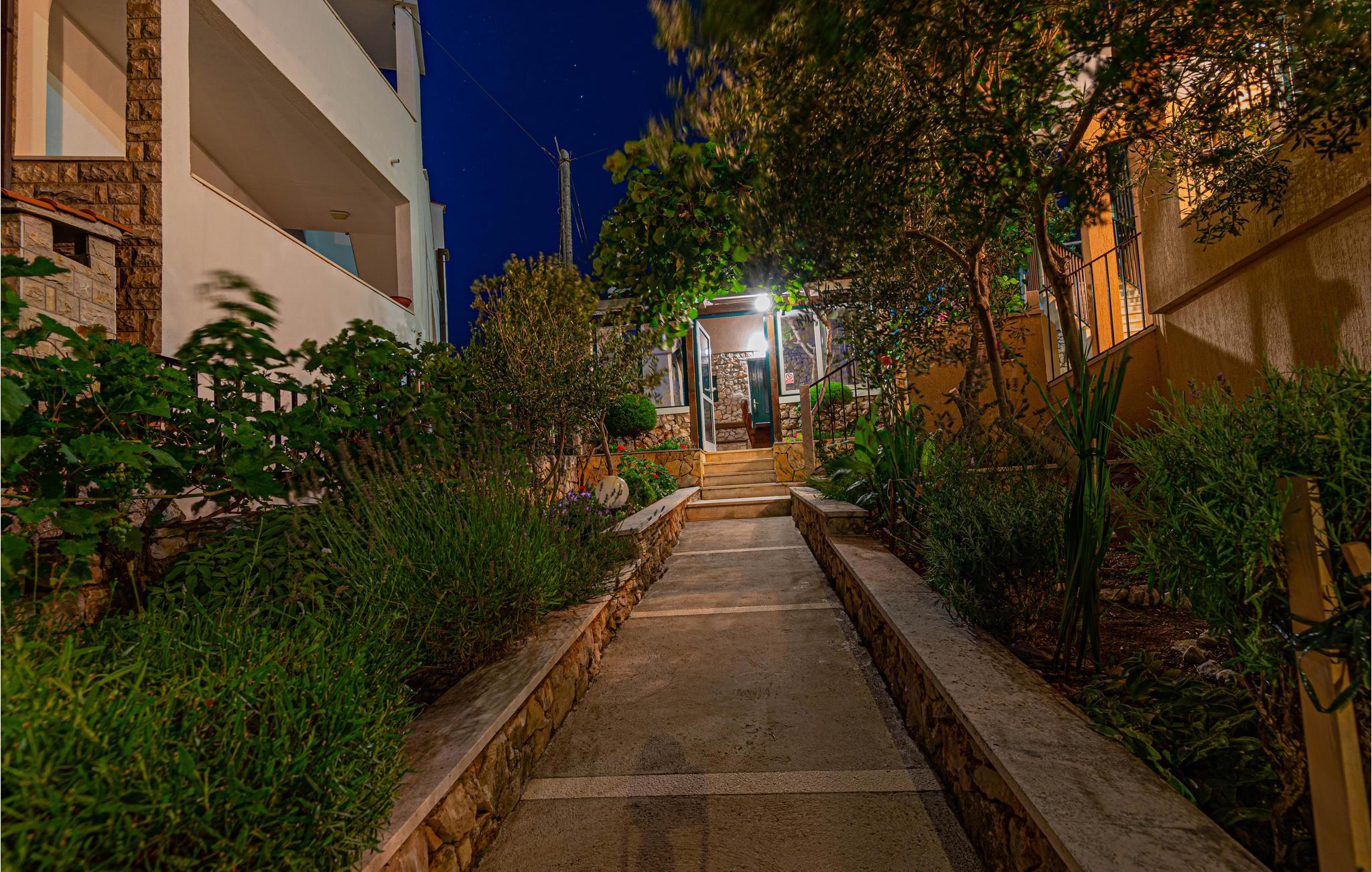 Dette enkle og praktiske feriehus ligger i byen Razanj, ca 10 km fra byen Rogoznica. Huset er i to etager, forbundet med udendørs trapper. På hver etage er der to soveværelser, et badeværelse og en stor stue, med udgang til en skøn terrasse med en endnu flottere udsigt over havet. Huset har en hel del ekstra: udendørs pool, fitnessapparater og bordfodbold. Tag på udflugt og oplev egnens skønne strande og bugter, tag en afslappet badedag og nyd de glasklare Adriaterhav. Besøg også byerne Sibenik og Split, begge med en rig kulturhistorie, mange butikker, restauranter og andre bekvemmeligheder.