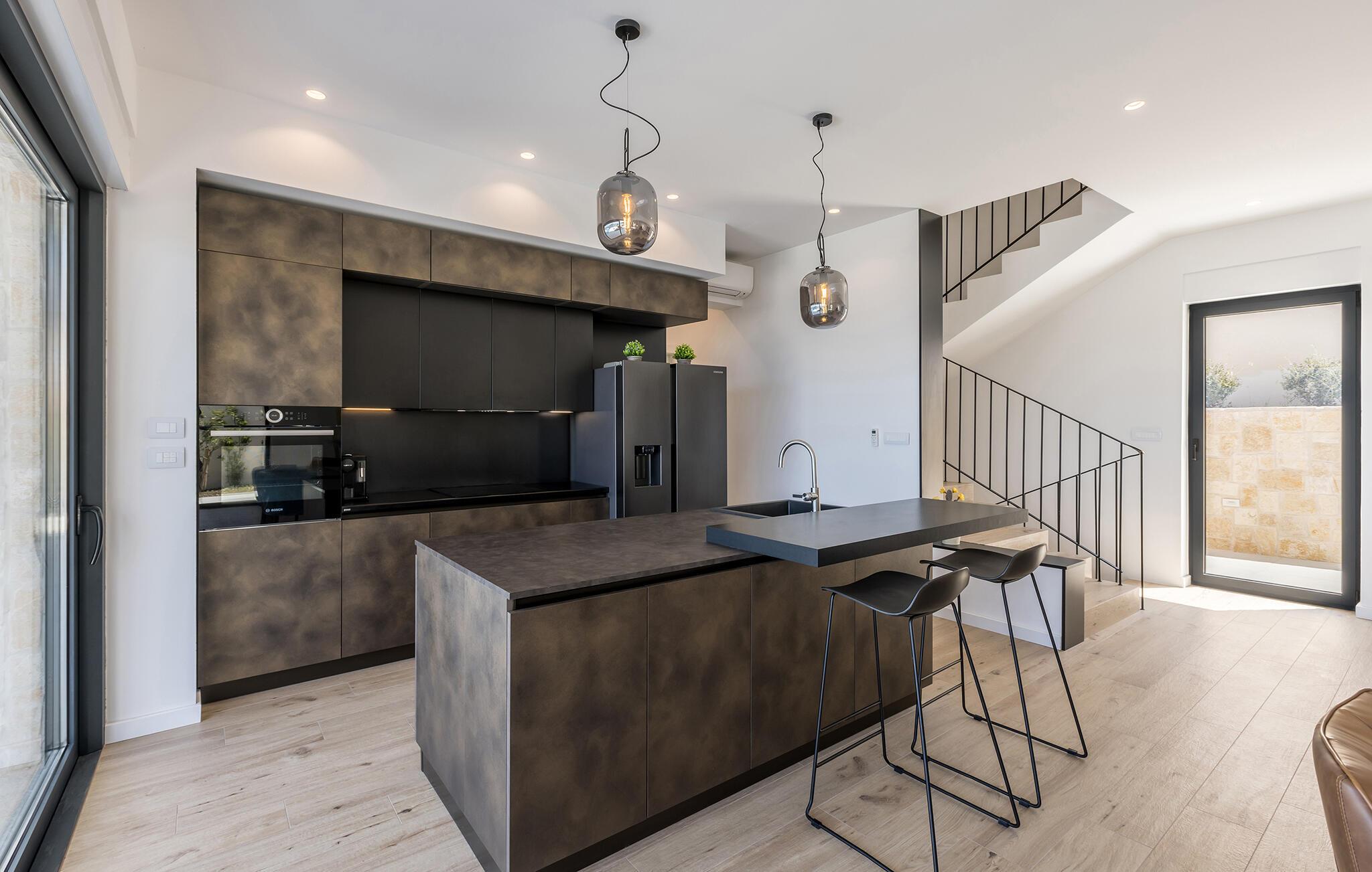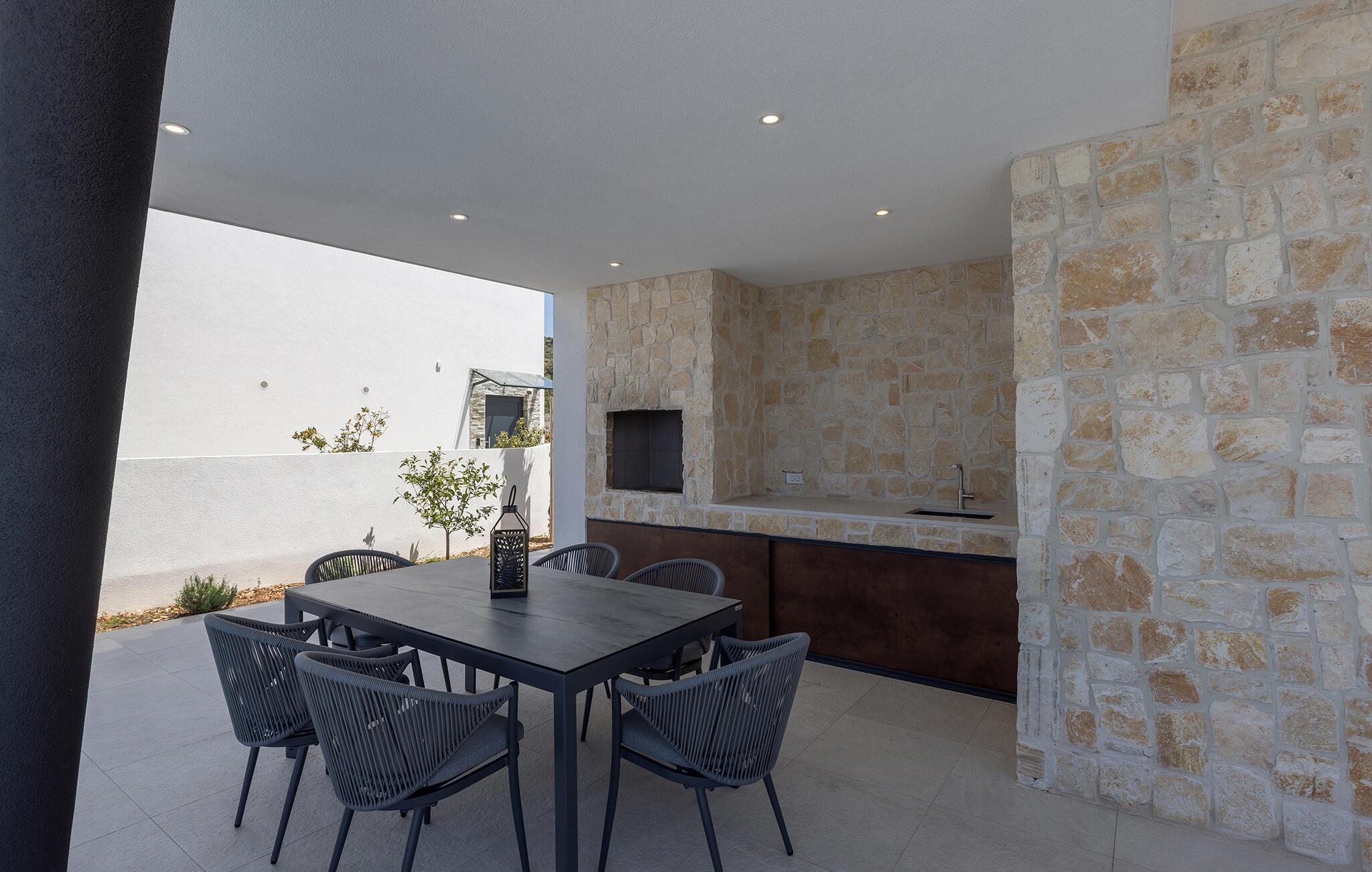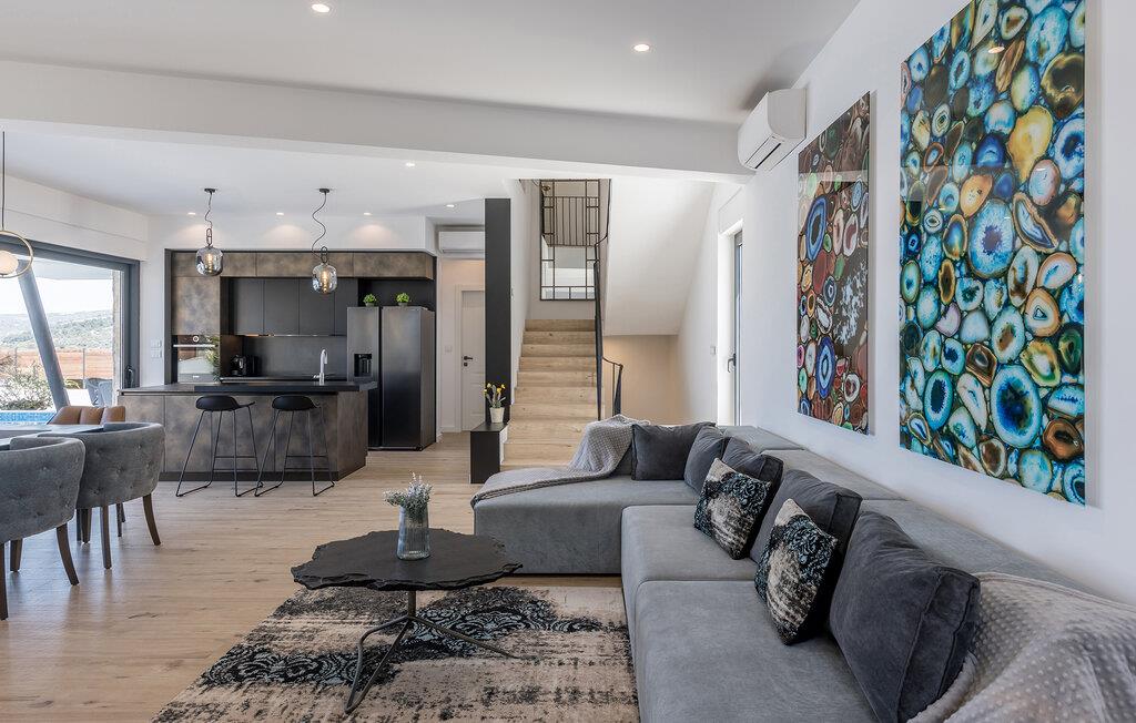 Dette moderne og stilfuldt indrettede hus forkæler jer med lyse, rummelige værelser og store vinduespartier, der igen og igen åbner op for den spektakulære udsigt over havet. Det bliver en fornøjelse at tilberede lækre måltider i det åbne kvalitetskøkken. Nyd maden ved det elegante spisebord, og slap af om aftenen med en god film på sofaen.