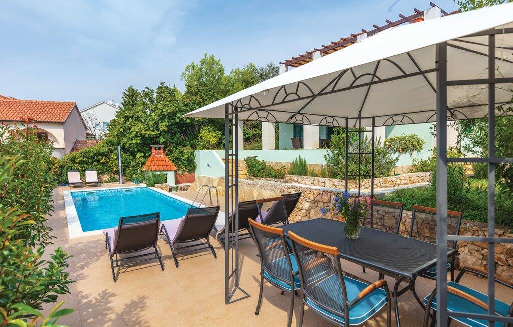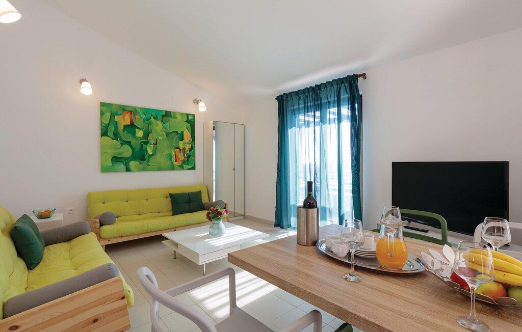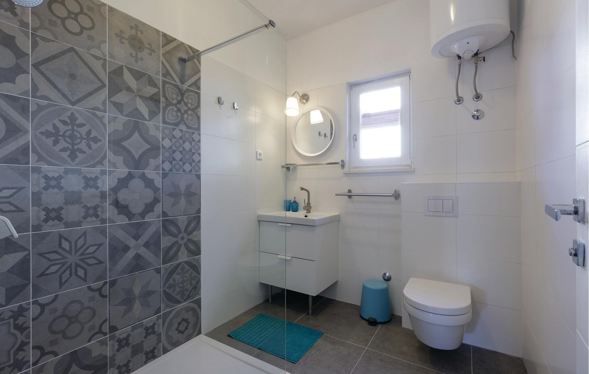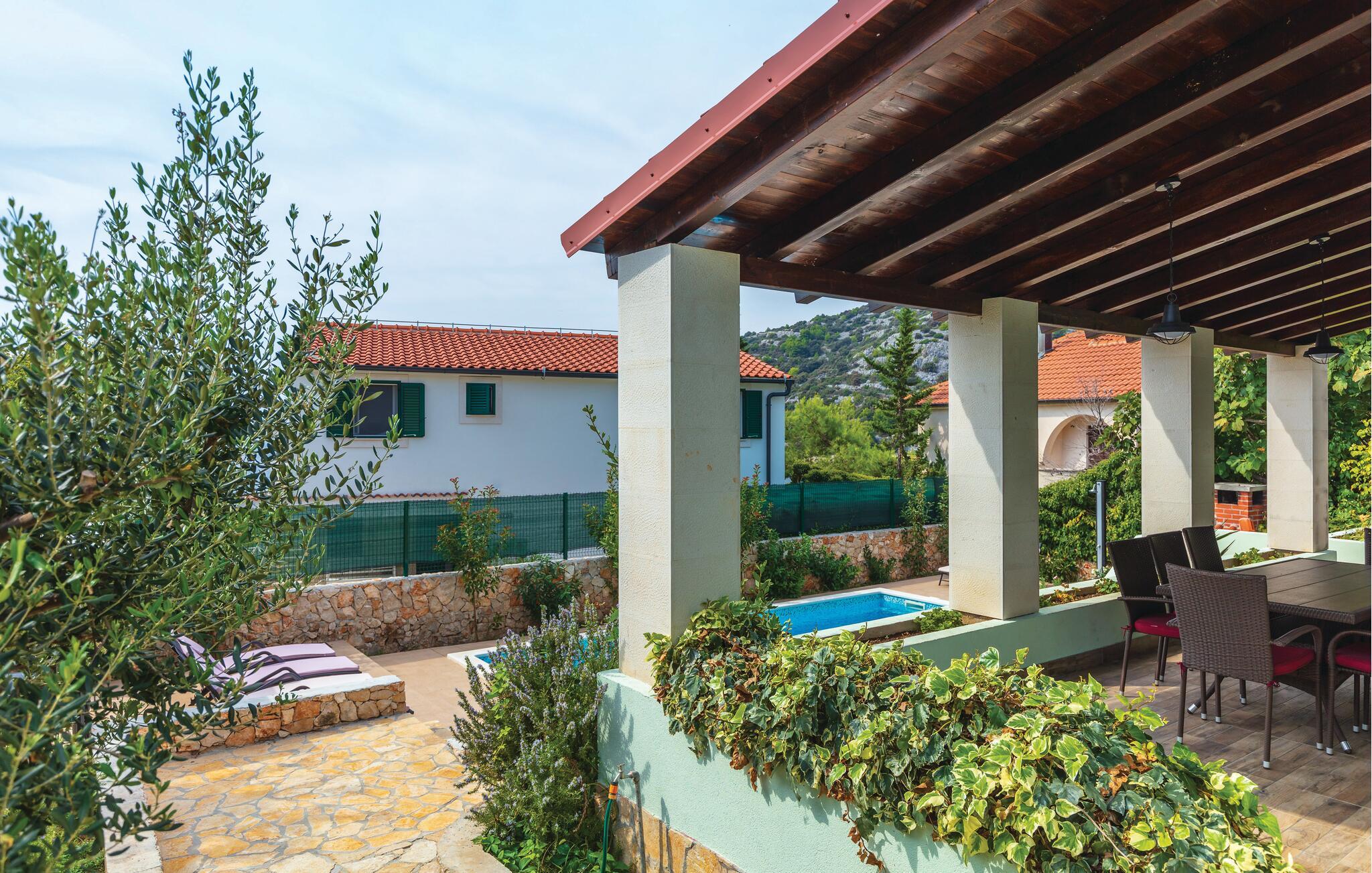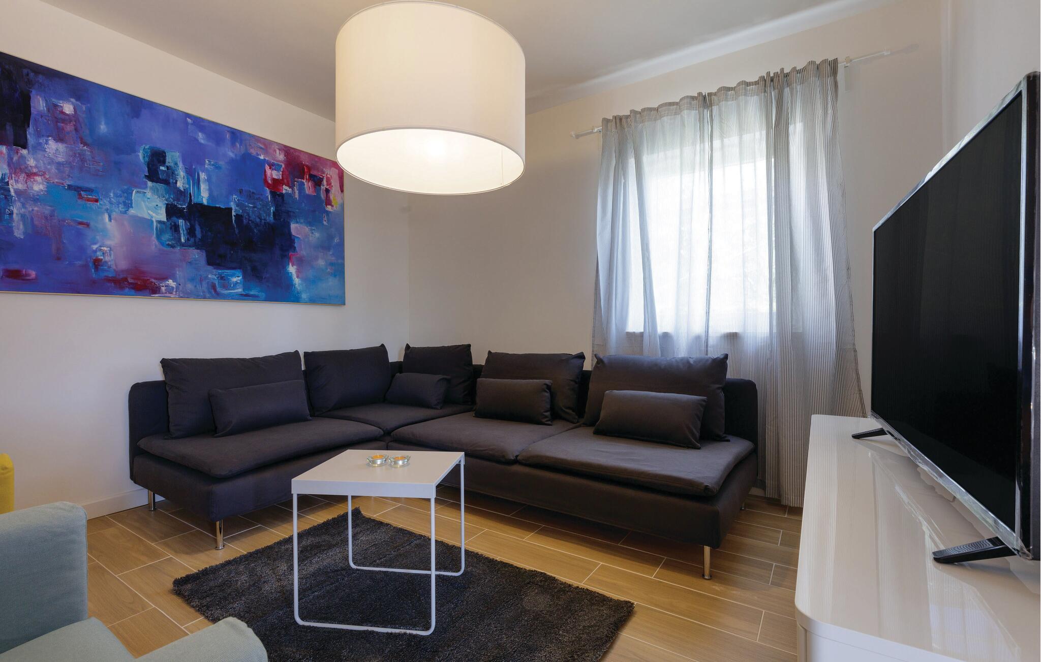 Dette komfortable feriehus lægger op til en afslappende ferie ved havet. Tilbered kroatiske retter i det moderne køkken og nyd måltider sammen ved det stilfulde spisebord. Slap af i den store sofa med en filmaften eller brug den smagfuldt indrettede stue til selskabelige spilleaftener med familie og venner.