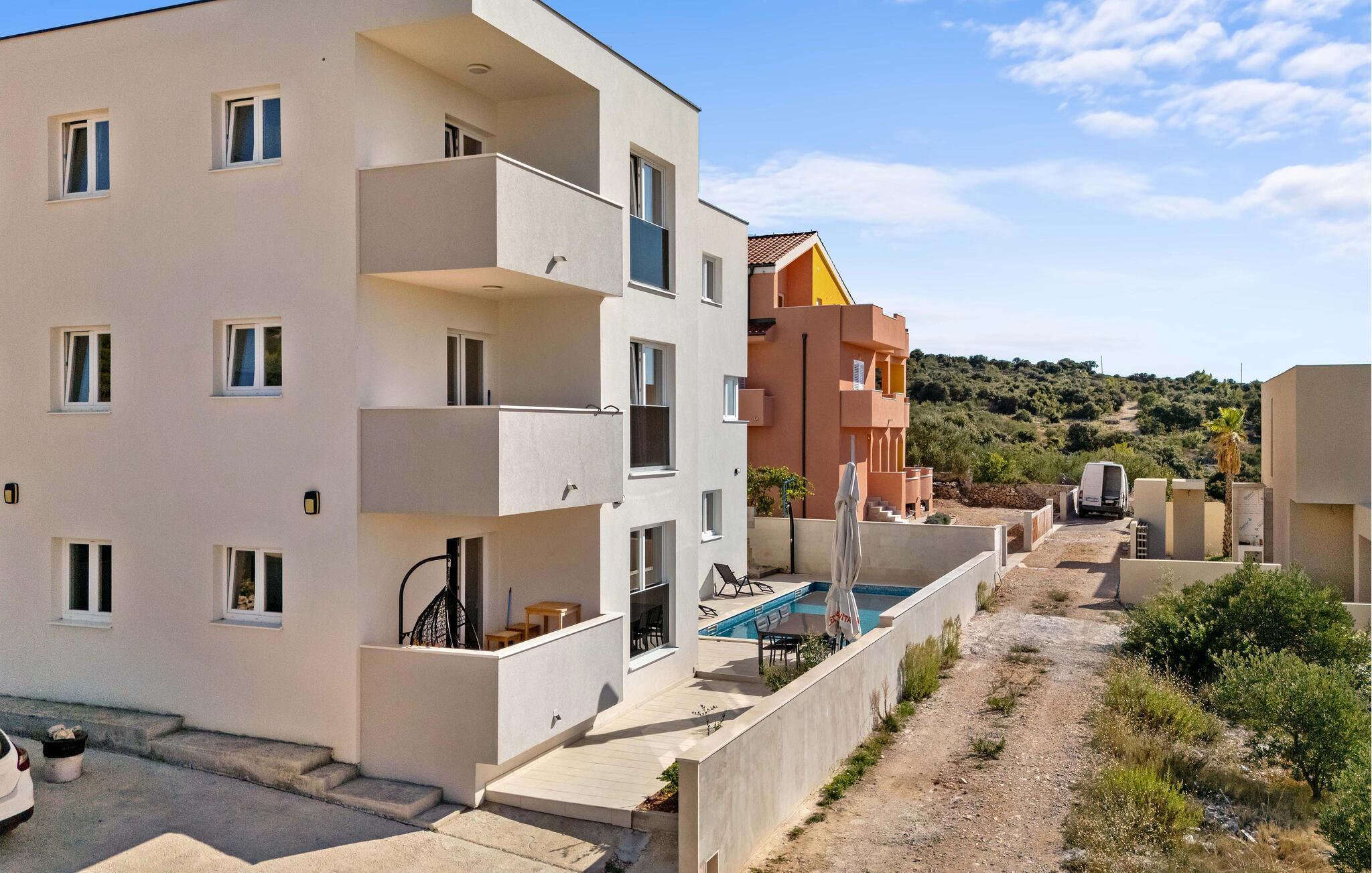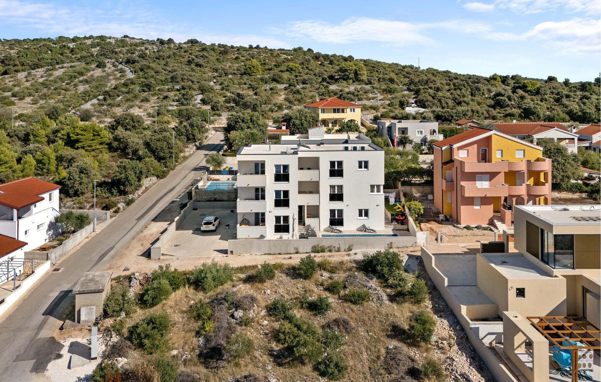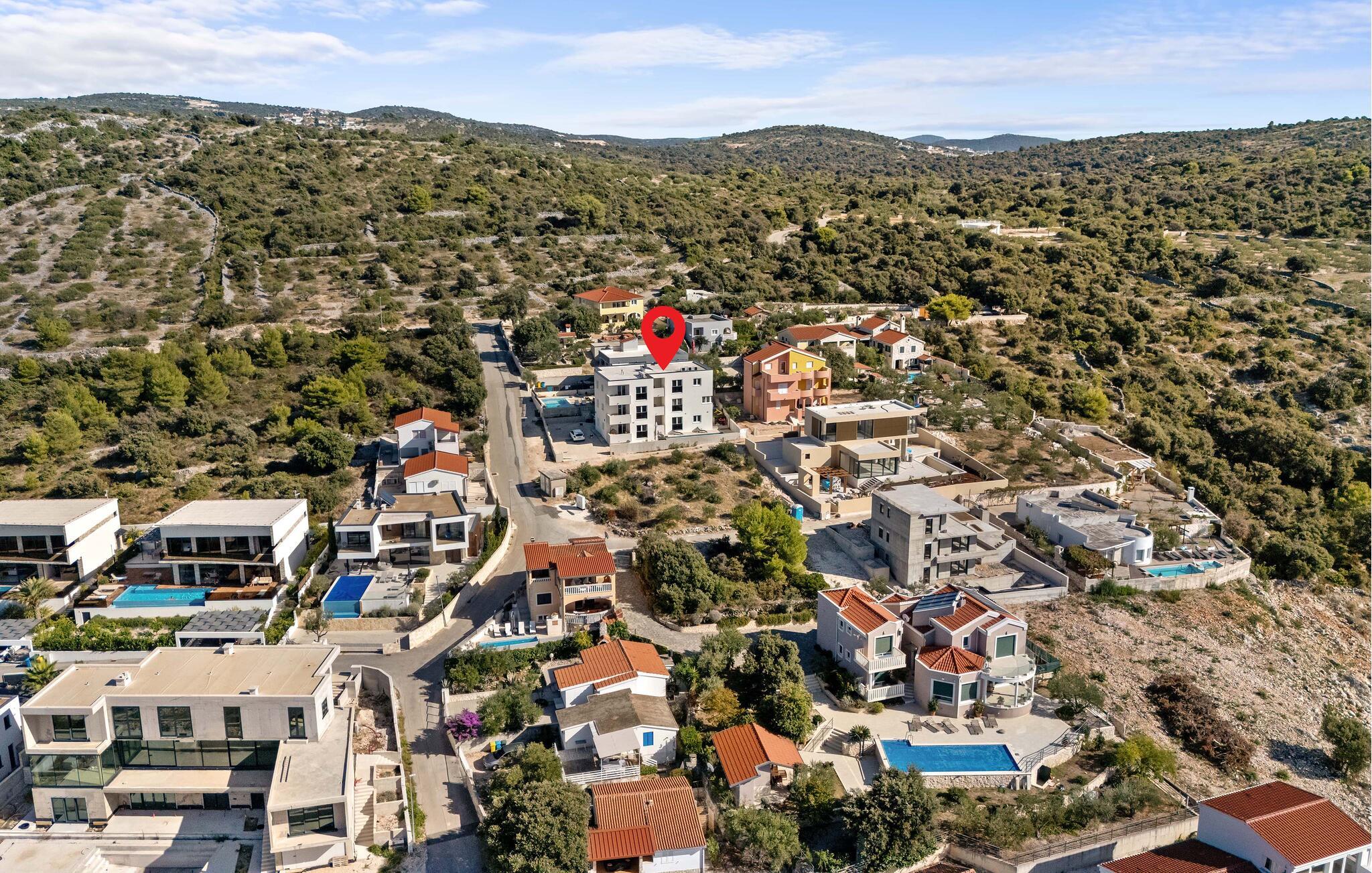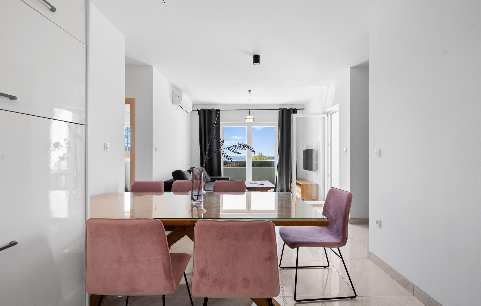 Havet ligger kun et stenkast væk og lægger op til at tilbringe afslappende timer ved vandet eller snorkle i små bugter. De rolige omgivelser i Ražanj tilbyder ideelle betingelser for lange gåture langs kysten eller vandreture med havudsigt. For en dagstur anbefales den historiske by Trogir med sin UNESCO-beskyttede gamle bydel, charmerende gyder og middelhavsstemning. Bådentusiaster vil også finde noget at nyde – hvad enten det er på en kort tur til skjulte bugter eller en udflugt til de omkringliggende øer.