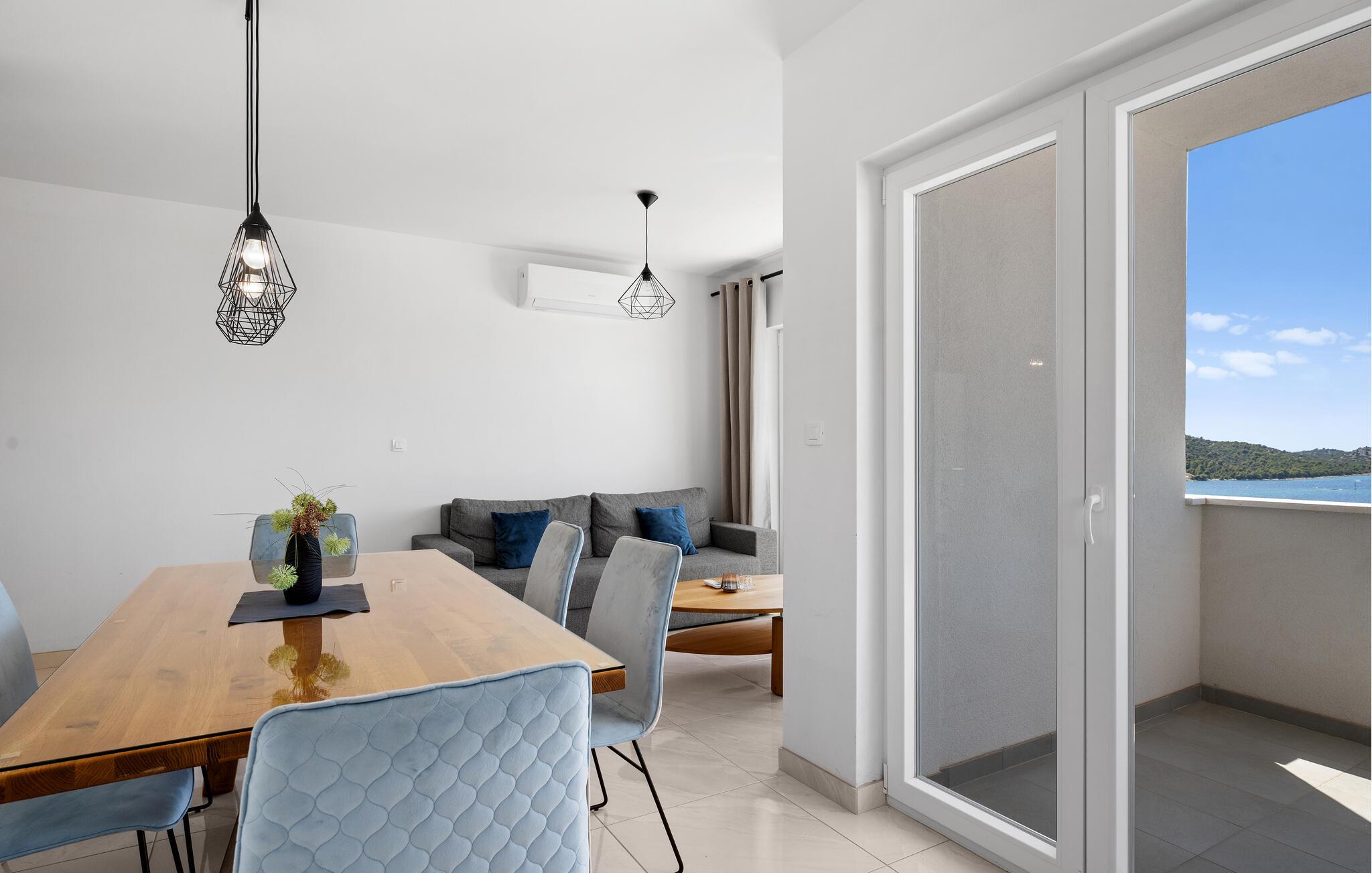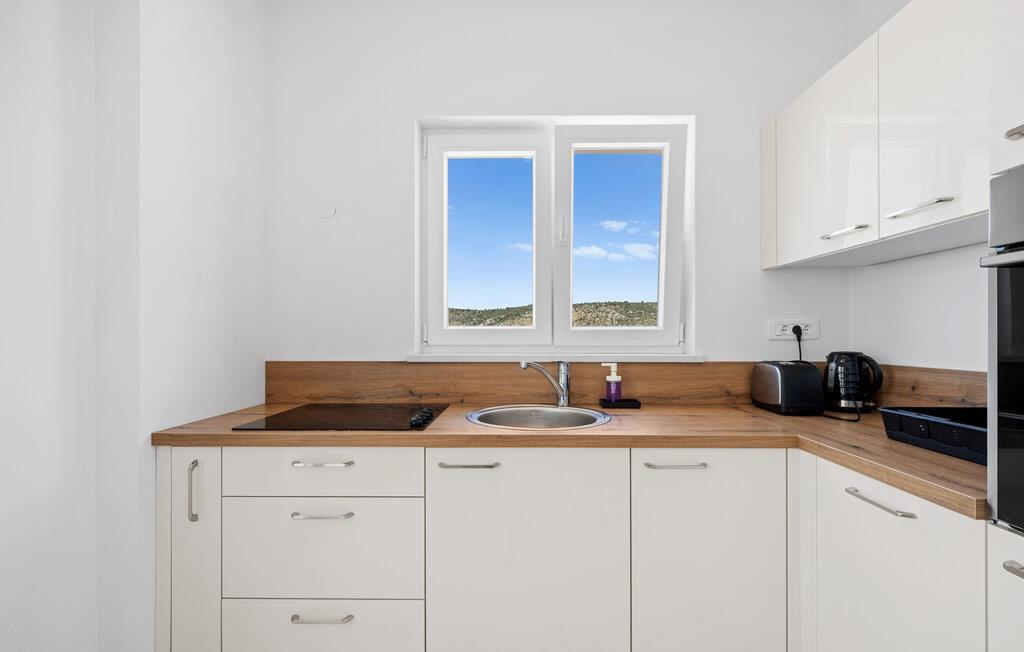 Havet er kun et stenkast væk og lover afslappende timer ved vandet eller korte udforskninger med snorkel og finner. Og hvis I har lyst til en dagstur, er den gamle bydel i Trogir ikke langt væk – et sted fuld af historie, sydstatsglæde og fortryllende gyder.