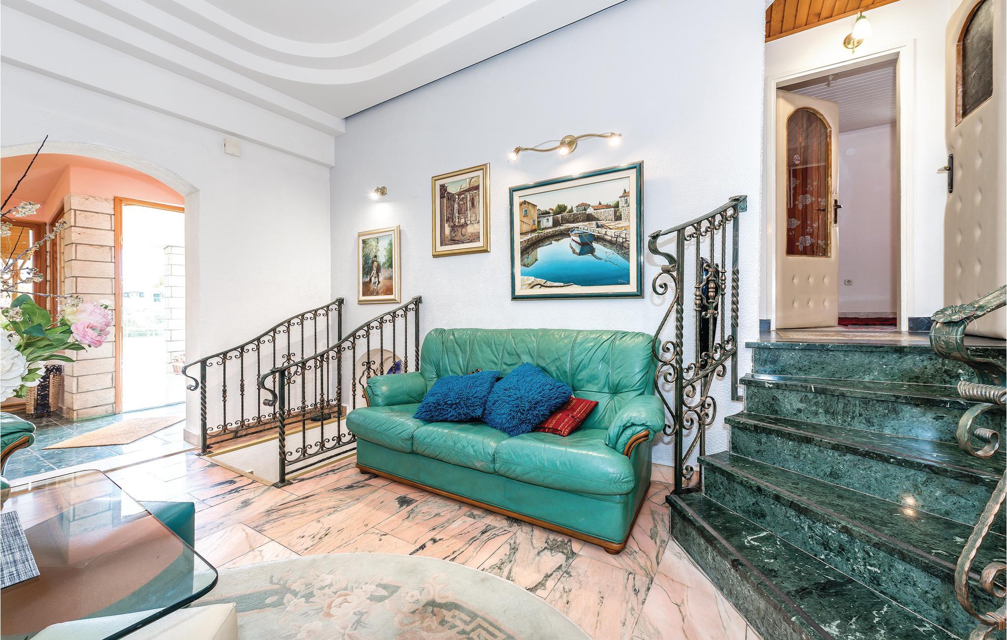Rogoznica er en populær ferieby mellem byerne Primošten og Trogir. Her ligger dette usædvanlige feriehus på flere halve etager (udendørs trappe til øverste etage). Fra alle husets sider er det muligt at komme ud i denne skønne mediterrane have med pool, der ud over en overdækket terrasse også har en grill og masser af privatsfære til hyggestunder med familie og venner. Rogoznicas badestrande er smukke og meget egnet til familier. Lige i nærheden er der en berømt marina med bl.a. restaurant Frape. Besøg halvøen Gradina, saltsøen Zmajevo Oko, som er typisk for et karstområde.