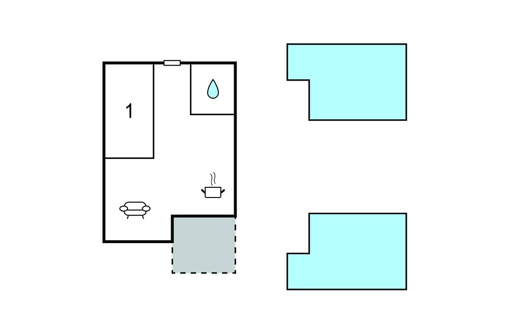 Opholdsstue/køkken - 2 Sovepladser. (Sofa, madras eller lignende).