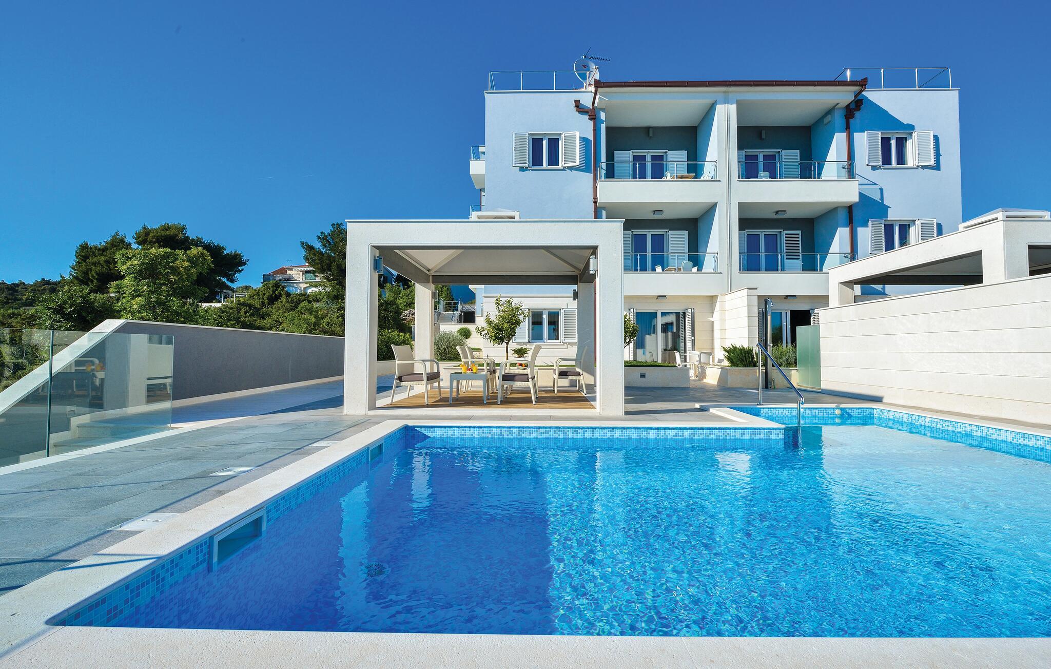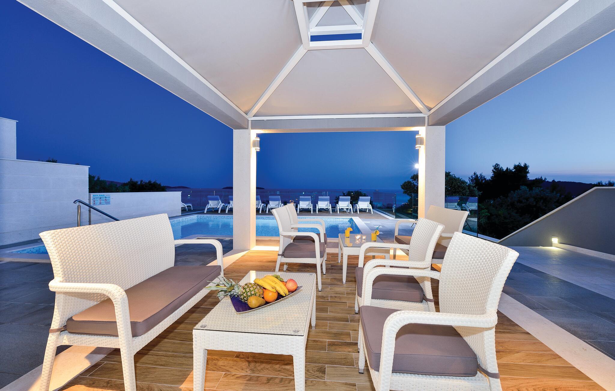 Glæd jer til smukke solopgange over Adriaterhavet, smid jeres håndklæde over skulderen lige efter morgenmaden og lad batterierne op ved den smukke pool. Nyd den sensationelle havudsigt fra en af ??de komfortable liggestole og om aftenen socialiser jer med andre gæster over en grill eller få hyggelige samtaler under den smarte pergola.