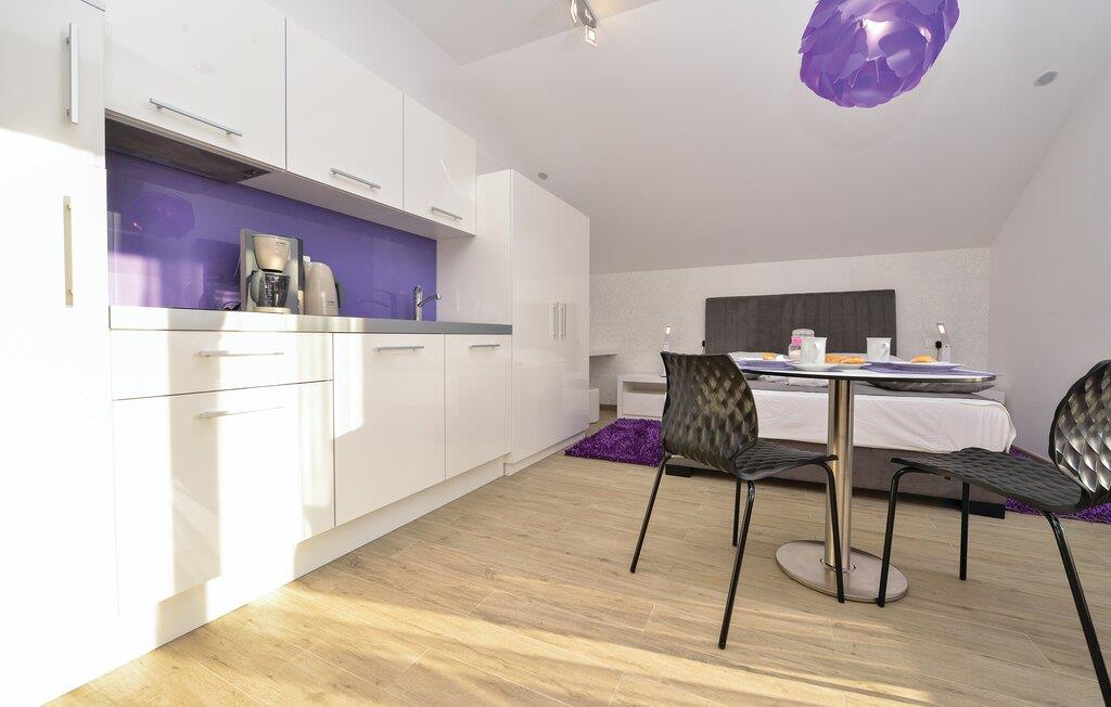 Forkæl jer selv med en solrig pause for to i denne moderne ferielejlighed med pool.