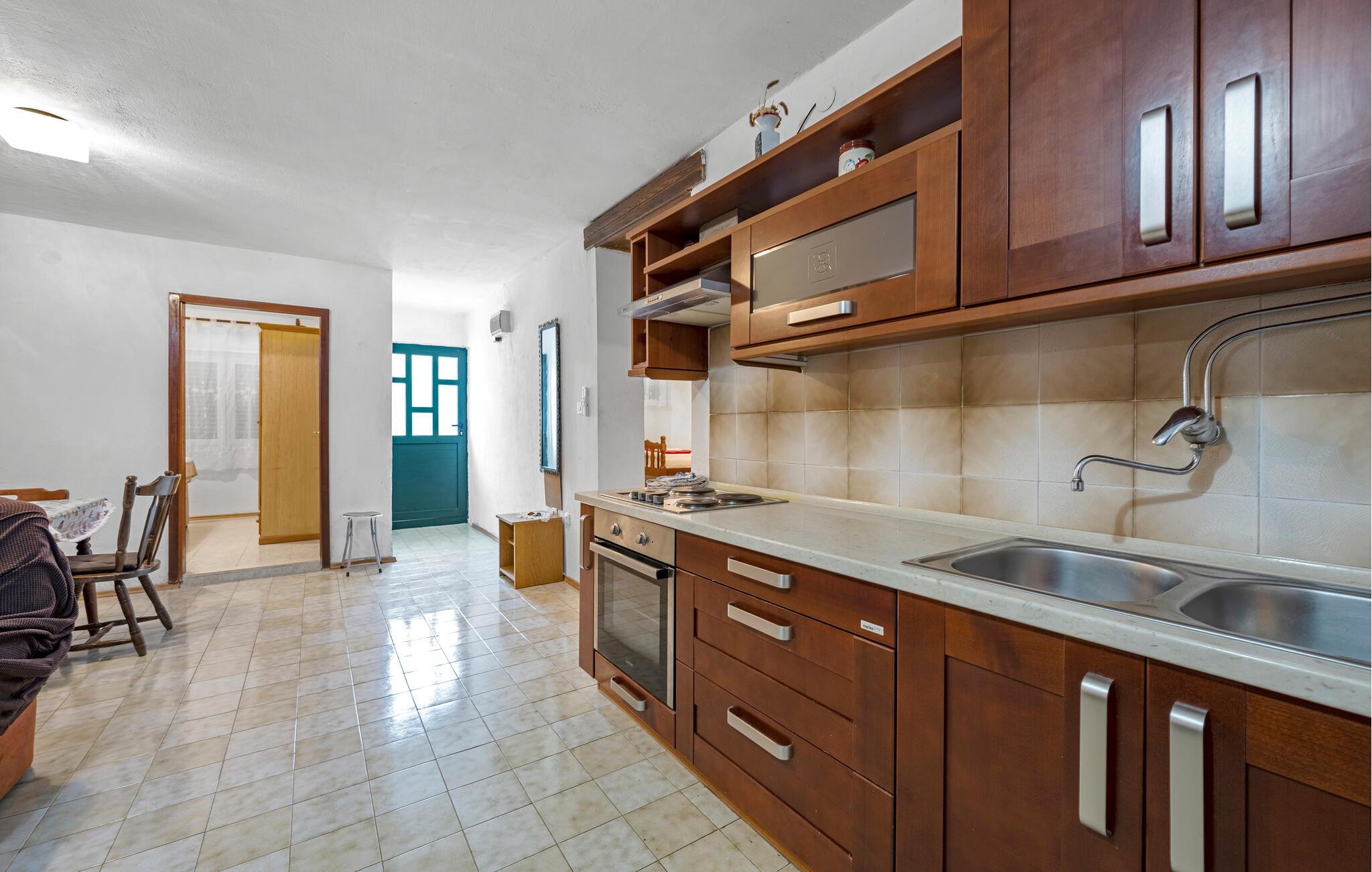 Dette hyggelige feriehus ligger kun en kort gåtur fra havet og tilbyder masser af plads til at nyde solrige dage med en stor familie eller en gruppe venner. Tilbered kroatiske retter sammen, planlæg jeres aktiviteter over afslappende måltider og slap af efter en begivenhedsrig dag med en hyggelig spilleaften.