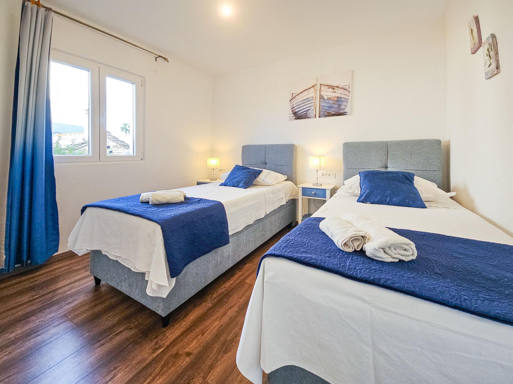 "A1", 3-room apartment 85 m2 on 1st floor, south facing position. Living/dining room with satellite TV (flat screen). Exit to the terrace. 1 room with 1 french bed (160 cm, length 200 cm). Exit to the terrace. 1 room with 2 beds (90 cm, length 200 cm). Open kitchen (4 hot plates, microwave, freezer). Shower/WC. Large terrace 25 m2, roofed. Balcony furniture. Very beautiful view of the sea. Facilities: hair dryer. Internet (WiFi, free).
