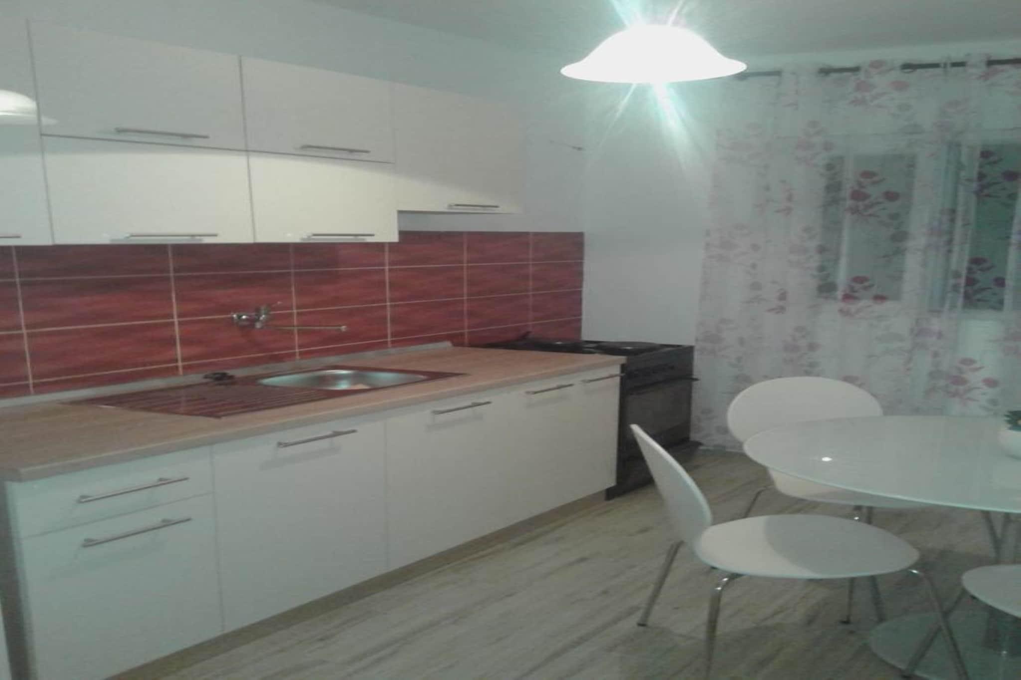 På 1. etage: (Køkken(spisebord, kakkelovn, elkedel, brødrister, ovn, køle-fryseskab), soveværelse(dobbeltseng), soveværelse(dobbeltseng, balkon), badeværelse(bruser, toilet), klimaanlæg) sofahjørne, grill, grill, parkering, legeredskaber