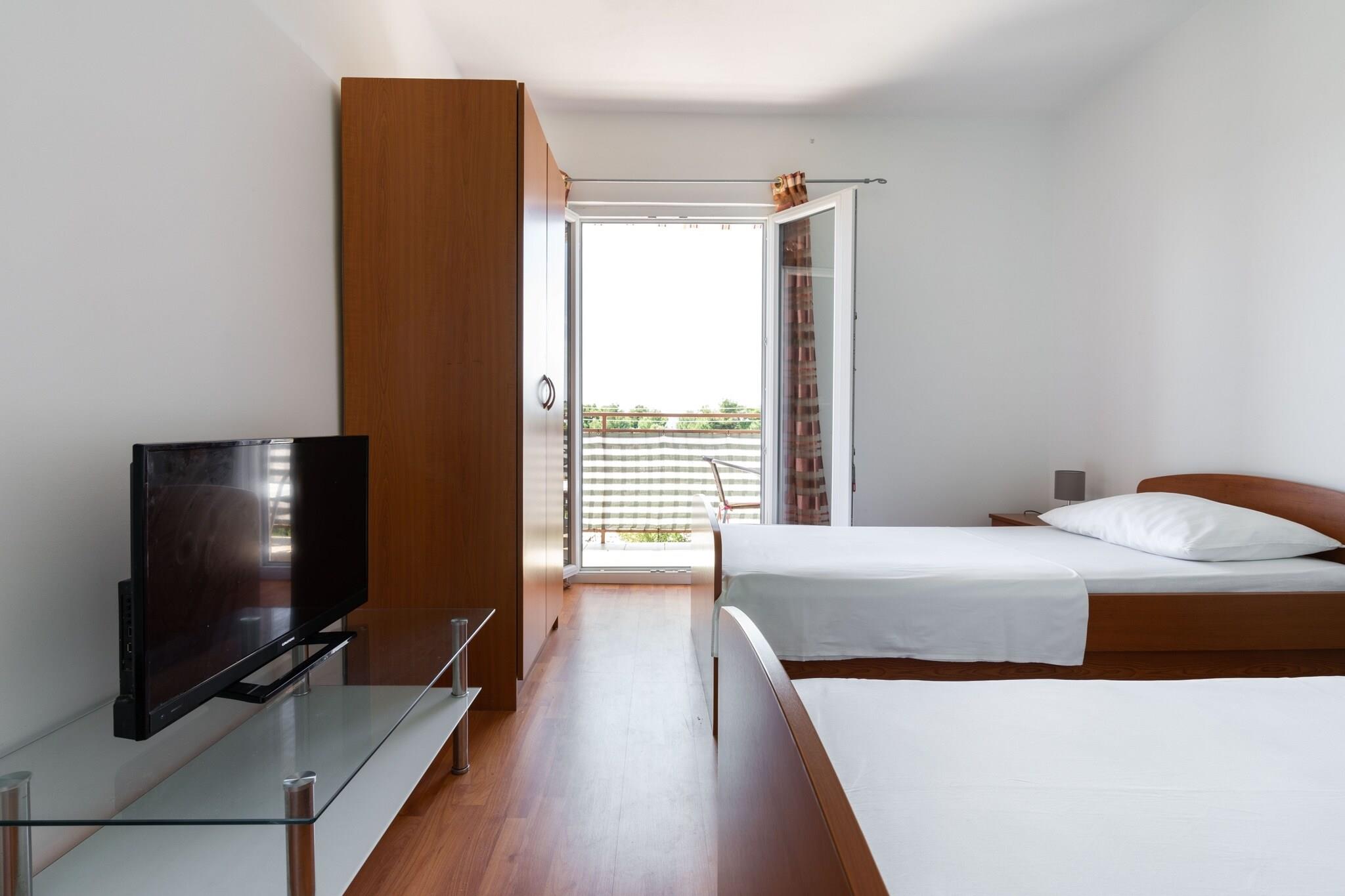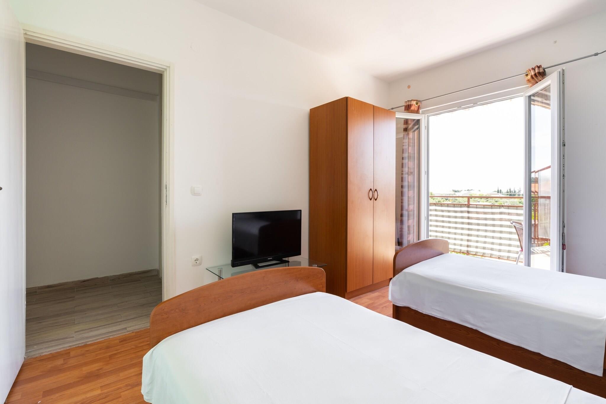 På 1. etage: (Køkken(spisebord, kakkelovn, elkedel, brødrister, ovn, køle-fryseskab, varme, klimaanlæg), Køkken(spisebord, kakkelovn, elkedel, brødrister, ovn, køle-fryseskab), soveværelse(dobbeltseng), soveværelse(dobbeltseng, balkon), soveværelse(dobbeltseng), soveværelse(dobbeltseng, balkon), badeværelse(bruser, håndvask, toilet), badeværelse(bruser, håndvask, toilet)) sofahjørne, grill, have, grill, legeredskaber