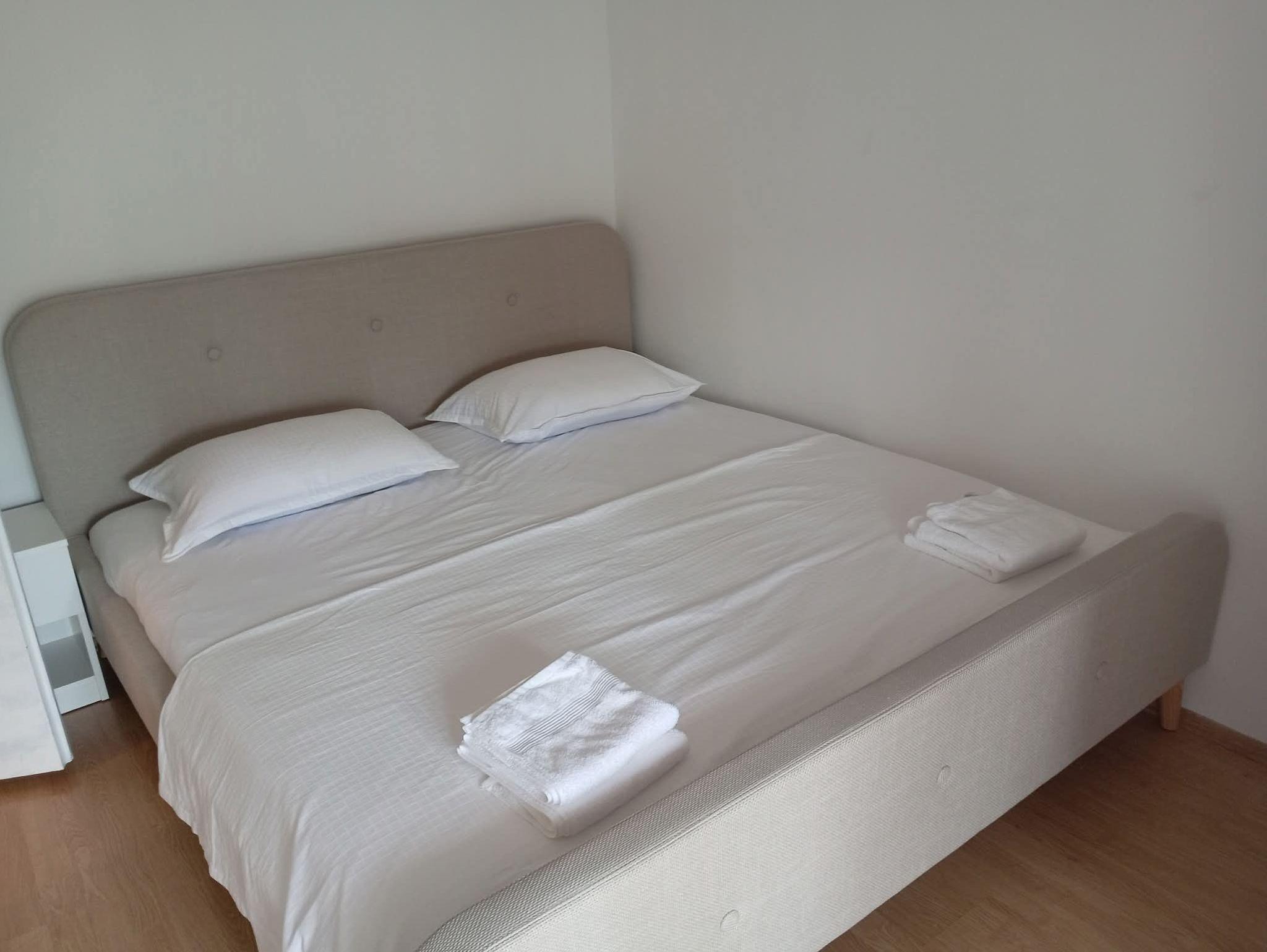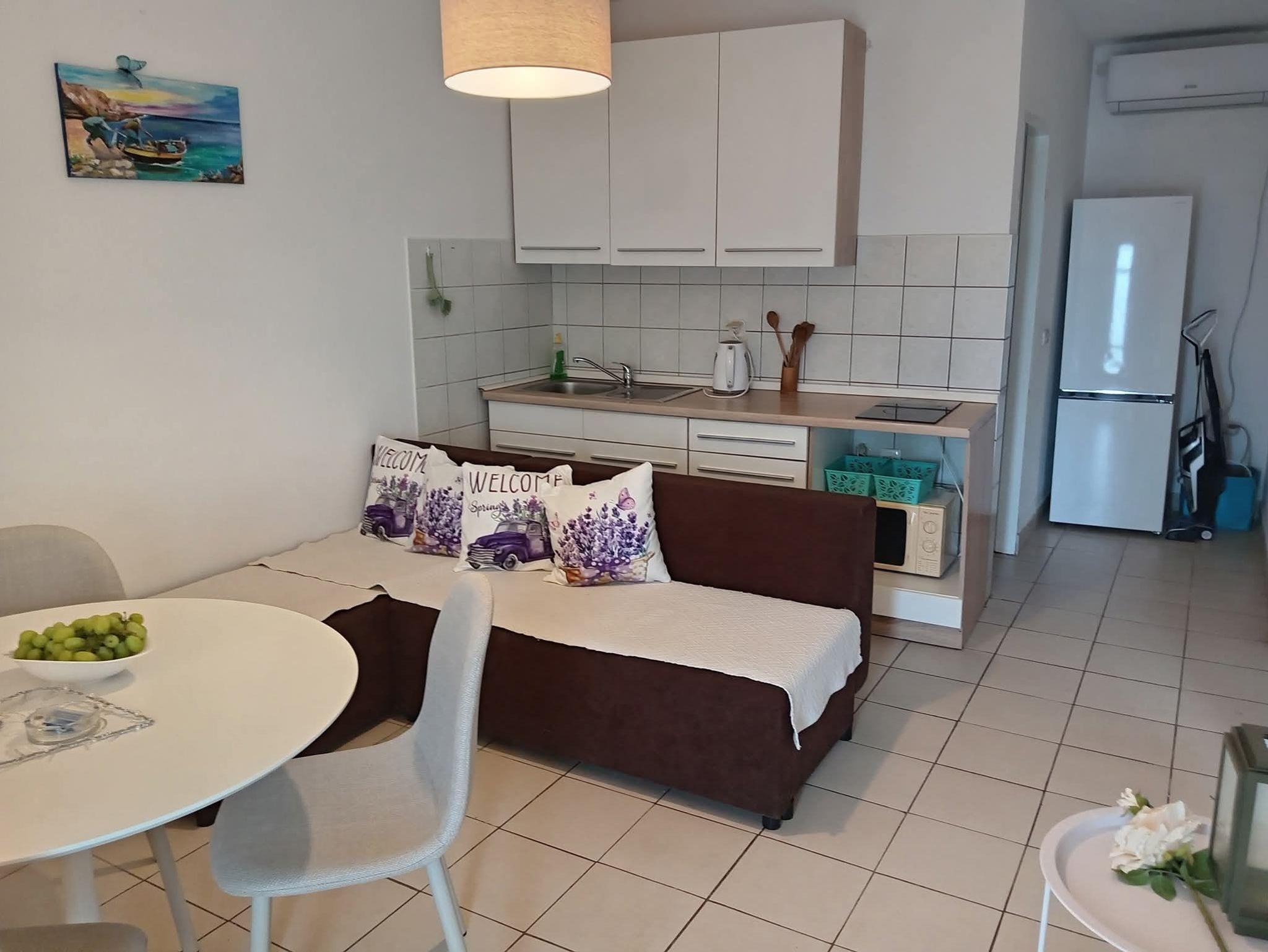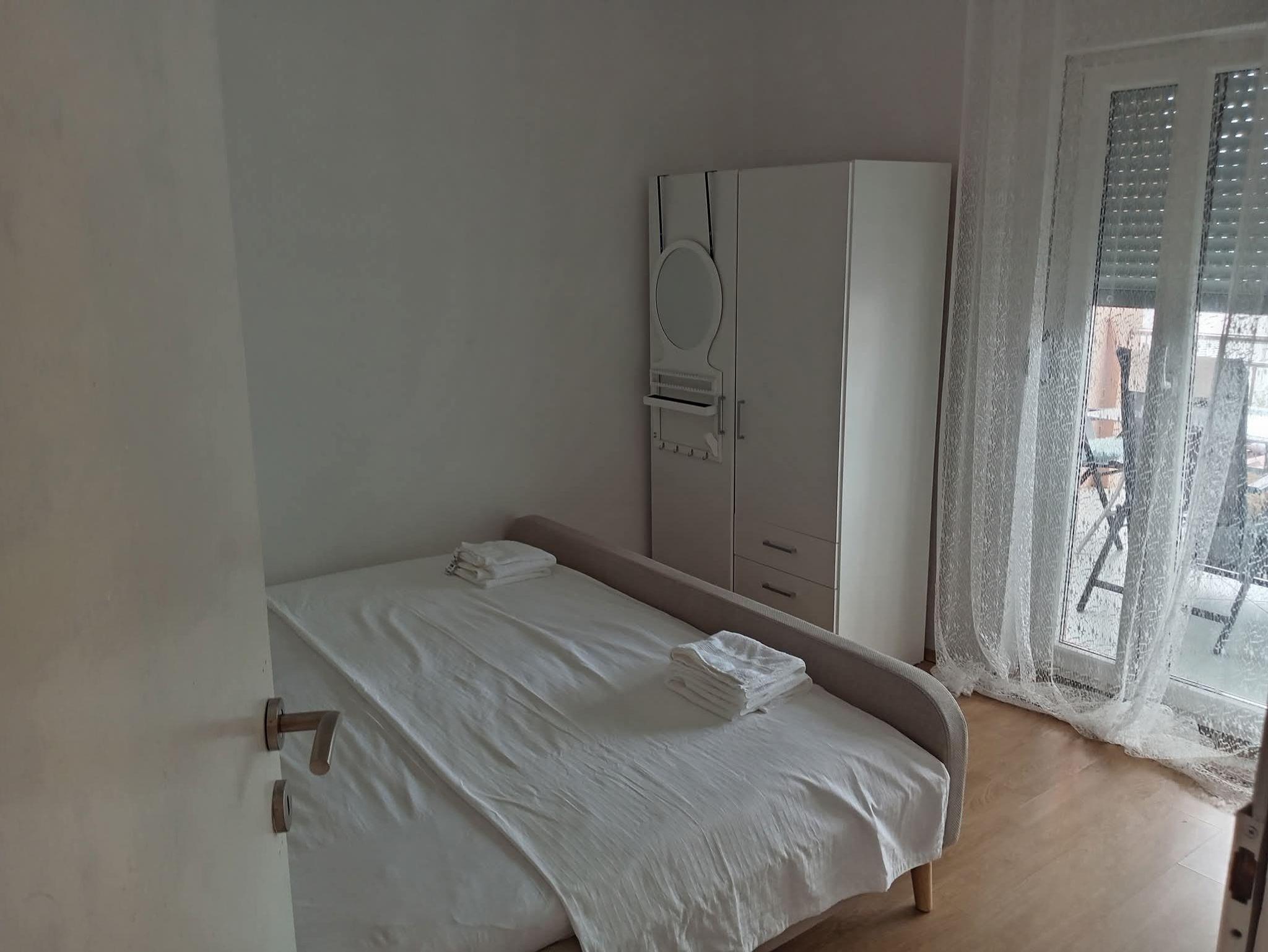 Ferienwohnung bietet Platz für 4 Gäste. Die Betten sind in Schlafzimmern, die es 2 gibt, innerhalb einer Gesamtfläche von 47m2, angeordnet. Die Gäste haben eine eigene Terrasse zur Verfügung, auf der sie in warmen Sommernächten genießen können. Das Apartment bietet Meerblick. Es ist erlaubt, Speisen auf dem Gemeinschafts-Grill vorzubereiten. IM PREIS INBEGRIFFEN: Kurtaxe, Endreinigung, Klimatisierung, Parkplatz, Internet, Zusatzbett. VERBINDLICHE ZUSÄTZLICHE KOSTEN: Aufzahlung für Kurzaufenthalte (prozentualer Zuschlag pro Nächtigungsanzahl: 30% - 1, 20% - 2, 10% - 3). Die Verfügbarkeit zusätzlicher Dienstleistungen in Ihrem reservierten Termin und die Preise derselben (falls nicht aufgeführt) müssen im Voraus überprüft werden. Zusätzliche Dienstleistungen die in der Zahlungsaufforderung nicht aufgeführt sind werden direkt beim Vermieter bezahlt, angenommen der Gast nutzt auch diese.