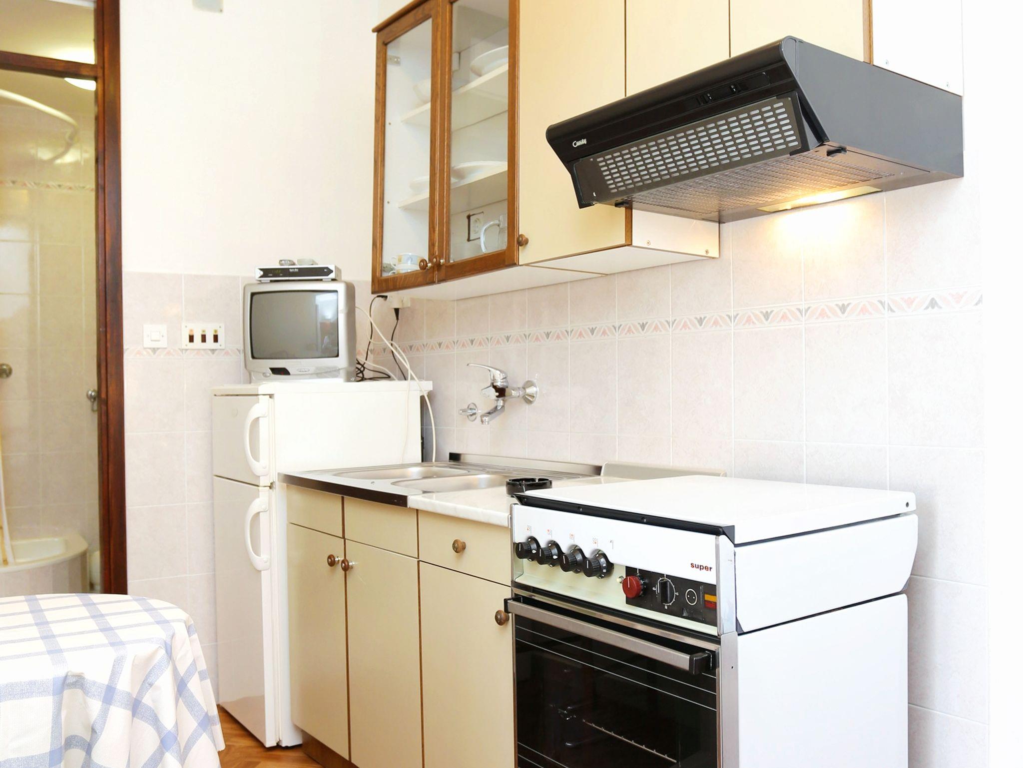 Studio bietet Platz für 2 Gäste. Die Betten sind in Schlafzimmern, die es 1 gibt, innerhalb einer Gesamtfläche von 13m2, angeordnet. Die Gäste haben eine eigene Terrasse zur Verfügung, auf der sie in warmen Sommernächten genießen können. Das Studio-Apartment bietet Meerblick. Es ist erlaubt, Speisen auf dem Gemeinschafts-Grill vorzubereiten. IM PREIS INBEGRIFFEN: Kurtaxe, Endreinigung, Parkplatz, Internet, Bootsanlegeplatz. VERBINDLICHE ZUSÄTZLICHE KOSTEN: Aufzahlung für Kurzaufenthalte (prozentualer Zuschlag pro Nächtigungsanzahl: 30% - 1, 20% - 2, 10% - 3). UNVERBINDLICHE ZUSÄTZLICHE KOSTEN: Wäschewaschen (5,00 € Waschen). Die Verfügbarkeit zusätzlicher Dienstleistungen in Ihrem reservierten Termin und die Preise derselben (falls nicht aufgeführt) müssen im Voraus überprüft werden. Zusätzliche Dienstleistungen die in der Zahlungsaufforderung nicht aufgeführt sind werden direkt beim Vermieter bezahlt, angenommen der Gast nutzt auch diese.