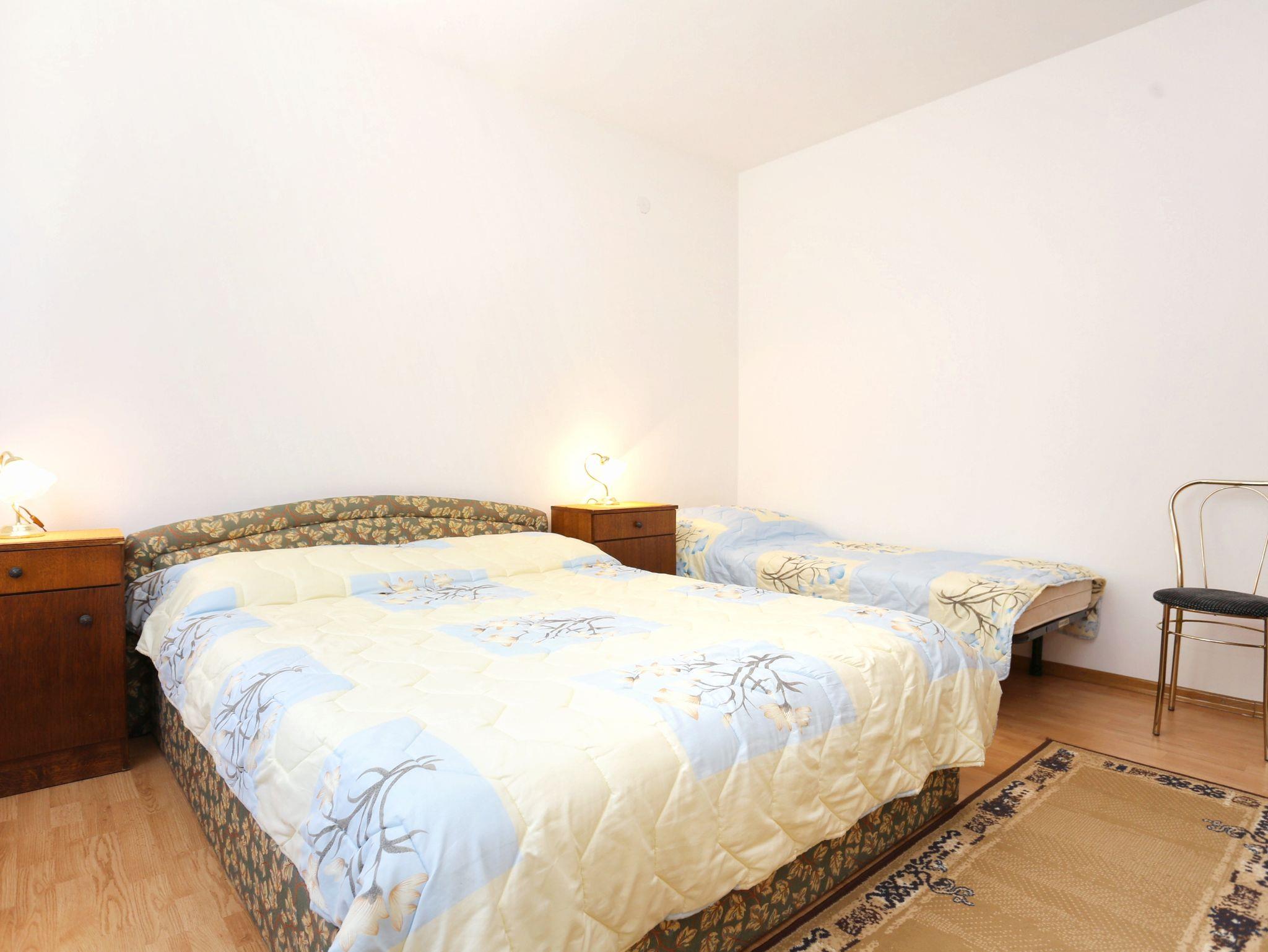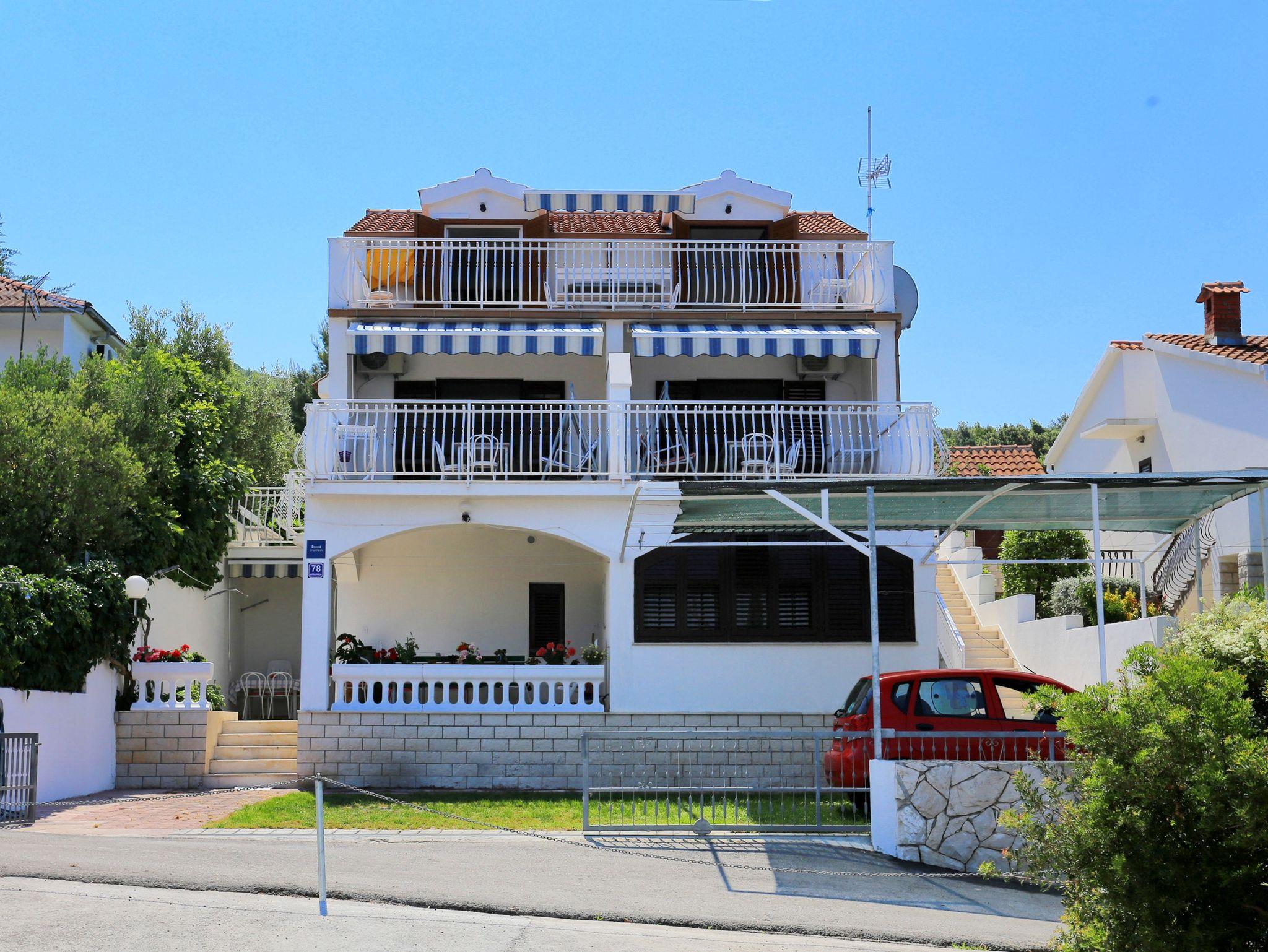 Ferienwohnung bietet Platz für 4 Gäste. Die Betten sind in Schlafzimmern, die es 1 gibt, und in Wohnzimmer, innerhalb einer Gesamtfläche von 34m2, angeordnet. Die Gäste haben eine eigene Terrasse zur Verfügung, auf der sie in warmen Sommernächten genießen können. Das Apartment bietet Meerblick. Es ist erlaubt, Speisen auf dem Gemeinschafts-Grill vorzubereiten. IM PREIS INBEGRIFFEN: Kurtaxe, Endreinigung, Parkplatz, Internet, Bootsanlegeplatz. VERBINDLICHE ZUSÄTZLICHE KOSTEN: Aufzahlung für Kurzaufenthalte (prozentualer Zuschlag pro Nächtigungsanzahl: 30% - 1, 20% - 2, 10% - 3). UNVERBINDLICHE ZUSÄTZLICHE KOSTEN: Klimatisierung (10,00 € pro Nacht), Wäschewaschen (5,00 € Waschen). Die Verfügbarkeit zusätzlicher Dienstleistungen in Ihrem reservierten Termin und die Preise derselben (falls nicht aufgeführt) müssen im Voraus überprüft werden. Zusätzliche Dienstleistungen die in der Zahlungsaufforderung nicht aufgeführt sind werden direkt beim Vermieter bezahlt, angenommen der Gast nutzt auch diese.