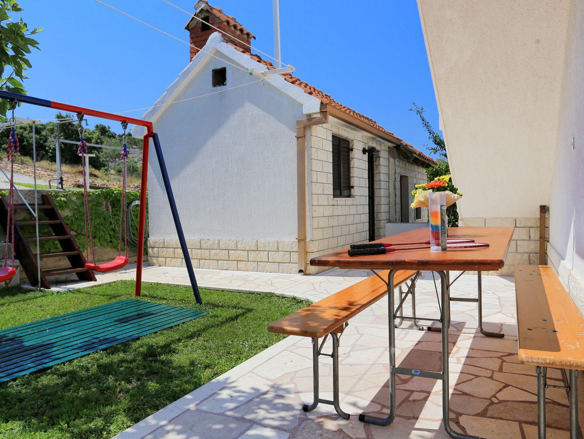 Umgebung des Objekts (Eingerichtet), Hof (100m2, Kinderbereich, Sitzbereich), Parkplatz (Anzahl der Parkplätze: 6, Entfernung vom Objekt: im Hof), Grill: gemeinsam, WiFi Internet, Wäschewaschen, Bootsanlegeplatz (Entfernung vom Objekt: 80 m, Bootsanlegeplatztyp: Boje)