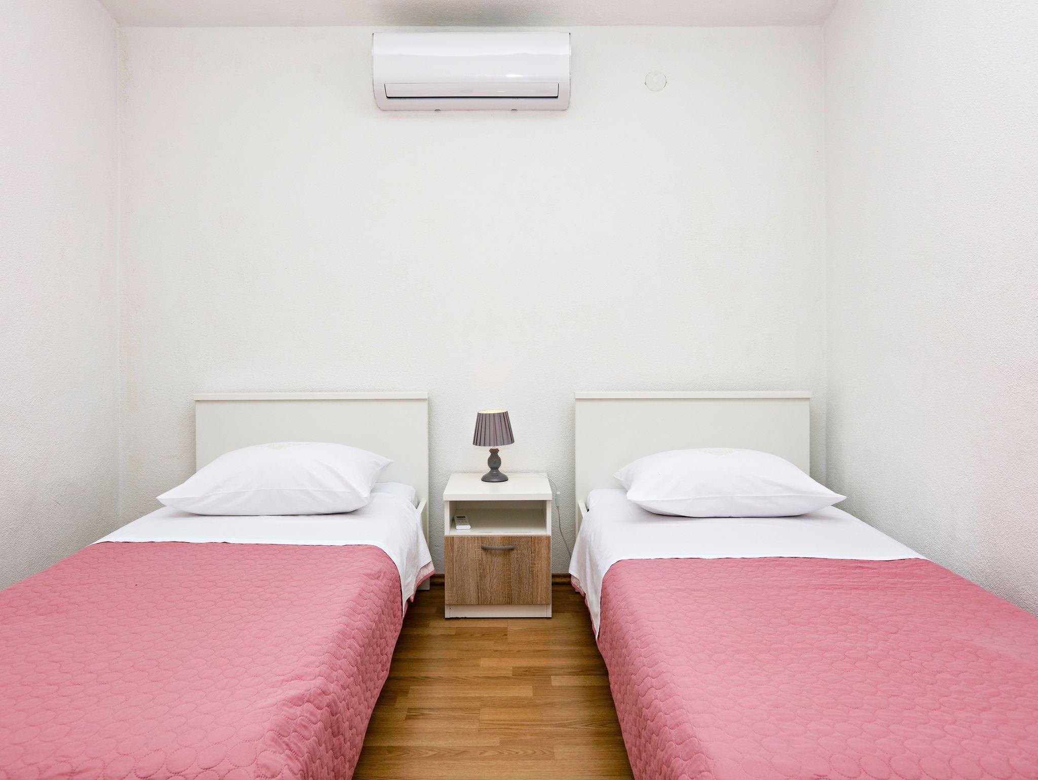 Ferienwohnung bietet Platz für 4 Gäste. Die Betten sind in Schlafzimmern, die es 2 gibt, innerhalb einer Gesamtfläche von 56m2, angeordnet. Die Gäste haben einen eigenen Balkon zur Verfügung, auf der sie in warmen Sommernächten genießen können. Das Apartment bietet Meerblick. Es ist erlaubt, Speisen auf dem Gemeinschafts-Grill vorzubereiten. IM PREIS INBEGRIFFEN: Kurtaxe, Endreinigung, Klimatisierung, Parkplatz, Internet, Wäschewaschen, Bügeleisen, Föhn. VERBINDLICHE ZUSÄTZLICHE KOSTEN: Aufzahlung für Kurzaufenthalte (prozentualer Zuschlag pro Nächtigungsanzahl: 30% - 1, 20% - 2, 10% - 3). Die Verfügbarkeit zusätzlicher Dienstleistungen in Ihrem reservierten Termin und die Preise derselben (falls nicht aufgeführt) müssen im Voraus überprüft werden. Zusätzliche Dienstleistungen die in der Zahlungsaufforderung nicht aufgeführt sind werden direkt beim Vermieter bezahlt, angenommen der Gast nutzt auch diese.