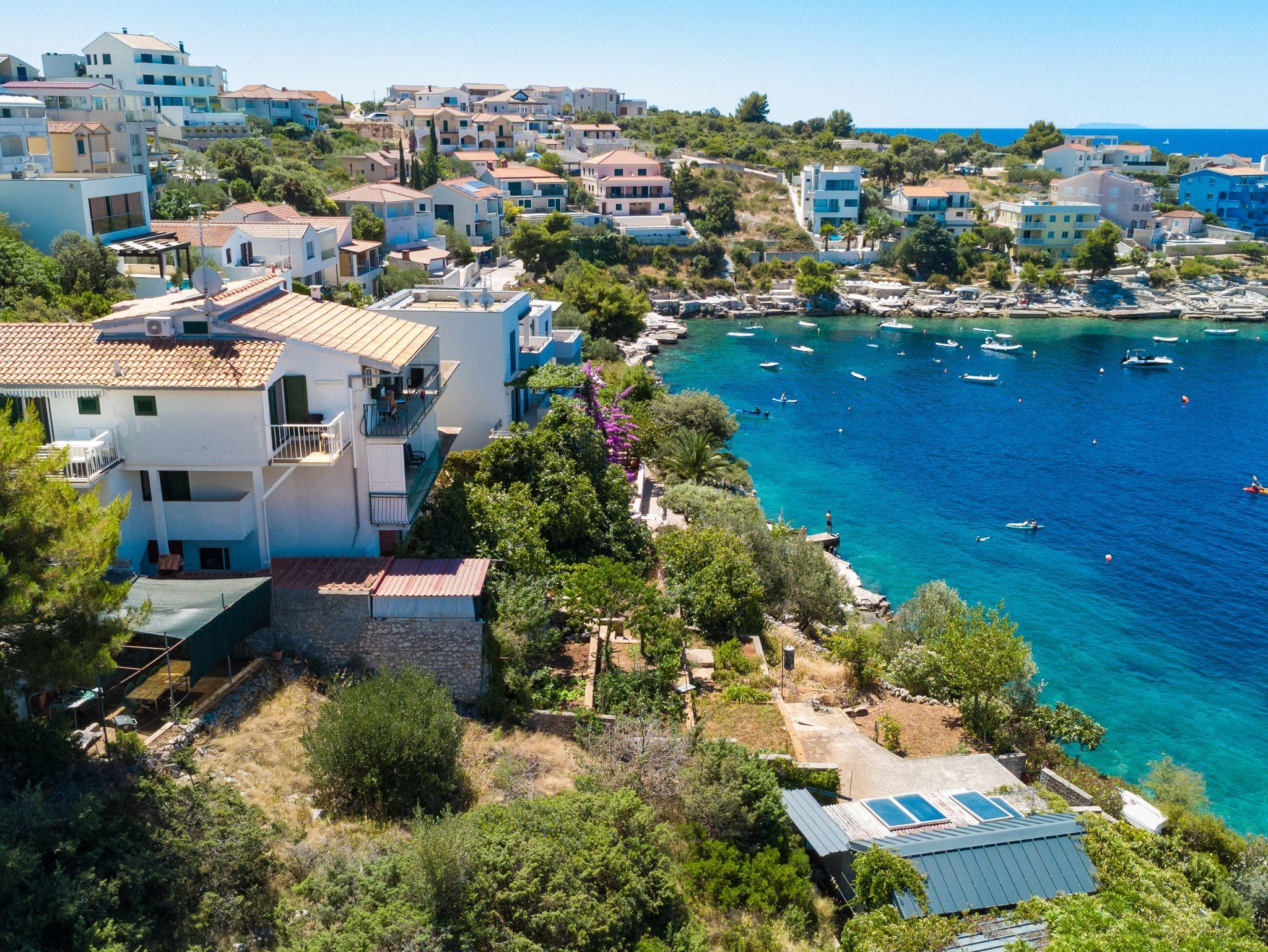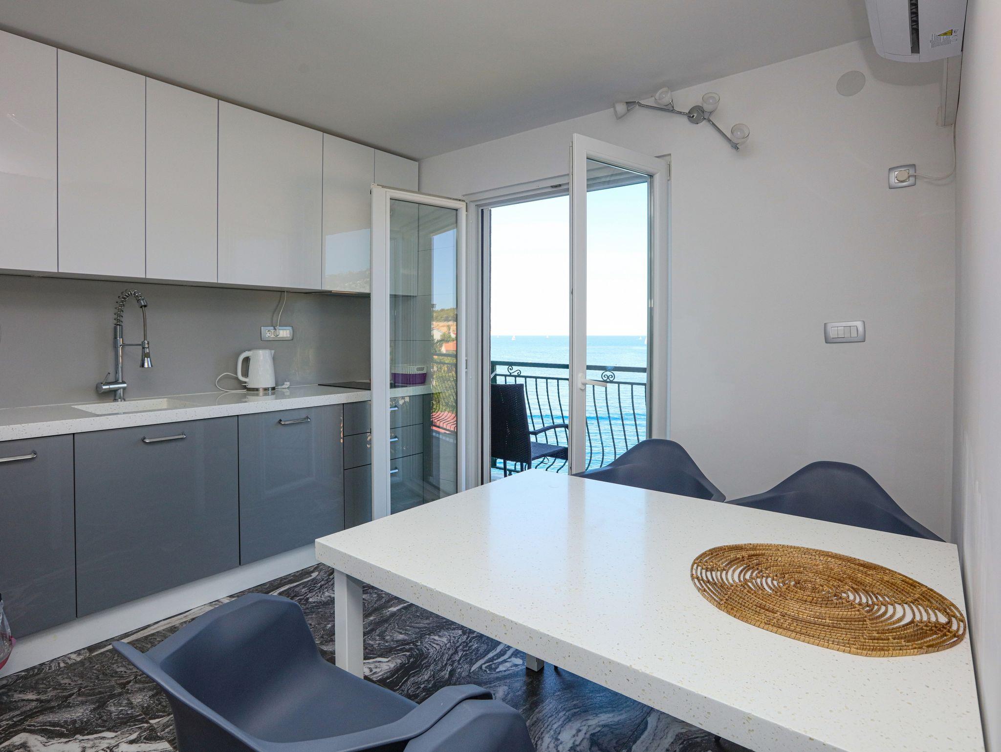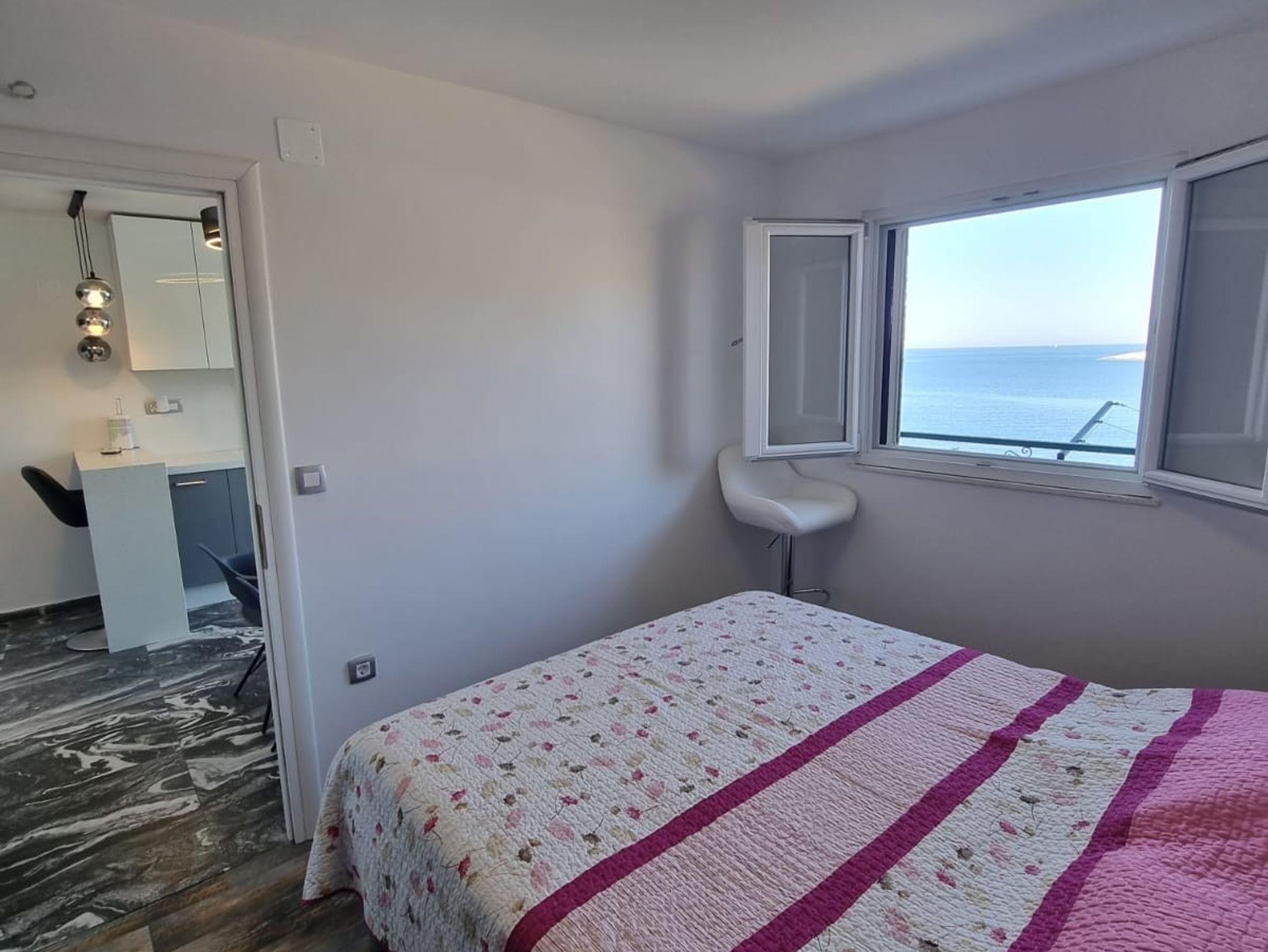 Ferienwohnung bietet Platz für 4 Gäste. Die Betten sind in Schlafzimmern, die es 2 gibt, innerhalb einer Gesamtfläche von 35m2, angeordnet. Die Gäste haben einen eigenen Balkon zur Verfügung, auf der sie in warmen Sommernächten genießen können. Das Apartment bietet Meerblick. Es ist erlaubt, Speisen auf dem Gemeinschafts-Grill vorzubereiten. IM PREIS INBEGRIFFEN: Kurtaxe, Endreinigung, Klimatisierung, Parkplatz, Internet, Bootsanlegeplatz, Kinderbett, Bügeleisen, Bügelbrett, tragbarer Grill, Sonnenschirm. VERBINDLICHE ZUSÄTZLICHE KOSTEN: Aufzahlung für Kurzaufenthalte (prozentualer Zuschlag pro Nächtigungsanzahl: 30% - 1, 20% - 2, 10% - 3). Die Verfügbarkeit zusätzlicher Dienstleistungen in Ihrem reservierten Termin und die Preise derselben (falls nicht aufgeführt) müssen im Voraus überprüft werden. Zusätzliche Dienstleistungen die in der Zahlungsaufforderung nicht aufgeführt sind werden direkt beim Vermieter bezahlt, angenommen der Gast nutzt auch diese. Ermäßigung auf den Grundpreis: Gratistag 14=13 (bei einem Aufenthalt von 14 Tagen oder mehr erhalten Sie einen Gratistag für den Aufenthalt bis 31.12.26).