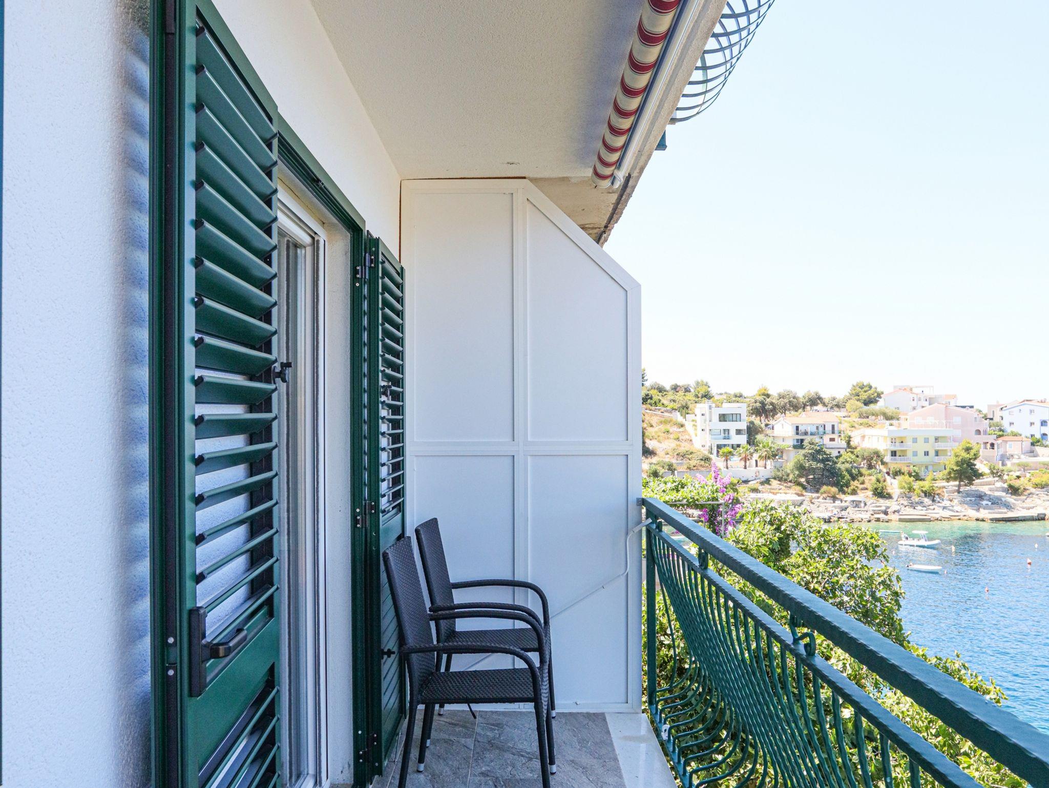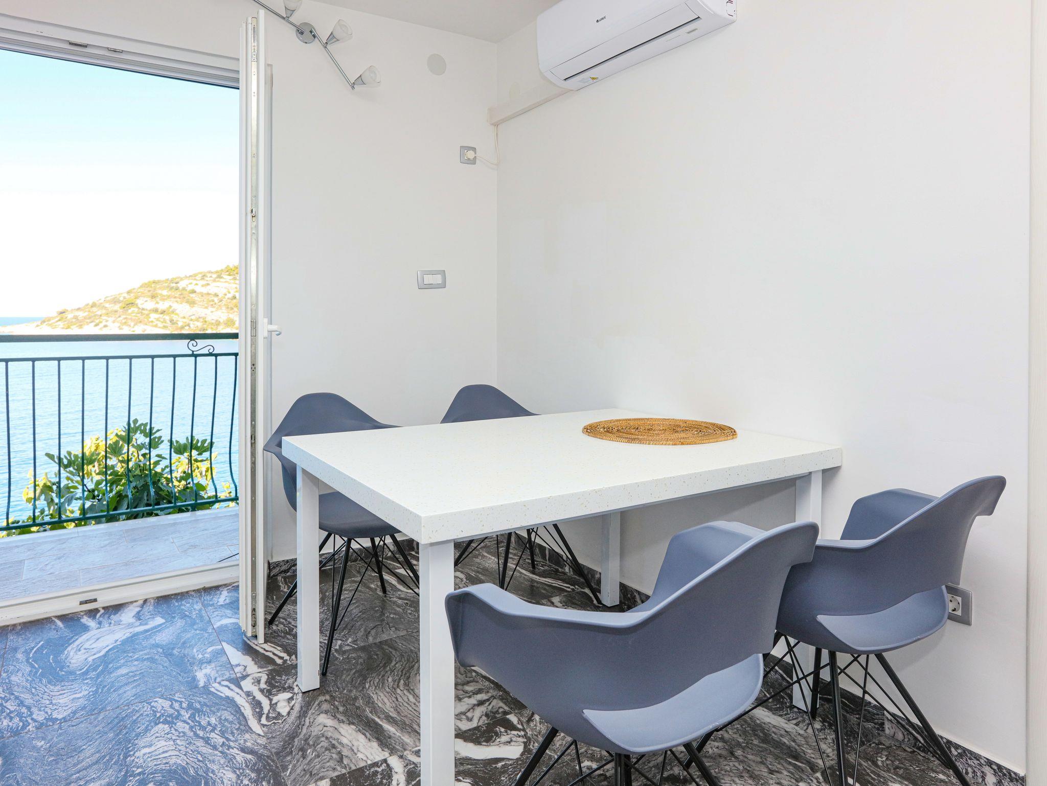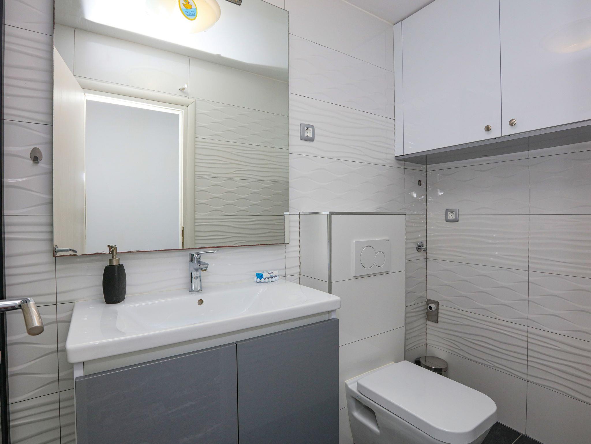 Ferienwohnung bietet Platz für 4 Gäste. Die Betten sind in Schlafzimmern, die es 2 gibt, innerhalb einer Gesamtfläche von 35m2, angeordnet. Die Gäste haben einen eigenen Balkon zur Verfügung, auf der sie in warmen Sommernächten genießen können. Das Apartment bietet Meerblick. Es ist erlaubt, Speisen auf dem Gemeinschafts-Grill vorzubereiten. IM PREIS INBEGRIFFEN: Kurtaxe, Endreinigung, Klimatisierung, Parkplatz, Internet, Bootsanlegeplatz, Kinderbett, Bügeleisen, Bügelbrett, tragbarer Grill, Sonnenschirm. VERBINDLICHE ZUSÄTZLICHE KOSTEN: Aufzahlung für Kurzaufenthalte (prozentualer Zuschlag pro Nächtigungsanzahl: 30% - 1, 20% - 2, 10% - 3). Die Verfügbarkeit zusätzlicher Dienstleistungen in Ihrem reservierten Termin und die Preise derselben (falls nicht aufgeführt) müssen im Voraus überprüft werden. Zusätzliche Dienstleistungen die in der Zahlungsaufforderung nicht aufgeführt sind werden direkt beim Vermieter bezahlt, angenommen der Gast nutzt auch diese. Ermäßigung auf den Grundpreis: Gratistag 14=13 (bei einem Aufenthalt von 14 Tagen oder mehr erhalten Sie einen Gratistag für den Aufenthalt bis 31.12.26).