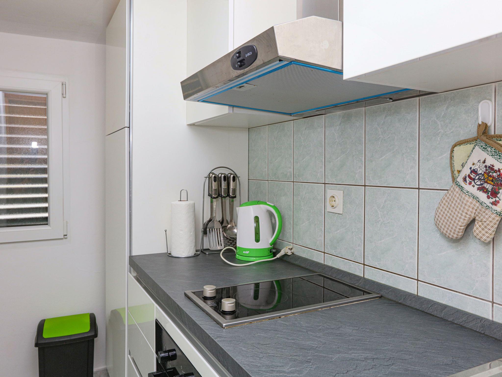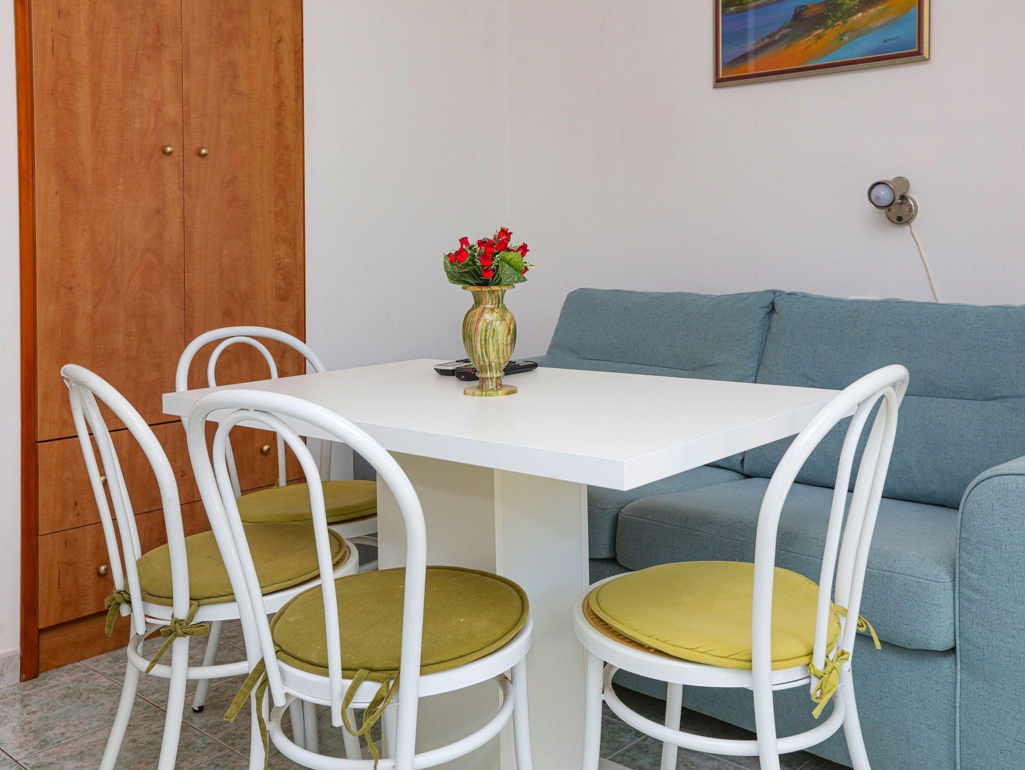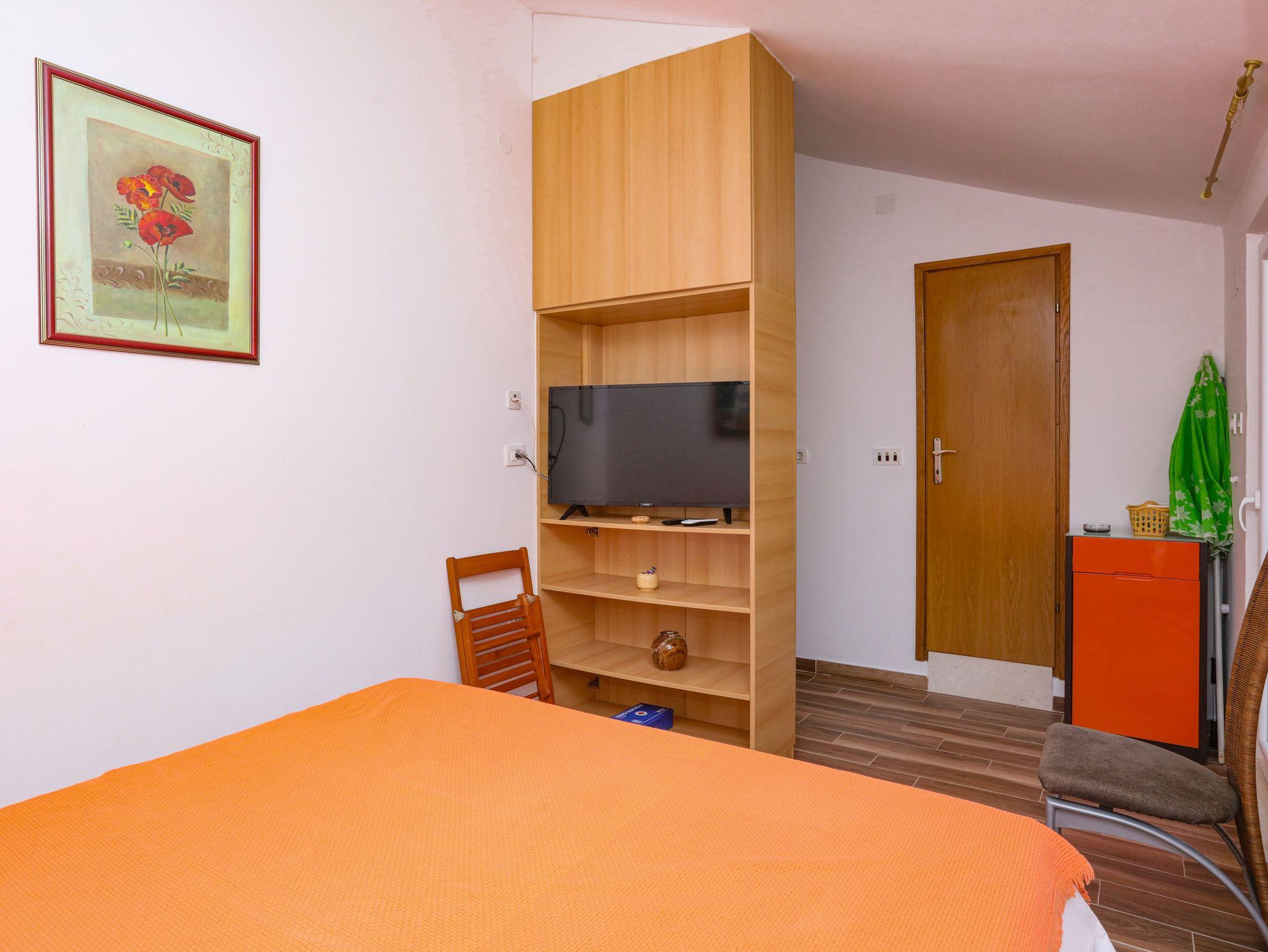 Ferienwohnung bietet Platz für 4 Gäste. Die Betten sind in Schlafzimmern, die es 1 gibt, und in Esszimmer, innerhalb einer Gesamtfläche von 28m2, angeordnet. Die Gäste haben eine eigene Terrasse zur Verfügung, auf der sie in warmen Sommernächten genießen können. Das Apartment bietet Meerblick. Es ist erlaubt, Speisen auf dem Gemeinschafts-Grill vorzubereiten. IM PREIS INBEGRIFFEN: Kurtaxe, Endreinigung, Klimatisierung, Parkplatz, Internet, Bootsanlegeplatz, Kinderbett, Bügeleisen, Bügelbrett, tragbarer Grill, Sonnenschirm. VERBINDLICHE ZUSÄTZLICHE KOSTEN: Aufzahlung für Kurzaufenthalte (prozentualer Zuschlag pro Nächtigungsanzahl: 30% - 1, 20% - 2, 10% - 3). Die Verfügbarkeit zusätzlicher Dienstleistungen in Ihrem reservierten Termin und die Preise derselben (falls nicht aufgeführt) müssen im Voraus überprüft werden. Zusätzliche Dienstleistungen die in der Zahlungsaufforderung nicht aufgeführt sind werden direkt beim Vermieter bezahlt, angenommen der Gast nutzt auch diese. Ermäßigung auf den Grundpreis: Gratistag 14=13 (bei einem Aufenthalt von 14 Tagen oder mehr erhalten Sie einen Gratistag für den Aufenthalt bis 31.12.26).