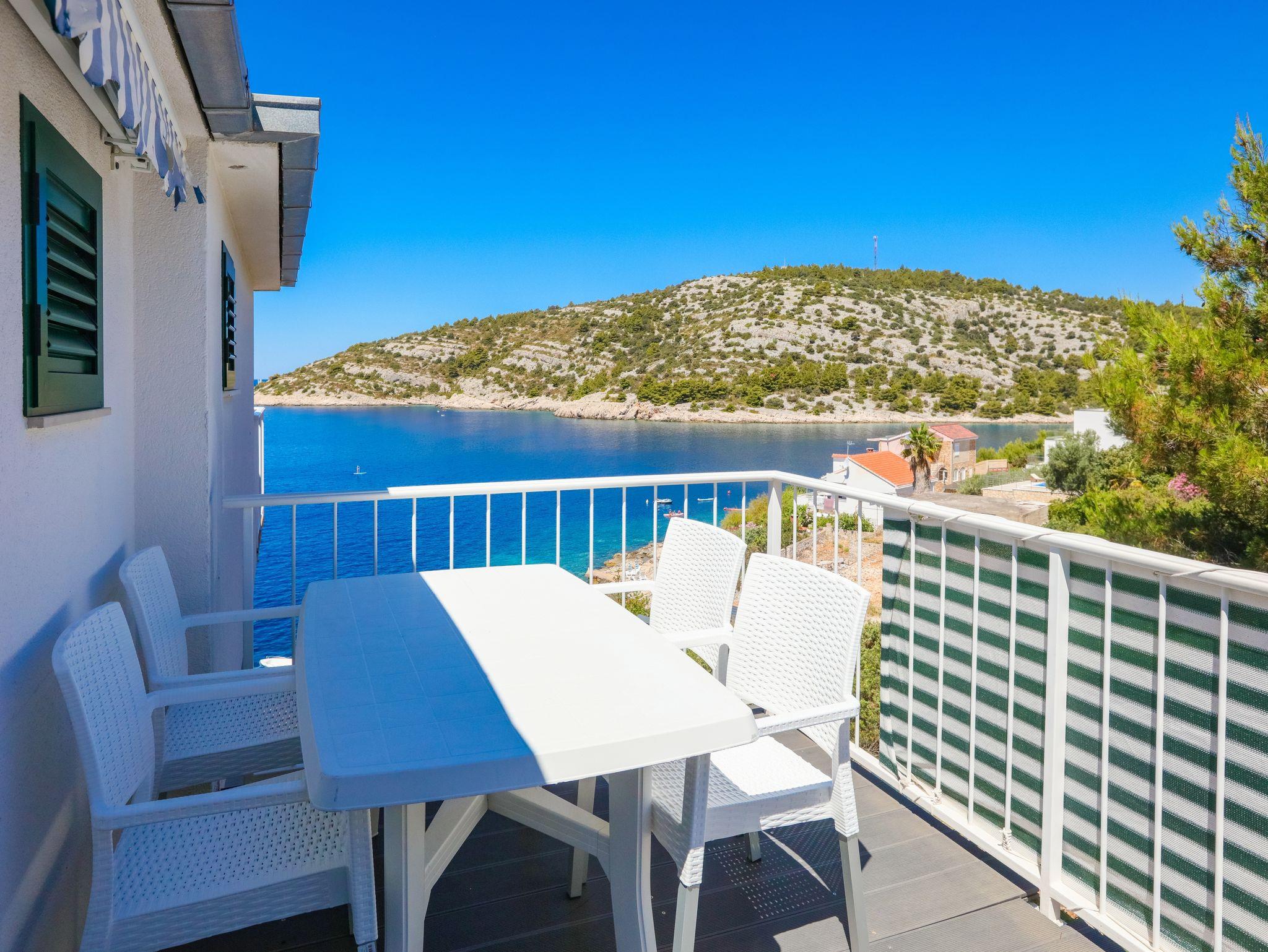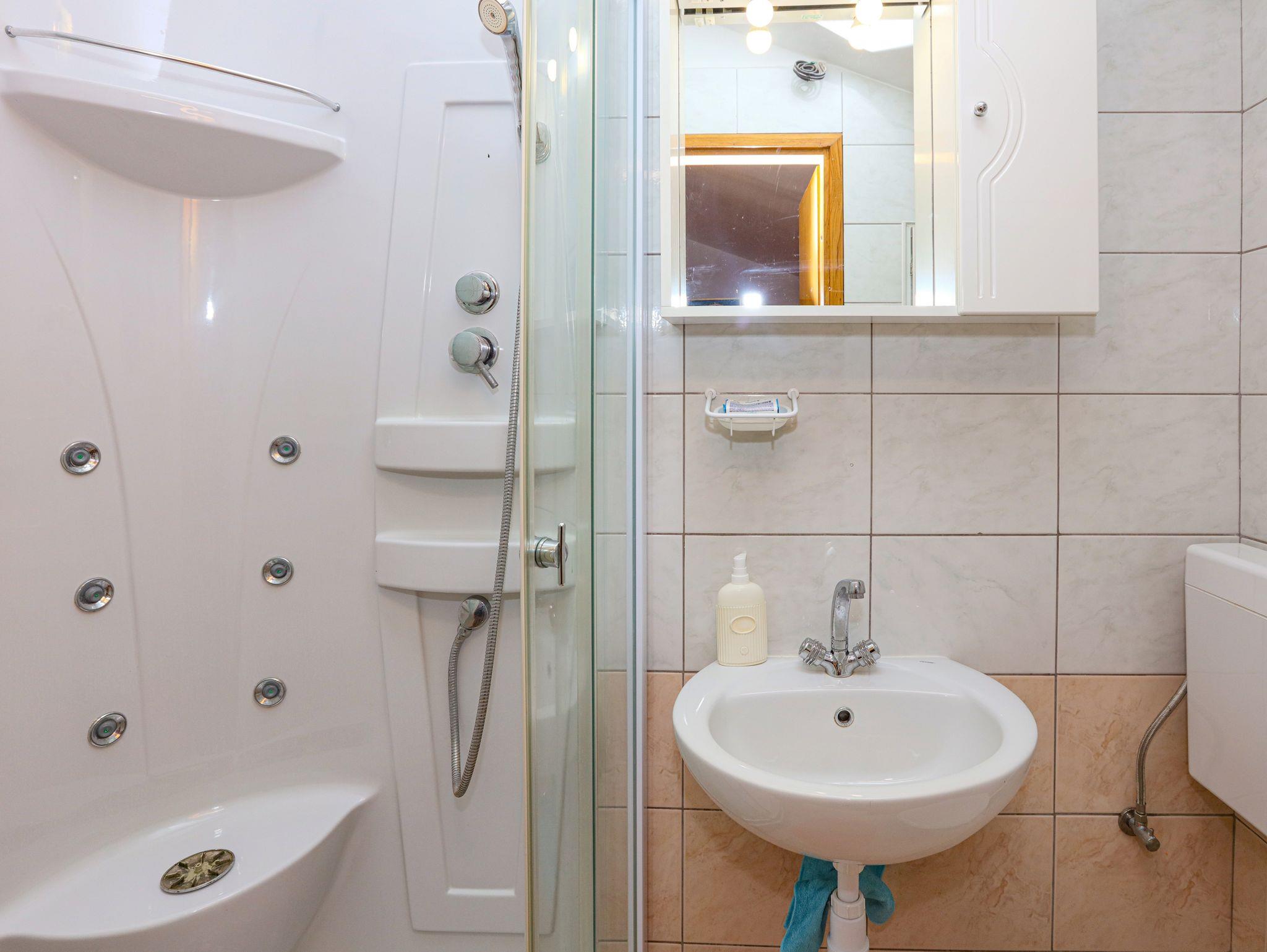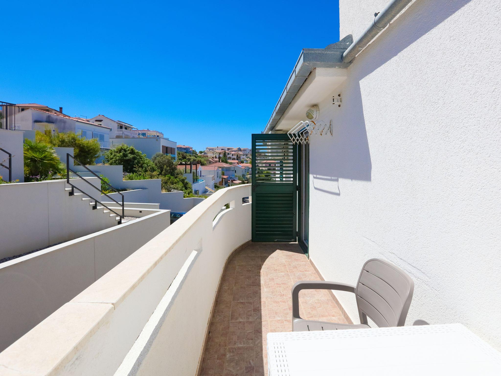 Ferienwohnung bietet Platz für 4 Gäste. Die Betten sind in Schlafzimmern, die es 1 gibt, und in Esszimmer, innerhalb einer Gesamtfläche von 28m2, angeordnet. Die Gäste haben eine eigene Terrasse zur Verfügung, auf der sie in warmen Sommernächten genießen können. Das Apartment bietet Meerblick. Es ist erlaubt, Speisen auf dem Gemeinschafts-Grill vorzubereiten. IM PREIS INBEGRIFFEN: Kurtaxe, Endreinigung, Klimatisierung, Parkplatz, Internet, Bootsanlegeplatz, Kinderbett, Bügeleisen, Bügelbrett, tragbarer Grill, Sonnenschirm. VERBINDLICHE ZUSÄTZLICHE KOSTEN: Aufzahlung für Kurzaufenthalte (prozentualer Zuschlag pro Nächtigungsanzahl: 30% - 1, 20% - 2, 10% - 3). Die Verfügbarkeit zusätzlicher Dienstleistungen in Ihrem reservierten Termin und die Preise derselben (falls nicht aufgeführt) müssen im Voraus überprüft werden. Zusätzliche Dienstleistungen die in der Zahlungsaufforderung nicht aufgeführt sind werden direkt beim Vermieter bezahlt, angenommen der Gast nutzt auch diese. Ermäßigung auf den Grundpreis: Gratistag 14=13 (bei einem Aufenthalt von 14 Tagen oder mehr erhalten Sie einen Gratistag für den Aufenthalt bis 31.12.26).