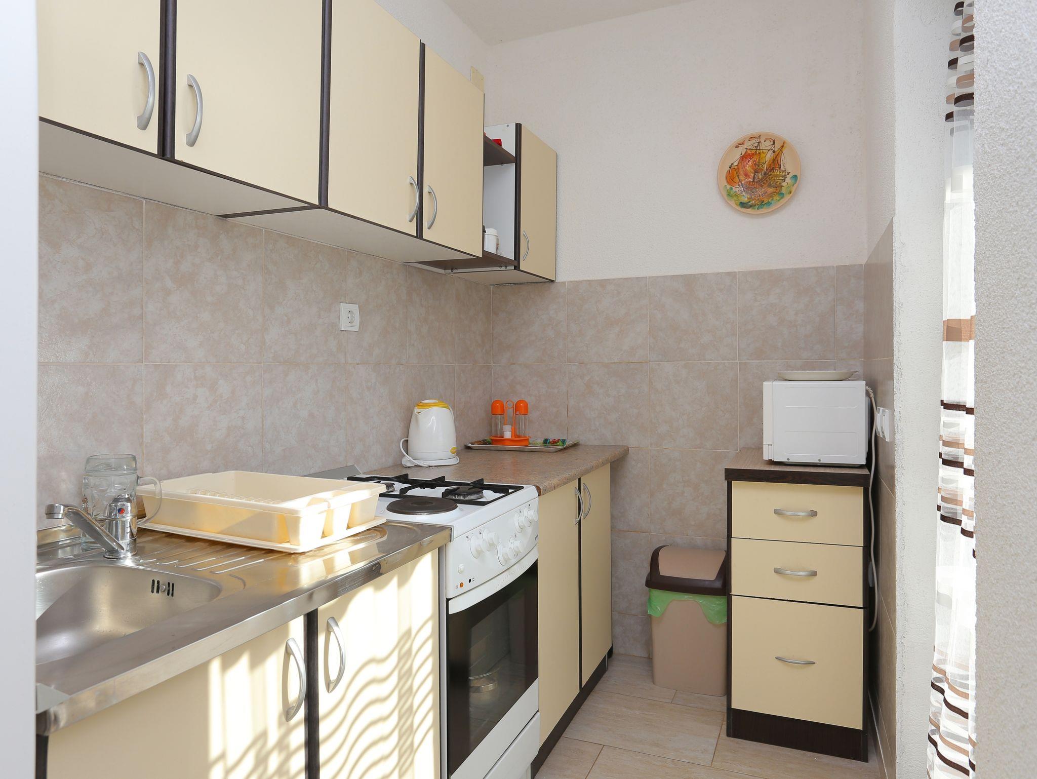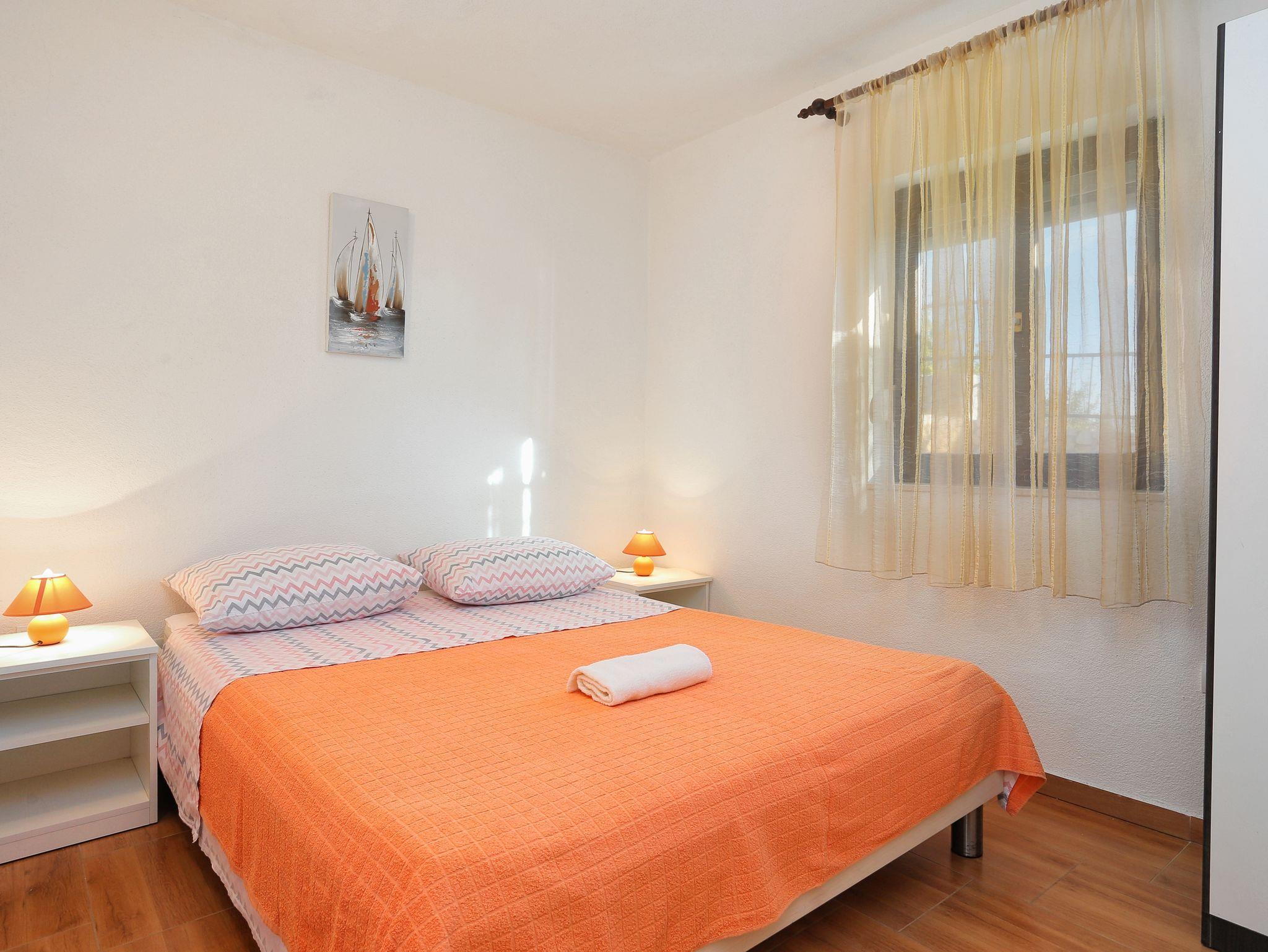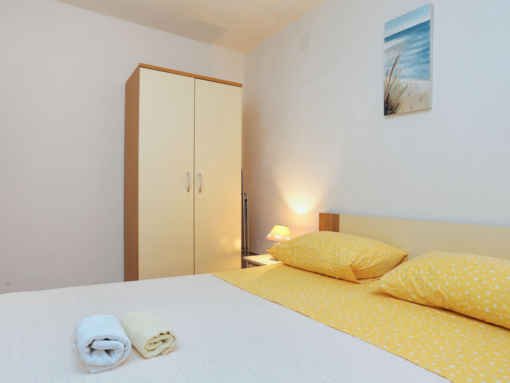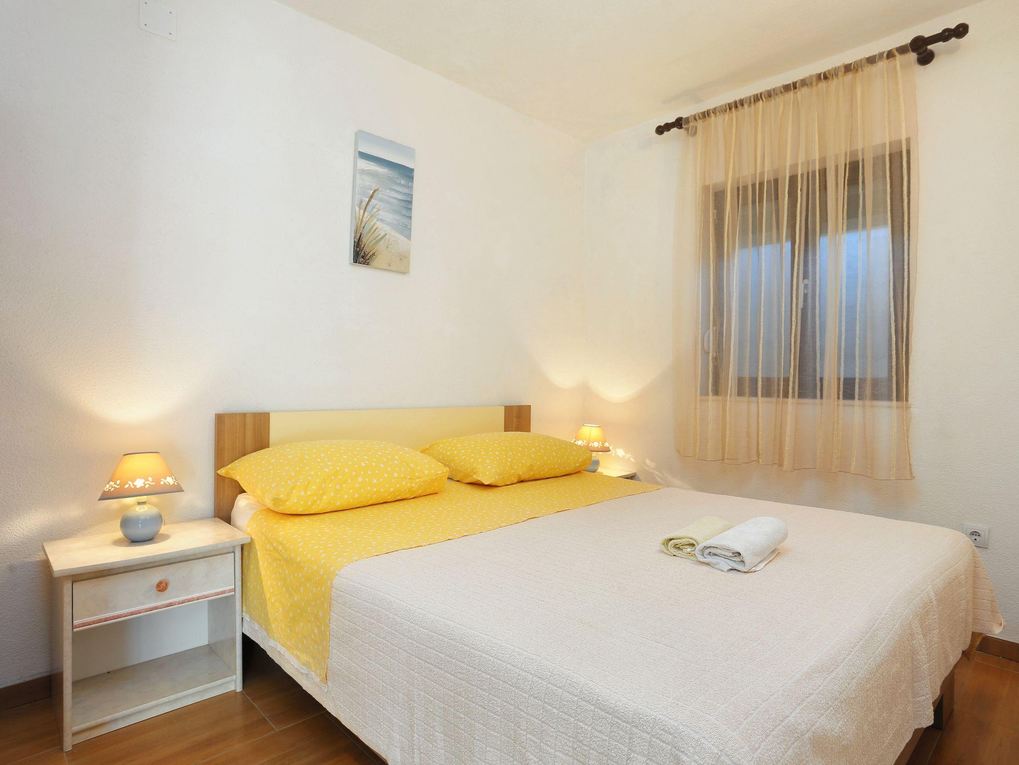 Ferienwohnung bietet Platz für 5 Gäste. Die Betten sind in Schlafzimmern, die es 2 gibt, und in Esszimmer, innerhalb einer Gesamtfläche von 46m2, angeordnet. Die Gäste haben eine eigene Terrasse zur Verfügung, auf der sie in warmen Sommernächten genießen können. Das Apartment bietet Meerblick. Für vollen Genuss und Entspannung gibt es einen privaten Grill für Gäste dieser Unterkunft. IM PREIS INBEGRIFFEN: Kurtaxe, Endreinigung, Klimatisierung, Parkplatz, Internet, Bügeleisen, Bügelbrett, Föhn. Die Verfügbarkeit zusätzlicher Dienstleistungen in Ihrem reservierten Termin und die Preise derselben (falls nicht aufgeführt) müssen im Voraus überprüft werden. Zusätzliche Dienstleistungen die in der Zahlungsaufforderung nicht aufgeführt sind werden direkt beim Vermieter bezahlt, angenommen der Gast nutzt auch diese.