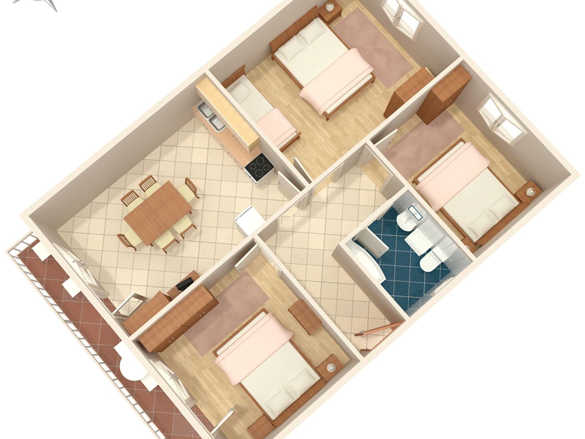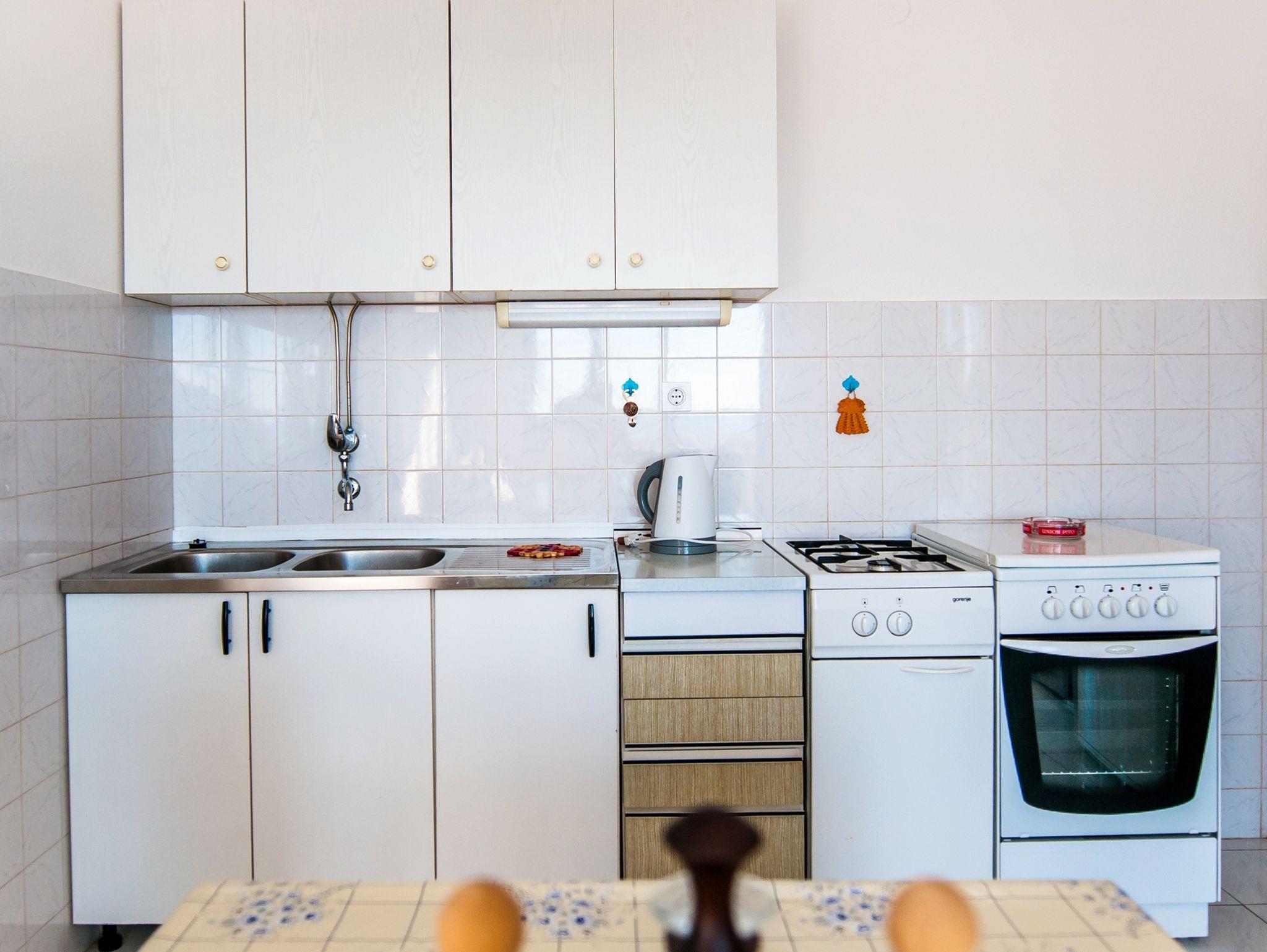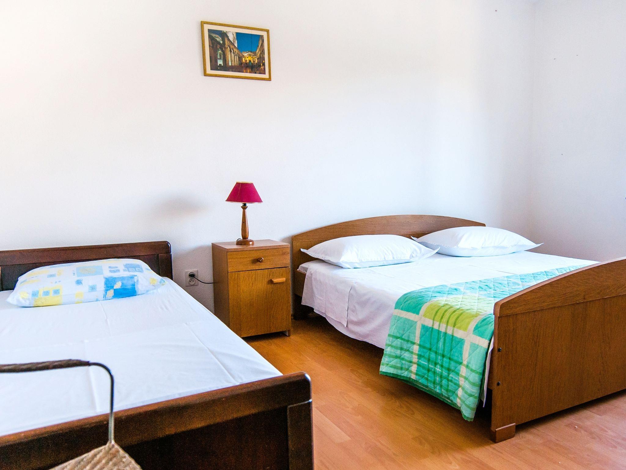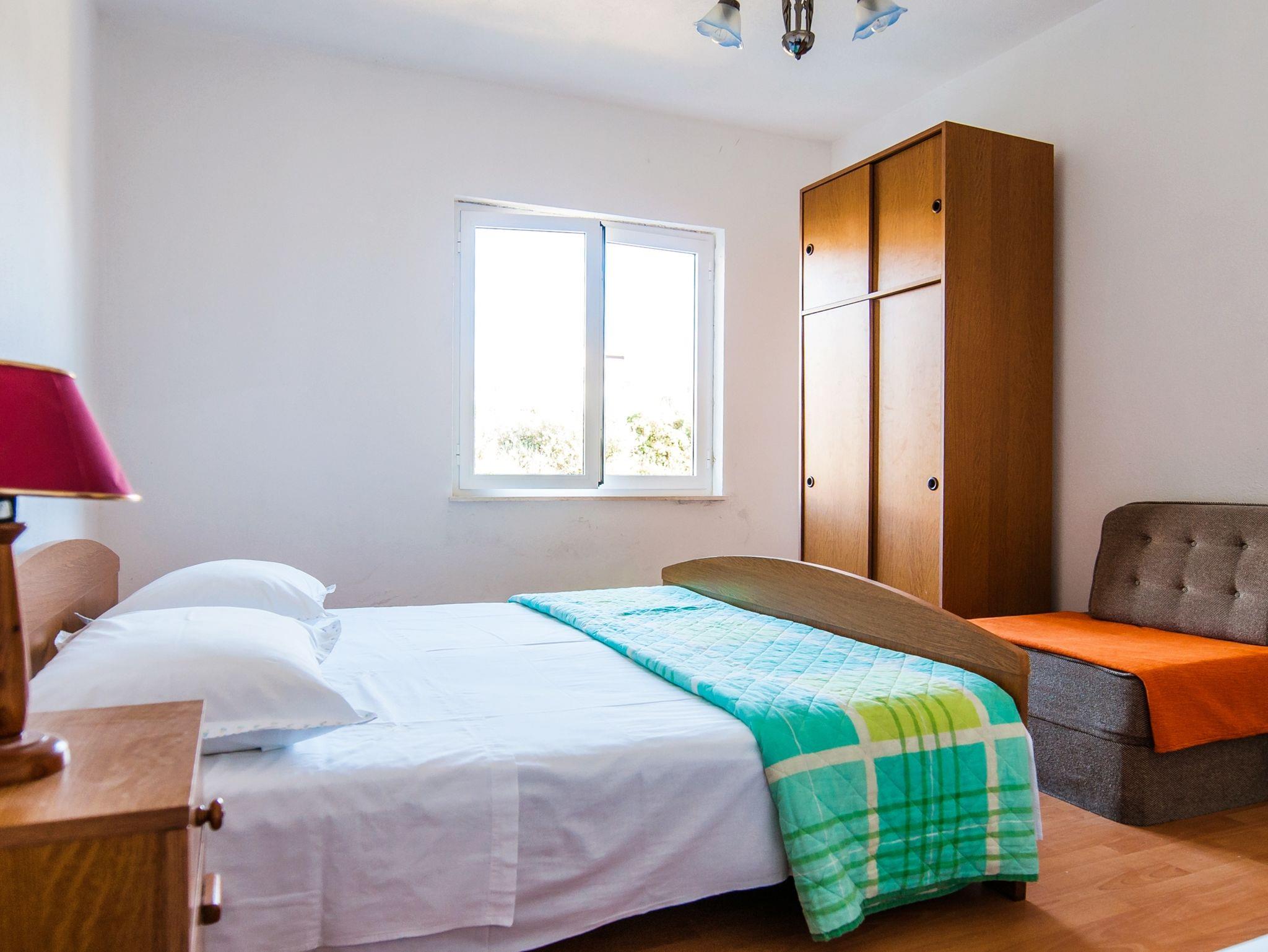 Ferienwohnung bietet Platz für 6 Gäste. Die Betten sind in Schlafzimmern, die es 3 gibt, innerhalb einer Gesamtfläche von 70m2, angeordnet. Die Gäste haben einen eigenen Balkon zur Verfügung, auf der sie in warmen Sommernächten genießen können. Das Apartment bietet Meerblick. Es ist erlaubt, Speisen auf dem Gemeinschafts-Grill vorzubereiten. IM PREIS INBEGRIFFEN: Kurtaxe, Endreinigung, Parkplatz, Internet, Bootsanlegeplatz, Bügeleisen. VERBINDLICHE ZUSÄTZLICHE KOSTEN: Aufzahlung für Kurzaufenthalte (prozentualer Zuschlag pro Nächtigungsanzahl: 30% - 1, 20% - 2, 10% - 3). Die Verfügbarkeit zusätzlicher Dienstleistungen in Ihrem reservierten Termin und die Preise derselben (falls nicht aufgeführt) müssen im Voraus überprüft werden. Zusätzliche Dienstleistungen die in der Zahlungsaufforderung nicht aufgeführt sind werden direkt beim Vermieter bezahlt, angenommen der Gast nutzt auch diese. Ermäßigung auf den Grundpreis: Gratistag 14=13 (bei einem Aufenthalt von 14 Tagen oder mehr erhalten Sie einen Gratistag für den Aufenthalt bis 31.12.26).