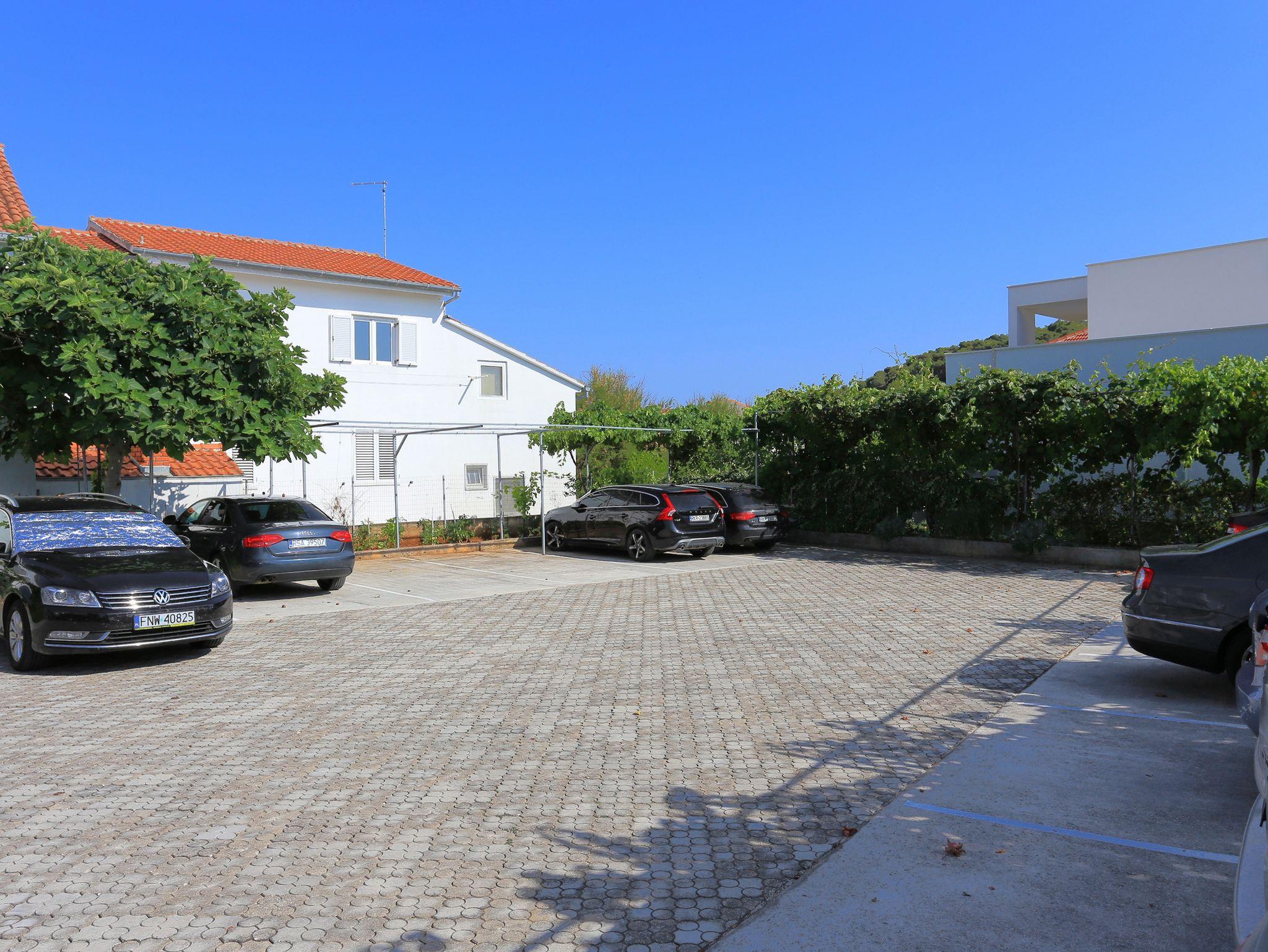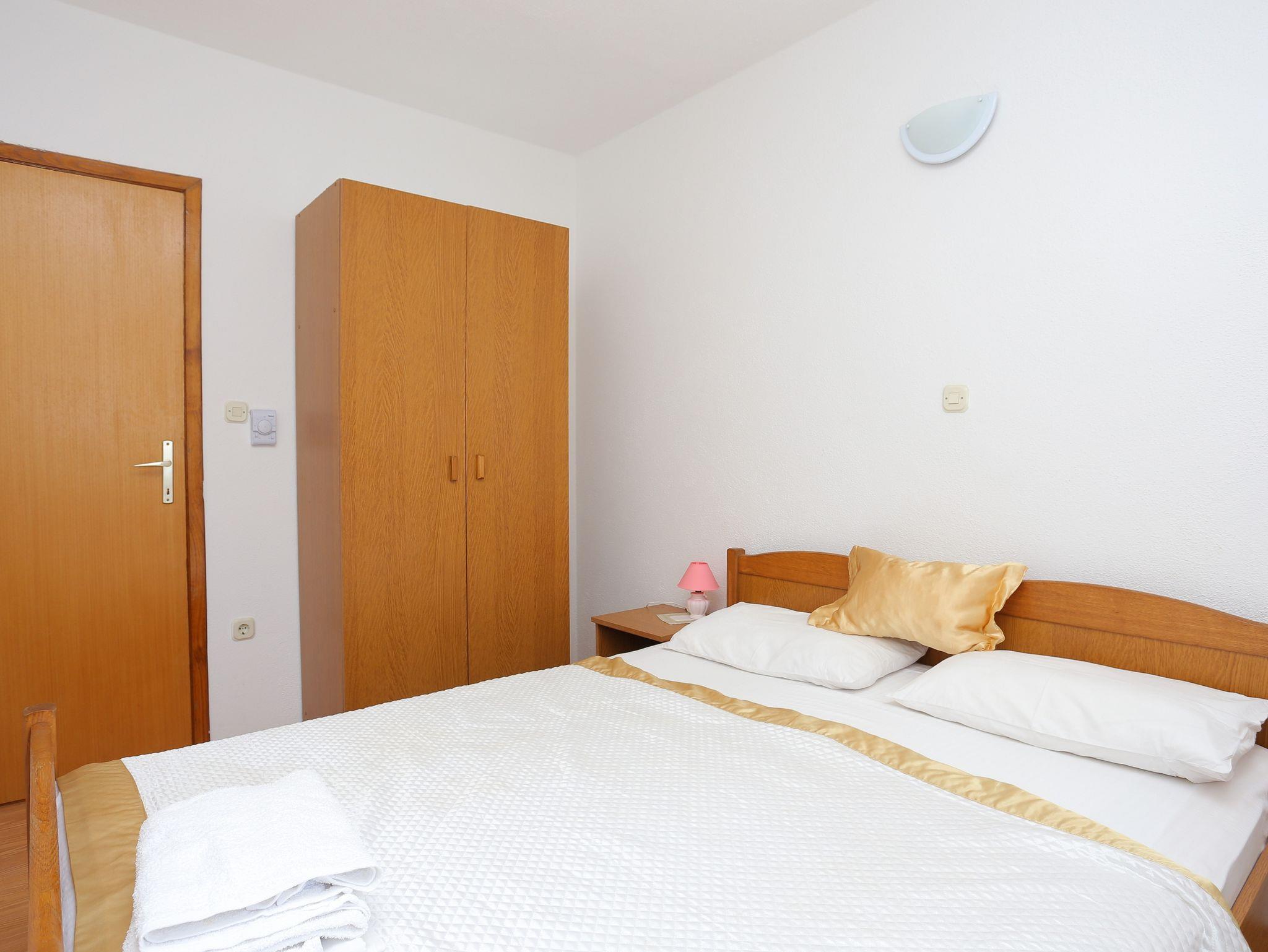Ferienwohnung bietet Platz für 6 Gäste. Die Betten sind in Schlafzimmern, die es 2 gibt, und in Esszimmer, innerhalb einer Gesamtfläche von 45m2, angeordnet. Die Gäste haben eine eigene Terrasse zur Verfügung, auf der sie in warmen Sommernächten genießen können. Das Apartment bietet Meerblick. Es ist erlaubt, Speisen auf dem Gemeinschafts-Grill vorzubereiten. IM PREIS INBEGRIFFEN: Kurtaxe, Endreinigung, Klimatisierung, Parkplatz, Internet, Kinderbett, Bügeleisen, Bügelbrett. VERBINDLICHE ZUSÄTZLICHE KOSTEN: Aufzahlung für Kurzaufenthalte (prozentualer Zuschlag pro Nächtigungsanzahl: 30% - 1, 20% - 2, 10% - 3). UNVERBINDLICHE ZUSÄTZLICHE KOSTEN: Wäschewaschen (1,00 € Waschen). Die Verfügbarkeit zusätzlicher Dienstleistungen in Ihrem reservierten Termin und die Preise derselben (falls nicht aufgeführt) müssen im Voraus überprüft werden. Zusätzliche Dienstleistungen die in der Zahlungsaufforderung nicht aufgeführt sind werden direkt beim Vermieter bezahlt, angenommen der Gast nutzt auch diese.
