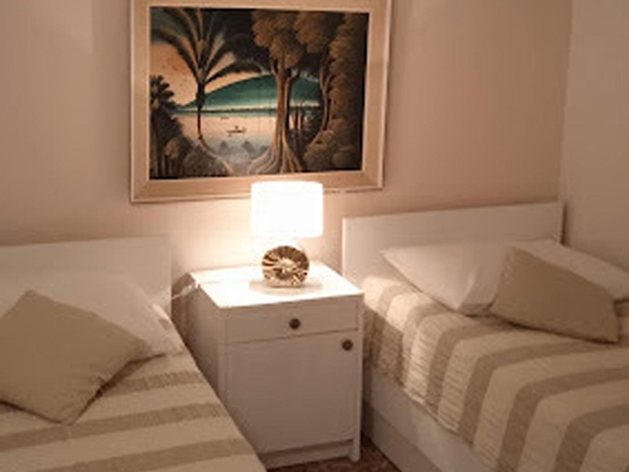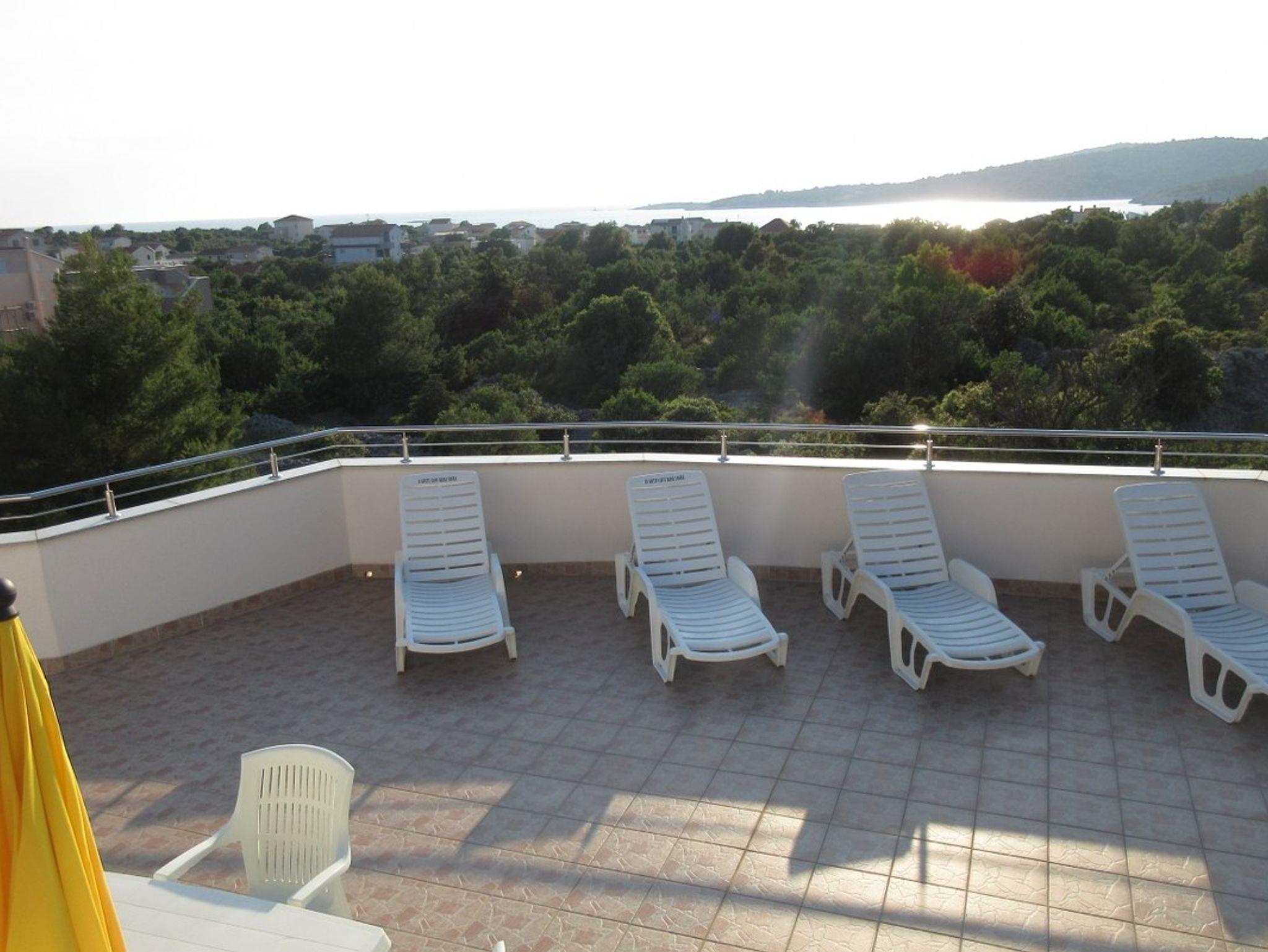 Ferienwohnung bietet Platz für 4 Gäste. Die Betten sind in Schlafzimmern, die es 2 gibt, innerhalb einer Gesamtfläche von 79m2, angeordnet. Die Gäste haben eine eigene Terrasse zur Verfügung, auf der sie in warmen Sommernächten genießen können. Das Apartment bietet Meerblick. Es ist erlaubt, Speisen auf dem Gemeinschafts-Grill vorzubereiten. IM PREIS INBEGRIFFEN: Kurtaxe, Endreinigung, Klimatisierung, Parkplatz, Internet, Sonnenschirm, Liegestühle. VERBINDLICHE ZUSÄTZLICHE KOSTEN: Aufzahlung für Kurzaufenthalte (prozentualer Zuschlag pro Nächtigungsanzahl: 30% - 1, 20% - 2, 10% - 3). Die Verfügbarkeit zusätzlicher Dienstleistungen in Ihrem reservierten Termin und die Preise derselben (falls nicht aufgeführt) müssen im Voraus überprüft werden. Zusätzliche Dienstleistungen die in der Zahlungsaufforderung nicht aufgeführt sind werden direkt beim Vermieter bezahlt, angenommen der Gast nutzt auch diese. Ermäßigung auf den Grundpreis: Gratistag 14=13 (bei einem Aufenthalt von 14 Tagen oder mehr erhalten Sie einen Gratistag für den Aufenthalt bis 31.12.26).