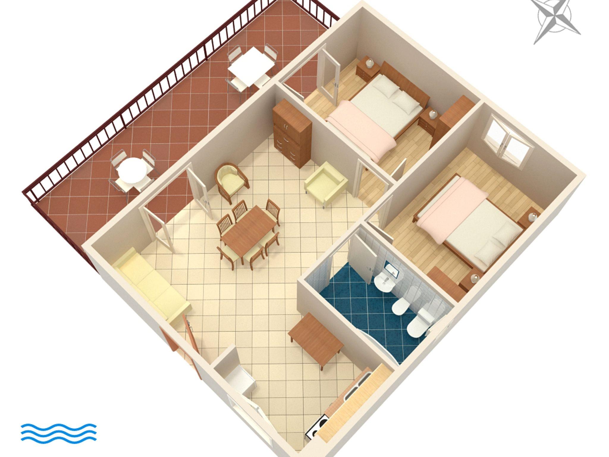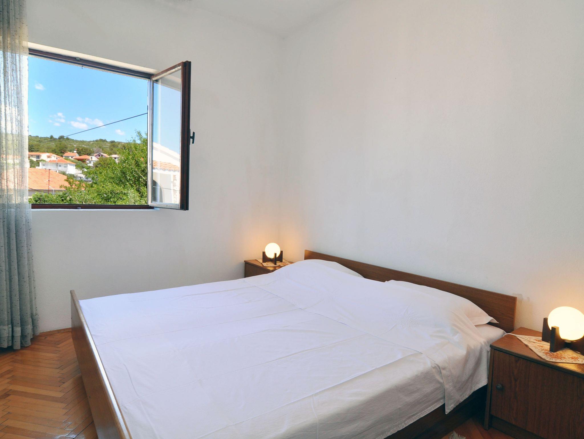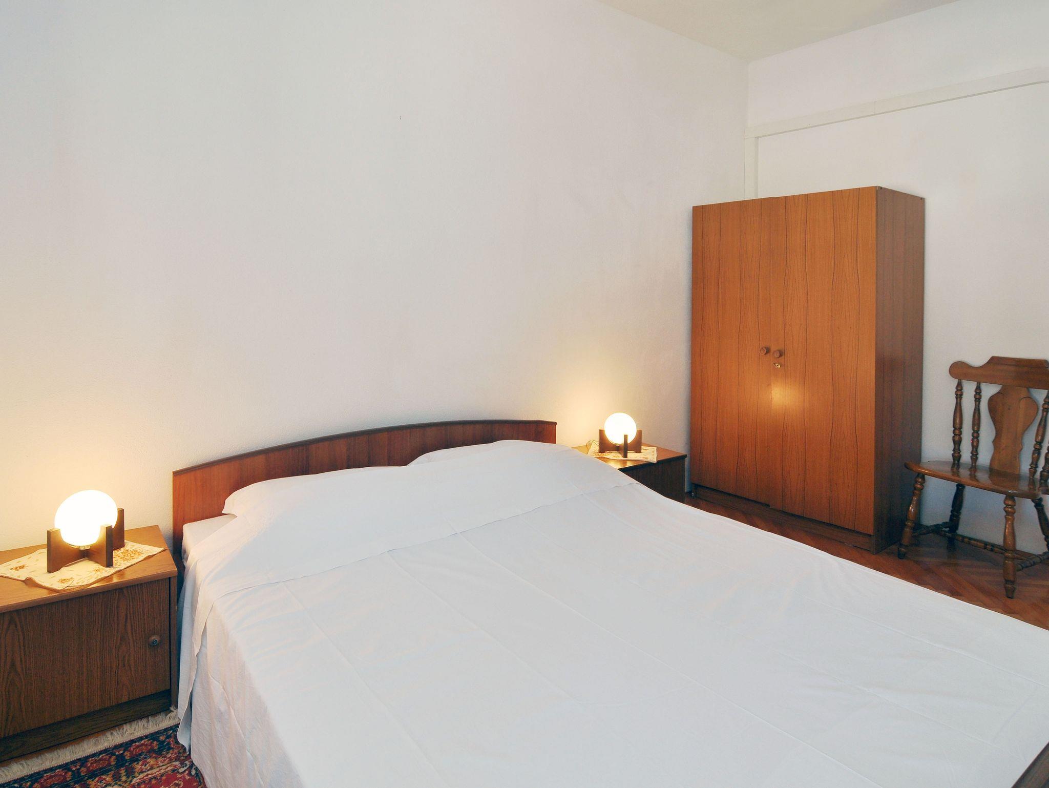 Ferienwohnung bietet Platz für 5 Gäste. Die Betten sind in Schlafzimmern, die es 2 gibt, und in Esszimmer, innerhalb einer Gesamtfläche von 53m2, angeordnet. Die Gäste haben eine eigene Terrasse zur Verfügung, auf der sie in warmen Sommernächten genießen können. Das Apartment bietet Meerblick. Es ist erlaubt, Speisen auf dem Gemeinschafts-Grill vorzubereiten. IM PREIS INBEGRIFFEN: Kurtaxe, Endreinigung, Klimatisierung, Parkplatz, Internet, Bügeleisen, Bügelbrett, Föhn. VERBINDLICHE ZUSÄTZLICHE KOSTEN: Aufzahlung für Kurzaufenthalte (prozentualer Zuschlag pro Nächtigungsanzahl: 30% - 1, 20% - 2, 10% - 3). Die Verfügbarkeit zusätzlicher Dienstleistungen in Ihrem reservierten Termin und die Preise derselben (falls nicht aufgeführt) müssen im Voraus überprüft werden. Zusätzliche Dienstleistungen die in der Zahlungsaufforderung nicht aufgeführt sind werden direkt beim Vermieter bezahlt, angenommen der Gast nutzt auch diese.