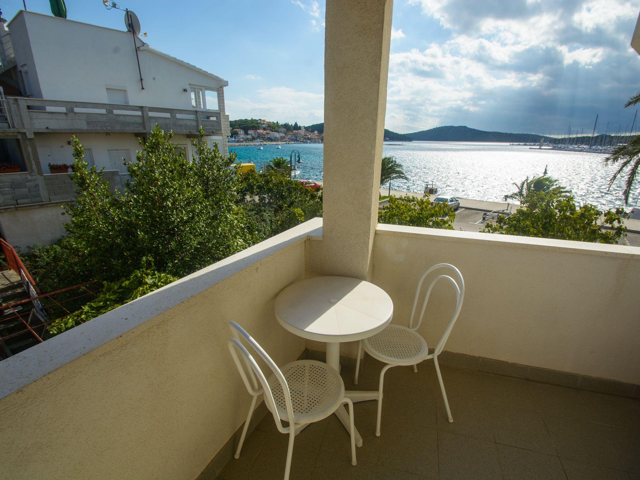 Ferienwohnung bietet Platz für 4 Gäste. Die Betten sind in Schlafzimmern, die es 1 gibt, innerhalb einer Gesamtfläche von 34m2, angeordnet. Die Gäste haben eine eigene Terrasse zur Verfügung, auf der sie in warmen Sommernächten genießen können. Das Apartment bietet Meerblick. IM PREIS INBEGRIFFEN: Kurtaxe, Endreinigung, Klimatisierung, Parkplatz, Internet, Kinderbett, Bügeleisen, Föhn. VERBINDLICHE ZUSÄTZLICHE KOSTEN: Aufzahlung für Kurzaufenthalte (prozentualer Zuschlag pro Nächtigungsanzahl: 30% - 1, 20% - 2, 10% - 3). UNVERBINDLICHE ZUSÄTZLICHE KOSTEN: Bootsanlegeplatz (20,00 € pro Nacht). Die Verfügbarkeit zusätzlicher Dienstleistungen in Ihrem reservierten Termin und die Preise derselben (falls nicht aufgeführt) müssen im Voraus überprüft werden. Zusätzliche Dienstleistungen die in der Zahlungsaufforderung nicht aufgeführt sind werden direkt beim Vermieter bezahlt, angenommen der Gast nutzt auch diese.