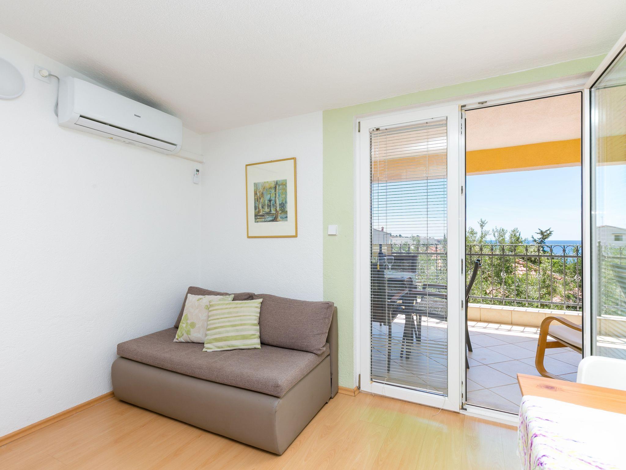 Ferienwohnung bietet Platz für 2 Gäste. Die Betten sind in Schlafzimmern, die es 1 gibt, innerhalb einer Gesamtfläche von 32m2, angeordnet. Die Gäste haben eine eigene Terrasse zur Verfügung, auf der sie in warmen Sommernächten genießen können. Das Apartment bietet Meerblick. Es ist erlaubt, Speisen auf dem Gemeinschafts-Grill vorzubereiten. IM PREIS INBEGRIFFEN: Kurtaxe, Endreinigung, Klimatisierung, Parkplatz, Internet, Kinderbett, Bügeleisen, Bügelbrett, Föhn, 2 Kinderbettchen (im Preis enthalten). VERBINDLICHE ZUSÄTZLICHE KOSTEN: Aufzahlung für Kurzaufenthalte (prozentualer Zuschlag pro Nächtigungsanzahl: 30% - 1, 20% - 2, 10% - 3). Die Verfügbarkeit zusätzlicher Dienstleistungen in Ihrem reservierten Termin und die Preise derselben (falls nicht aufgeführt) müssen im Voraus überprüft werden. Zusätzliche Dienstleistungen die in der Zahlungsaufforderung nicht aufgeführt sind werden direkt beim Vermieter bezahlt, angenommen der Gast nutzt auch diese.