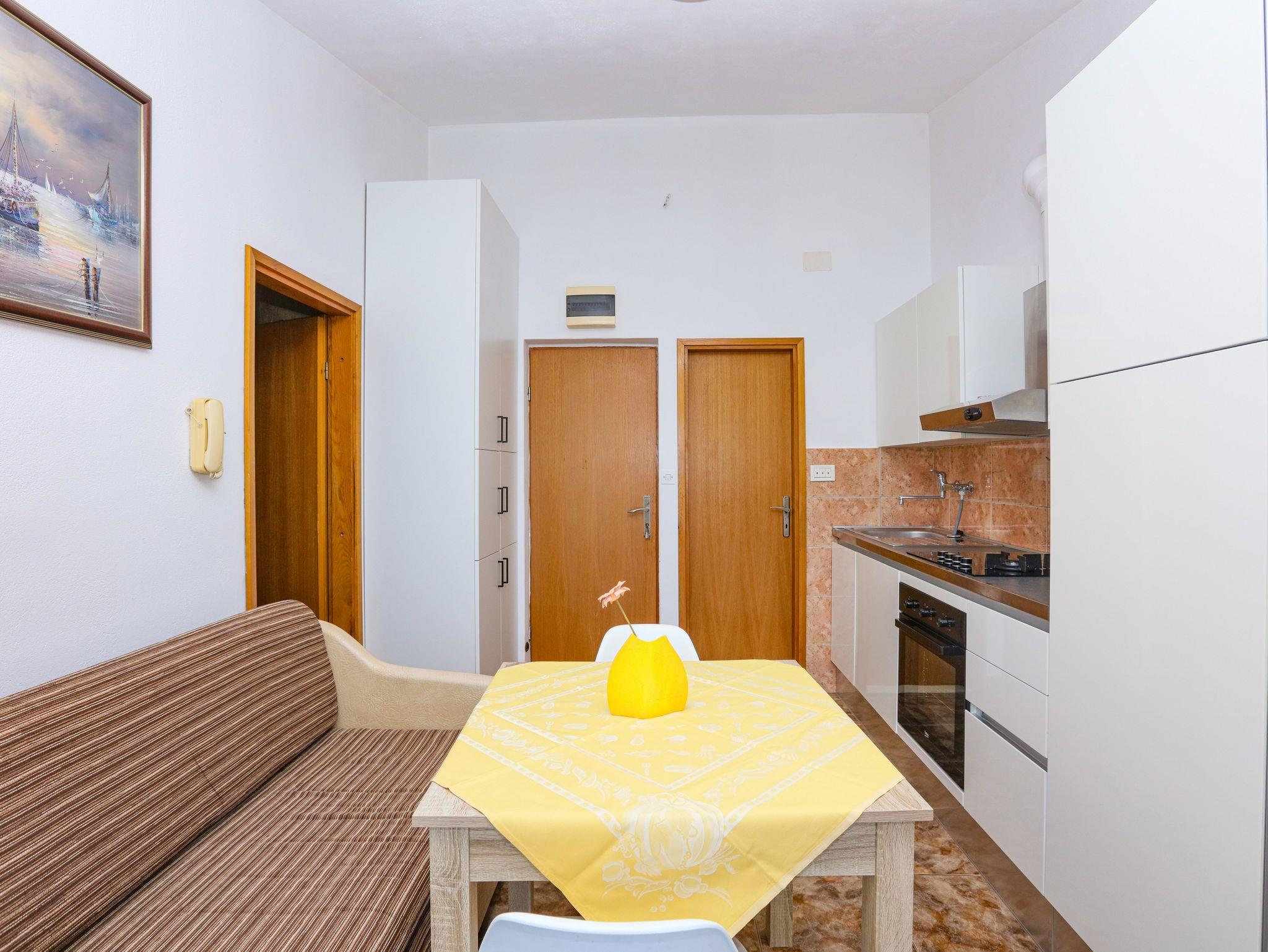 Ferienwohnung bietet Platz für 2 Gäste. Die Betten sind in Schlafzimmern, die es 1 gibt, innerhalb einer Gesamtfläche von 19m2, angeordnet. Die Gäste haben einen eigenen Balkon zur Verfügung, auf der sie in warmen Sommernächten genießen können. Das Apartment bietet Meerblick. Es ist erlaubt, Speisen auf dem Gemeinschafts-Grill vorzubereiten. IM PREIS INBEGRIFFEN: Kurtaxe, Endreinigung, Klimatisierung, Parkplatz, Internet, Bootsanlegeplatz, Kinderbett, Bügeleisen, Bügelbrett, tragbarer Grill, Sonnenschirm. VERBINDLICHE ZUSÄTZLICHE KOSTEN: Aufzahlung für Kurzaufenthalte (prozentualer Zuschlag pro Nächtigungsanzahl: 30% - 1, 20% - 2, 10% - 3). Die Verfügbarkeit zusätzlicher Dienstleistungen in Ihrem reservierten Termin und die Preise derselben (falls nicht aufgeführt) müssen im Voraus überprüft werden. Zusätzliche Dienstleistungen die in der Zahlungsaufforderung nicht aufgeführt sind werden direkt beim Vermieter bezahlt, angenommen der Gast nutzt auch diese. Ermäßigung auf den Grundpreis: Gratistag 14=13 (bei einem Aufenthalt von 14 Tagen oder mehr erhalten Sie einen Gratistag für den Aufenthalt bis 31.12.26).