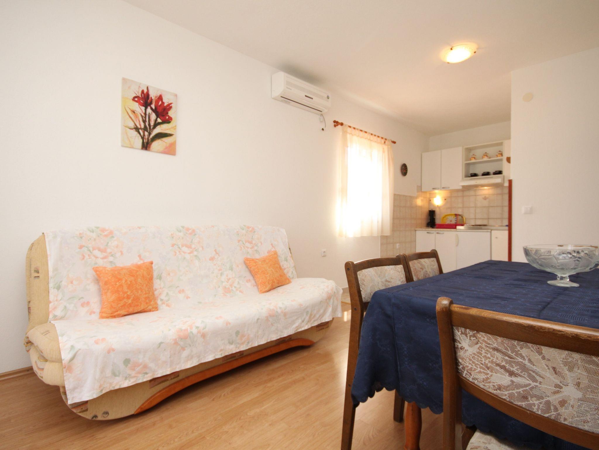 Ferienwohnung bietet Platz für 4 Gäste. Die Betten sind in Schlafzimmern, die es 1 gibt, und in Esszimmer, innerhalb einer Gesamtfläche von 38m2, angeordnet. Die Gäste haben einen eigenen Balkon zur Verfügung, auf der sie in warmen Sommernächten genießen können. Das Apartment bietet Meerblick. Es ist erlaubt, Speisen auf dem Gemeinschafts-Grill vorzubereiten. IM PREIS INBEGRIFFEN: Kurtaxe, Endreinigung, Klimatisierung, Parkplatz, Internet. VERBINDLICHE ZUSÄTZLICHE KOSTEN: Aufzahlung für Kurzaufenthalte (prozentualer Zuschlag pro Nächtigungsanzahl: 30% - 1, 20% - 2, 10% - 3). UNVERBINDLICHE ZUSÄTZLICHE KOSTEN: Zusatzbett (6,00 € pro Nacht). Die Verfügbarkeit zusätzlicher Dienstleistungen in Ihrem reservierten Termin und die Preise derselben (falls nicht aufgeführt) müssen im Voraus überprüft werden. Zusätzliche Dienstleistungen die in der Zahlungsaufforderung nicht aufgeführt sind werden direkt beim Vermieter bezahlt, angenommen der Gast nutzt auch diese.