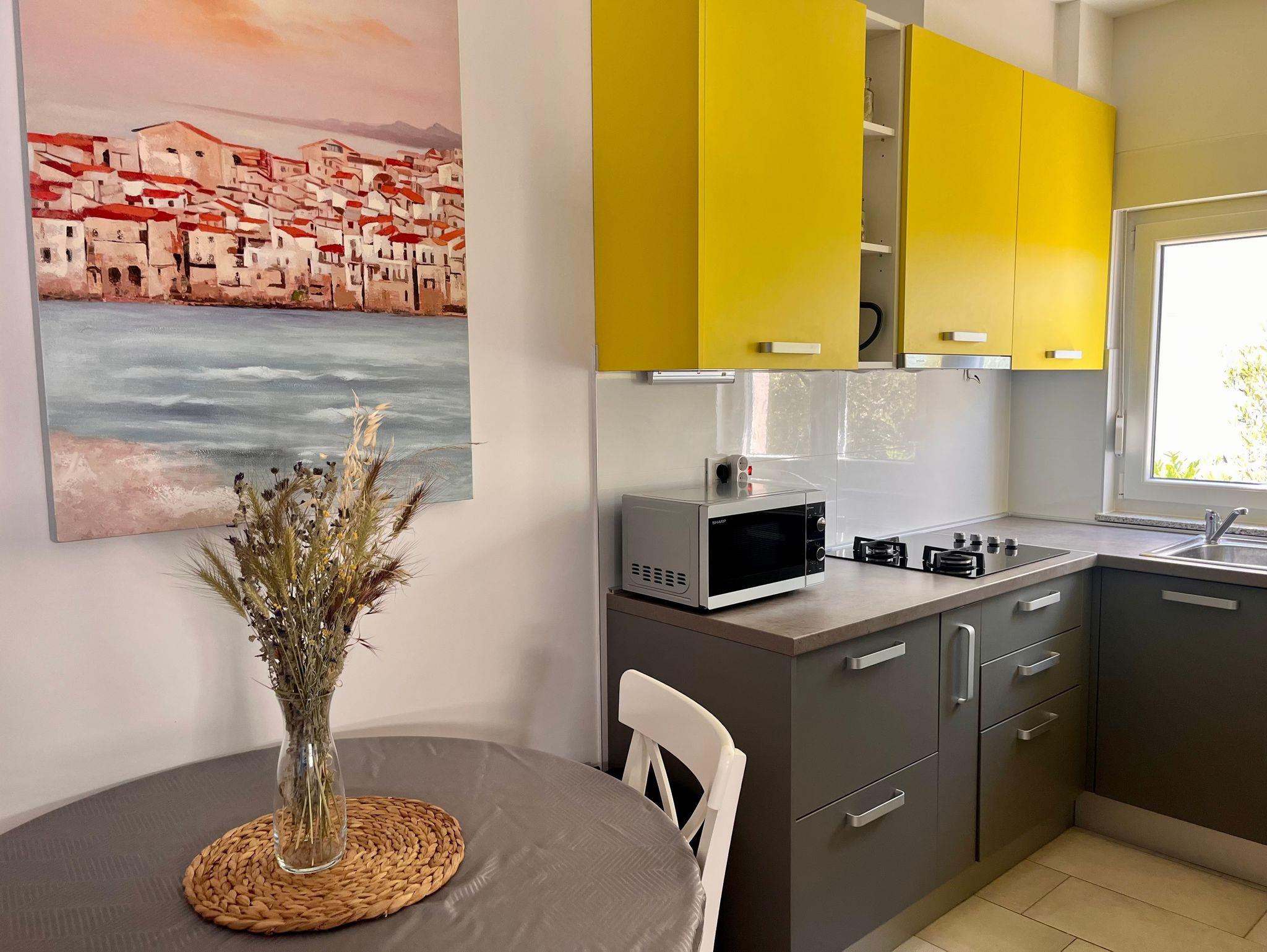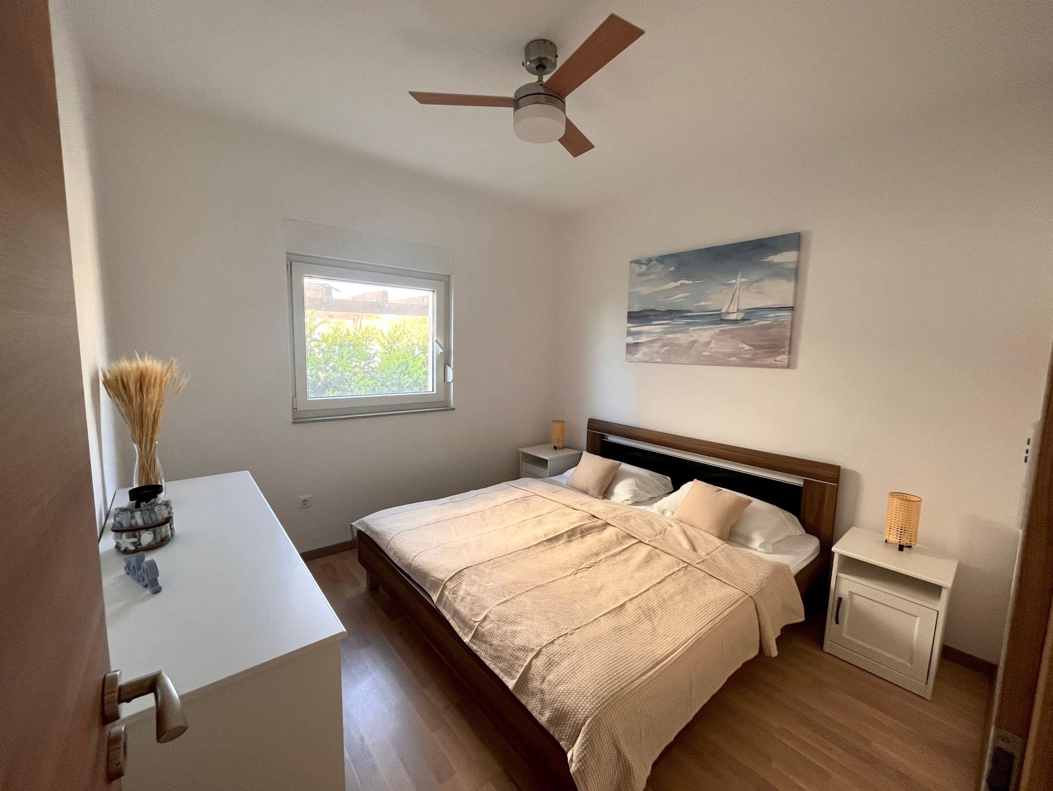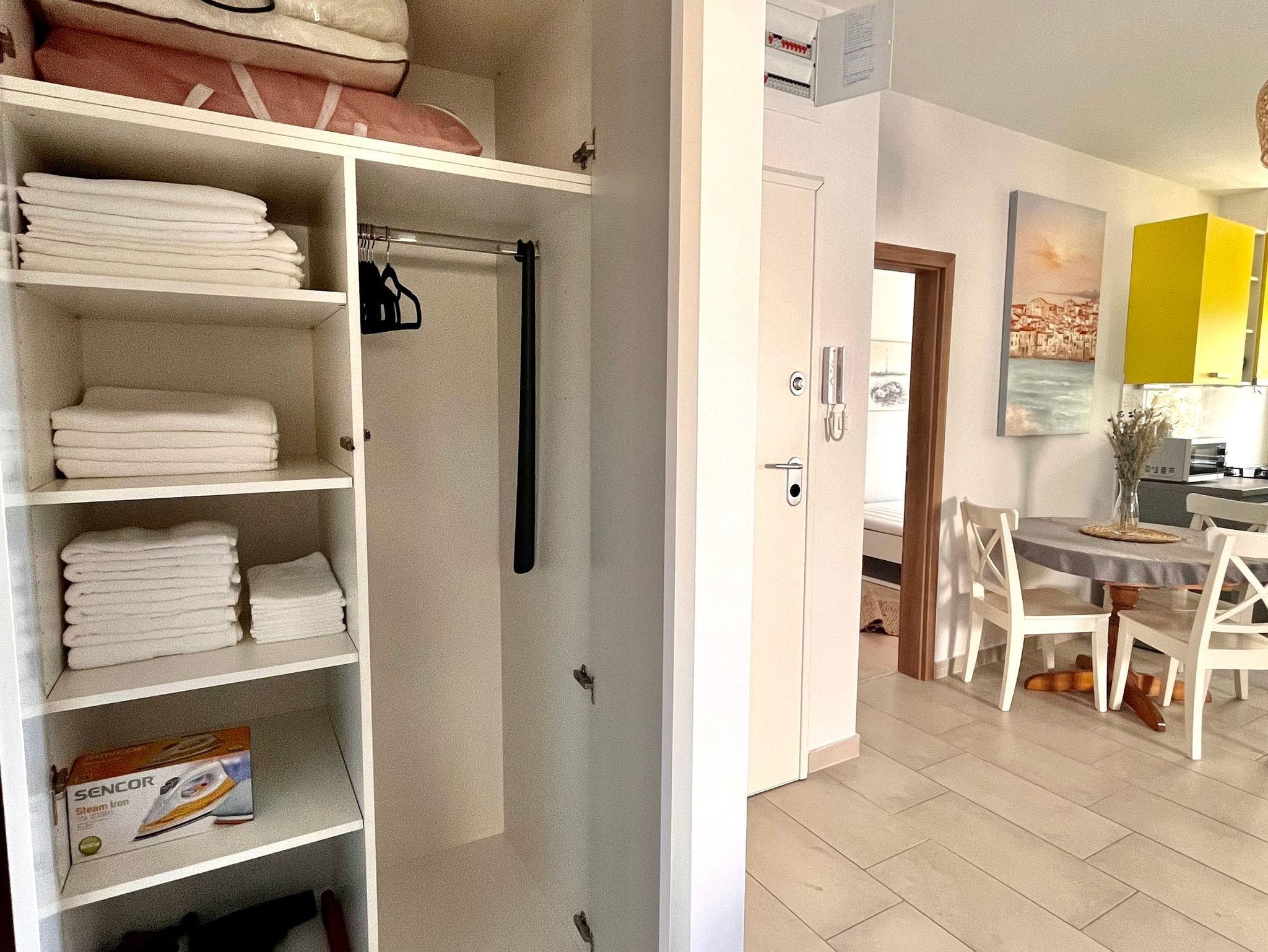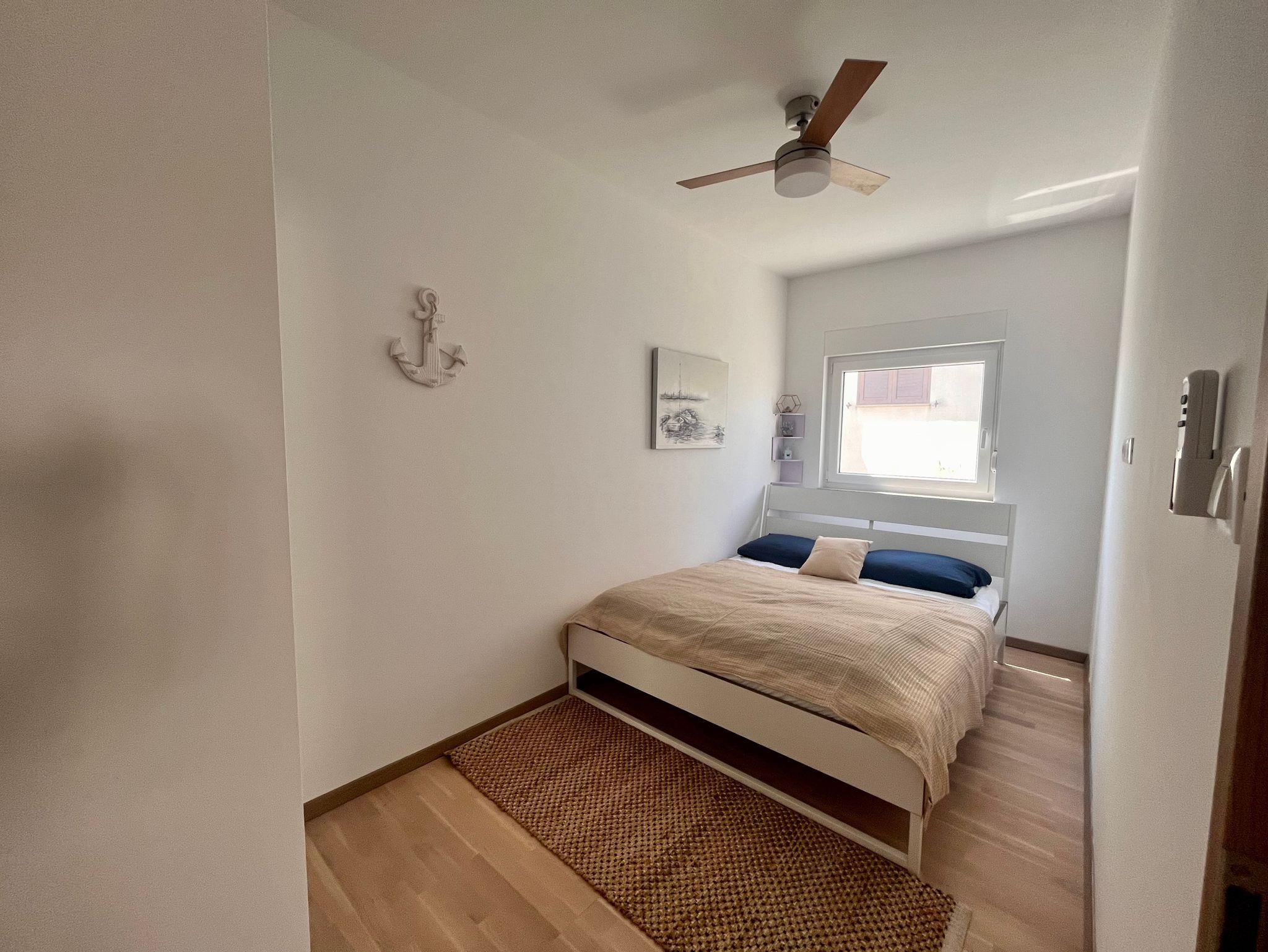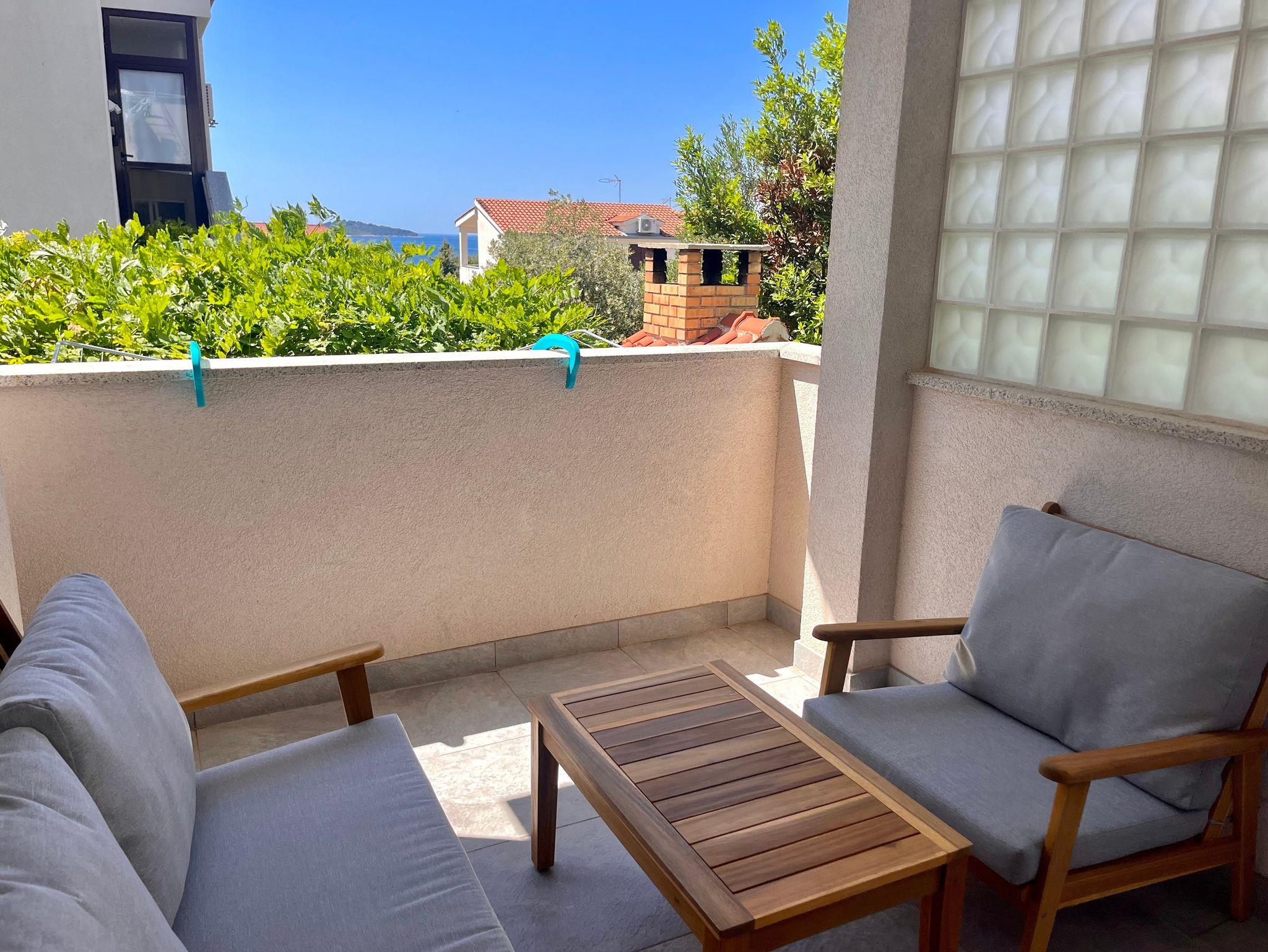 Ferienwohnung bietet Platz für 4 Gäste. Die Betten sind in Schlafzimmern, die es 2 gibt, innerhalb einer Gesamtfläche von 46m2, angeordnet. Die Gäste haben eine eigene Terrasse zur Verfügung, auf der sie in warmen Sommernächten genießen können. Das Apartment bietet Meerblick. Für vollen Genuss und Entspannung gibt es einen privaten Grill für Gäste dieser Unterkunft. IM PREIS INBEGRIFFEN: Kurtaxe, Endreinigung, Klimatisierung, Parkplatz, Internet, Kinderbett, Bügeleisen, Föhn, Sonnenschirm, Liegestühle. VERBINDLICHE ZUSÄTZLICHE KOSTEN: Aufzahlung für Kurzaufenthalte (prozentualer Zuschlag pro Nächtigungsanzahl: 30% - 1, 20% - 2, 10% - 3). Die Verfügbarkeit zusätzlicher Dienstleistungen in Ihrem reservierten Termin und die Preise derselben (falls nicht aufgeführt) müssen im Voraus überprüft werden. Zusätzliche Dienstleistungen die in der Zahlungsaufforderung nicht aufgeführt sind werden direkt beim Vermieter bezahlt, angenommen der Gast nutzt auch diese.
